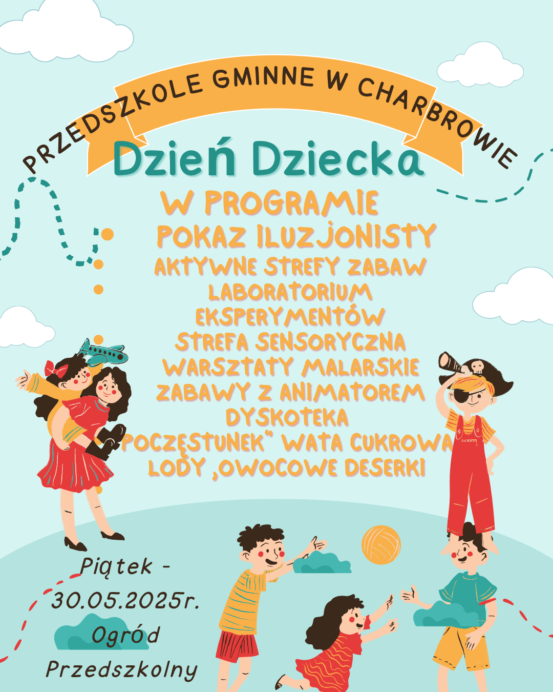 Dzień Dziecka w naszym przedszkolu odbędzie się dnia 30.05.2025r.