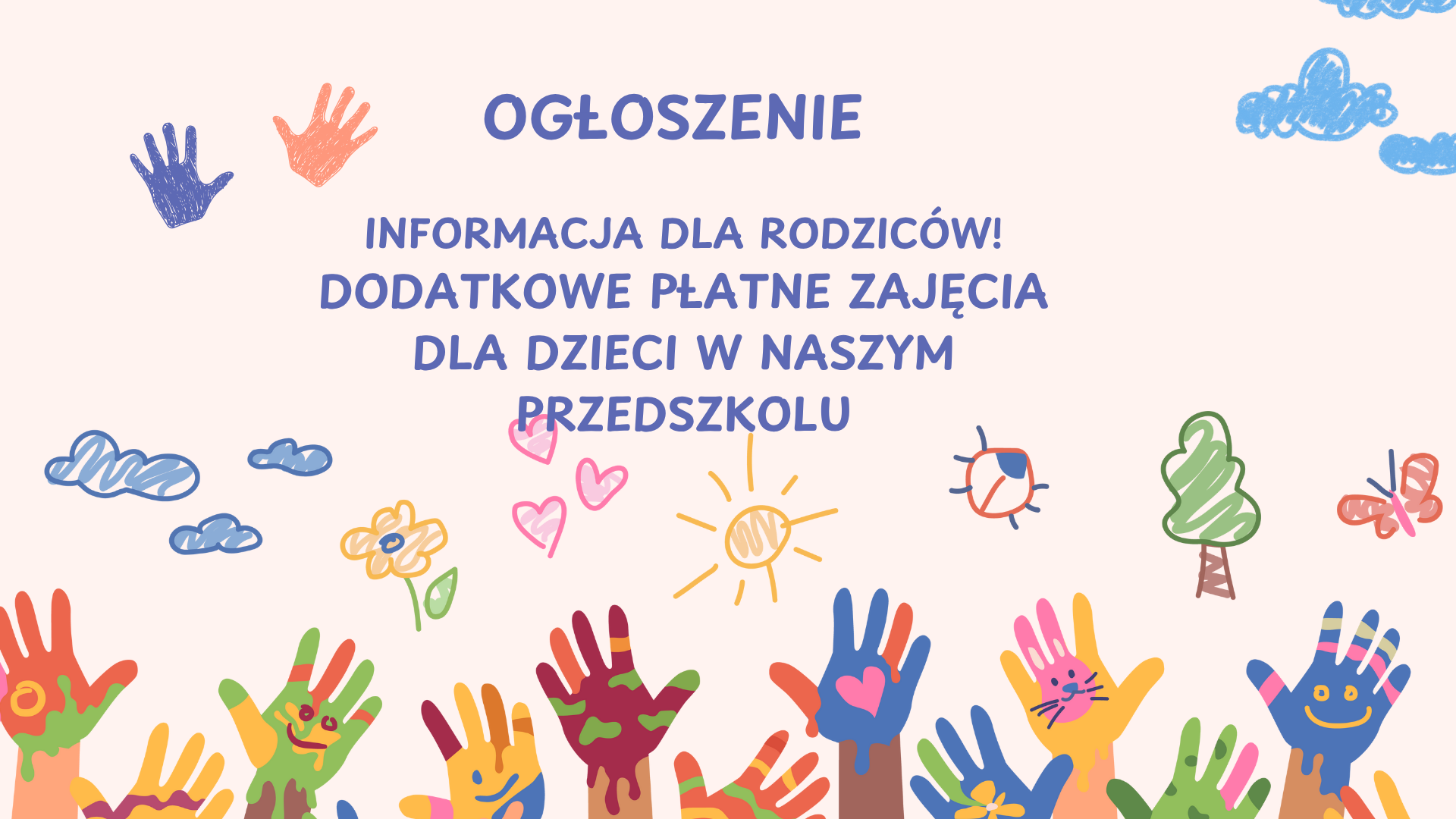 Informujemy , ze od września 2025r. planujemy w naszym przedszkolu organizacje dodatkowych płatnych zajęć dla dzieci: