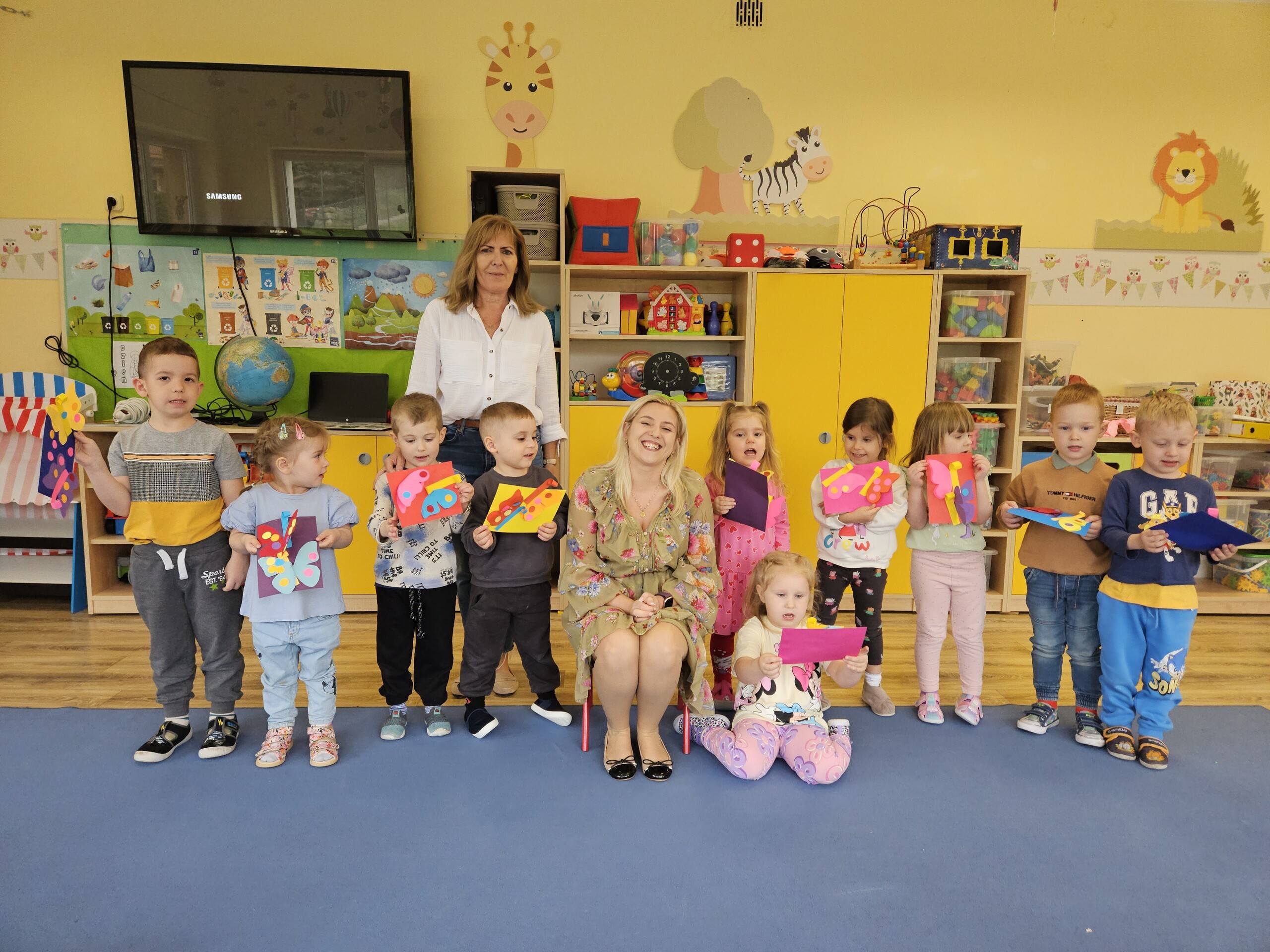 Na zakończenie spotkania odbyły się warsztaty plastyczne, podczas których każde dziecko wykonało kolorową bransoletkę z motylkiem lub pszczółką. Ta kreatywna zabawa była doskonałym podsumowaniem dnia pełnego książkowych przygód i twórczej ekspresji.