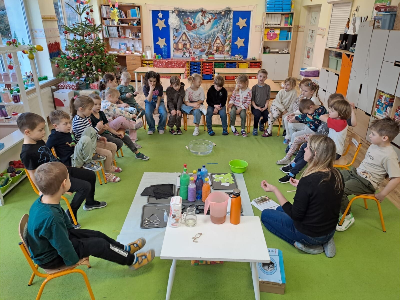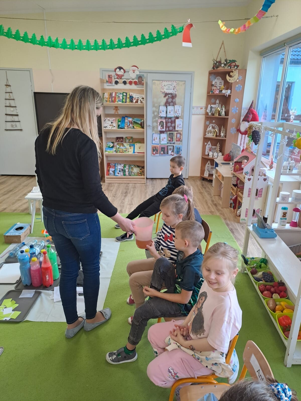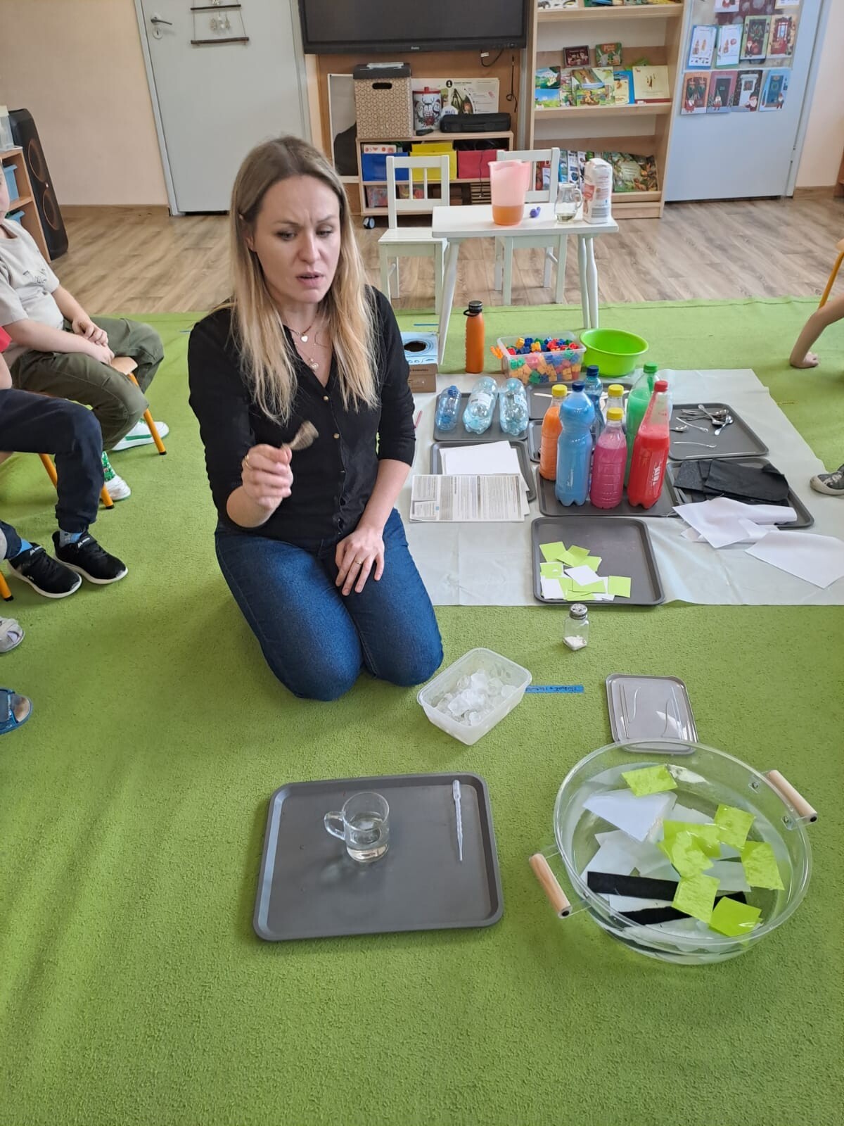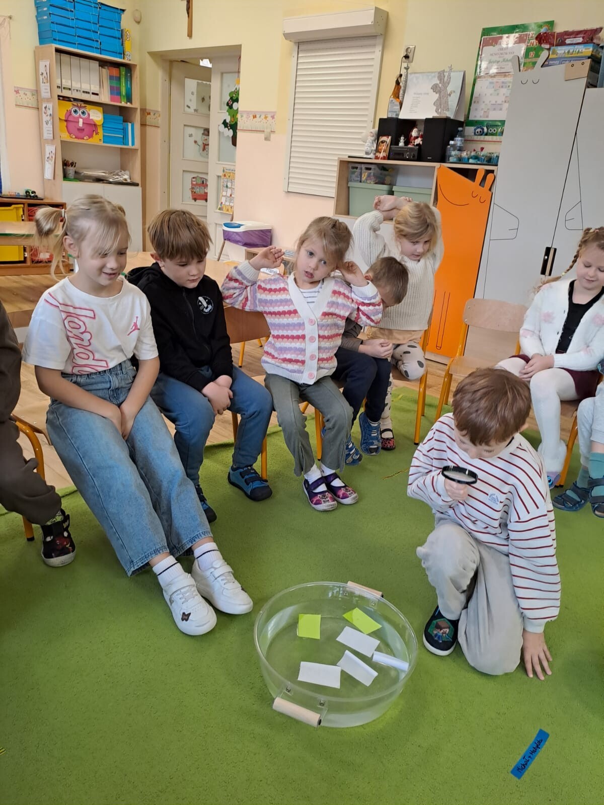 Dodatkowo, przeprowadziliśmy doświadczenie z herbatką i termosem, a także bawiliśmy się piaskiem kinetycznym i kwarcowym. Dzięki tym aktywnościom dzieci rozwijały swoją ciekawość oraz umiejętności badawcze poprzez obserwacje i proste eksperymenty.