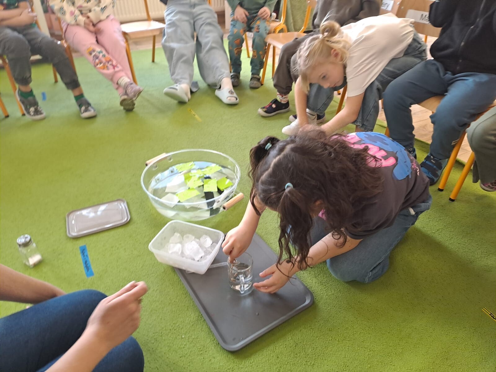 - doświadczenie "Ciepłe czy zimne?"– dzieci miały okazję zbadać, jak różne materiały oddają ciepło.