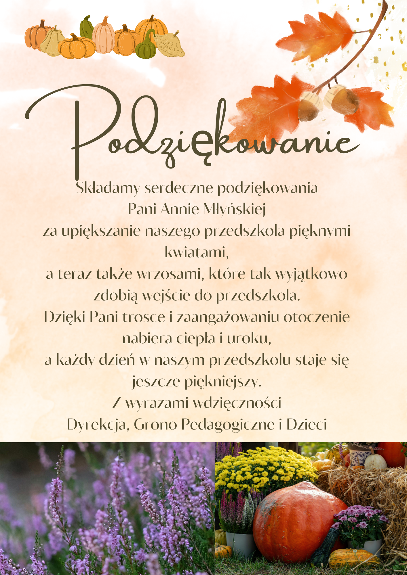za upiększanie naszego przedszkola pięknymi kwiatami,