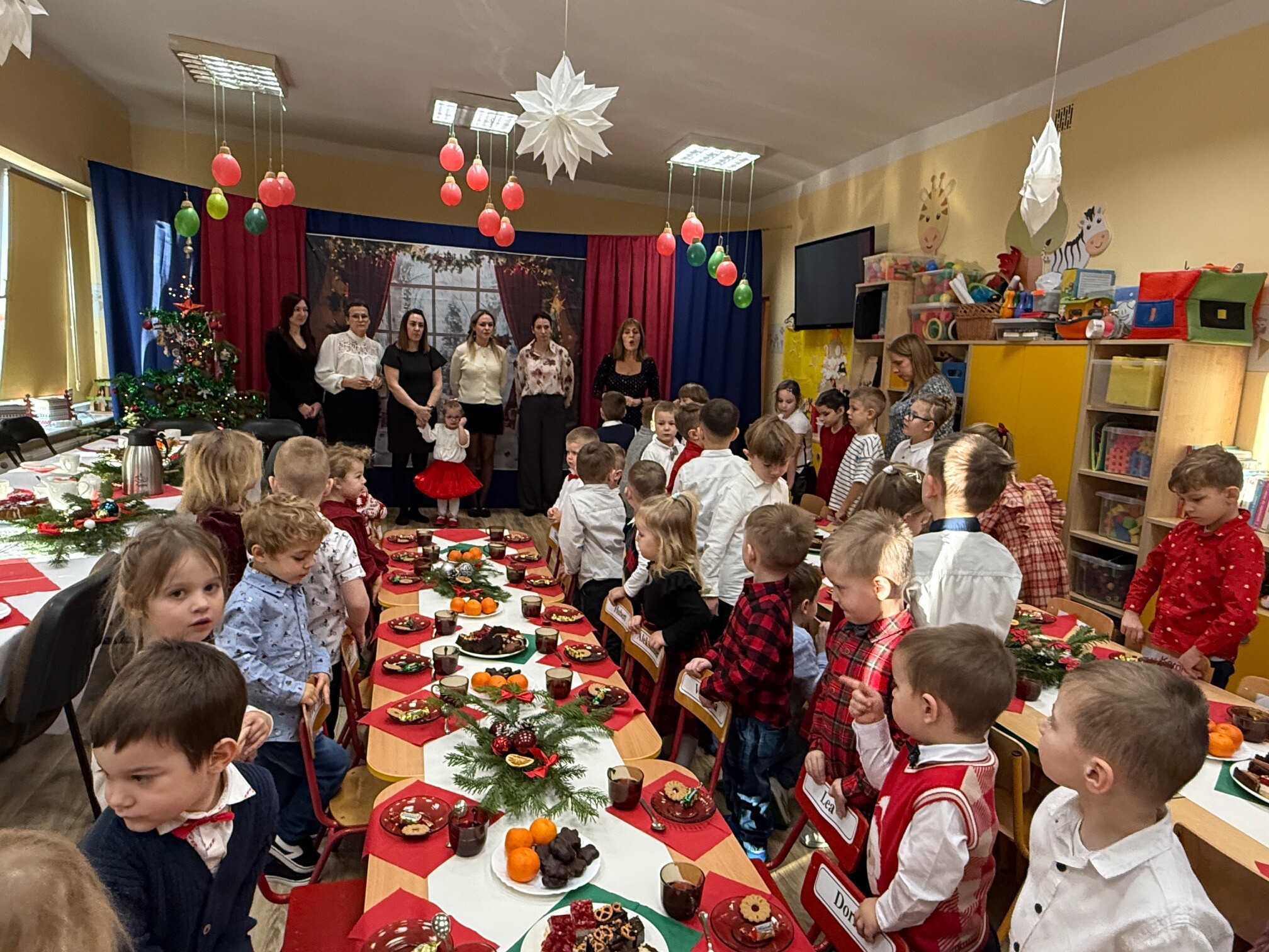 W naszym przedszkolu odbyło się spotkanie Wigilia w wyjątkowo ciepłej i radosnej atmosferze. Dzieci przyszły ubrane w odświętne stroje, co podkreśliło świąteczny charakter tego dnia. Wspólnie śpiewaliśmy kolędy, dzieląc się radością i magią nadchodzących Świąt Bożego Narodzenia.