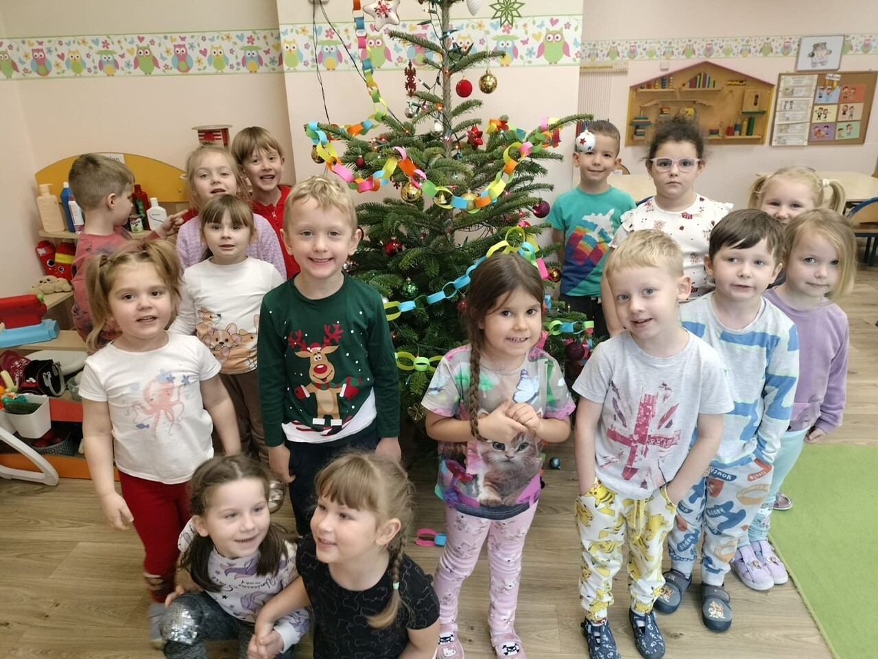 Wspólne dekorowanie było nie tylko świetną zabawą, ale także okazją do rozwijania kreatywności, współpracy i budowania świątecznej atmosfery. Teraz choinki pięknie zdobią nasze przedszkolne sale, a dzieci z dumą podziwiają efekty swojej pracy.