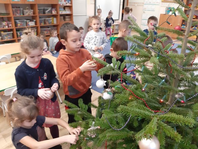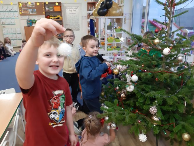 - 05.12.2022 Wspólne ubieranie choinki w grupie Średniaków i Starszaków