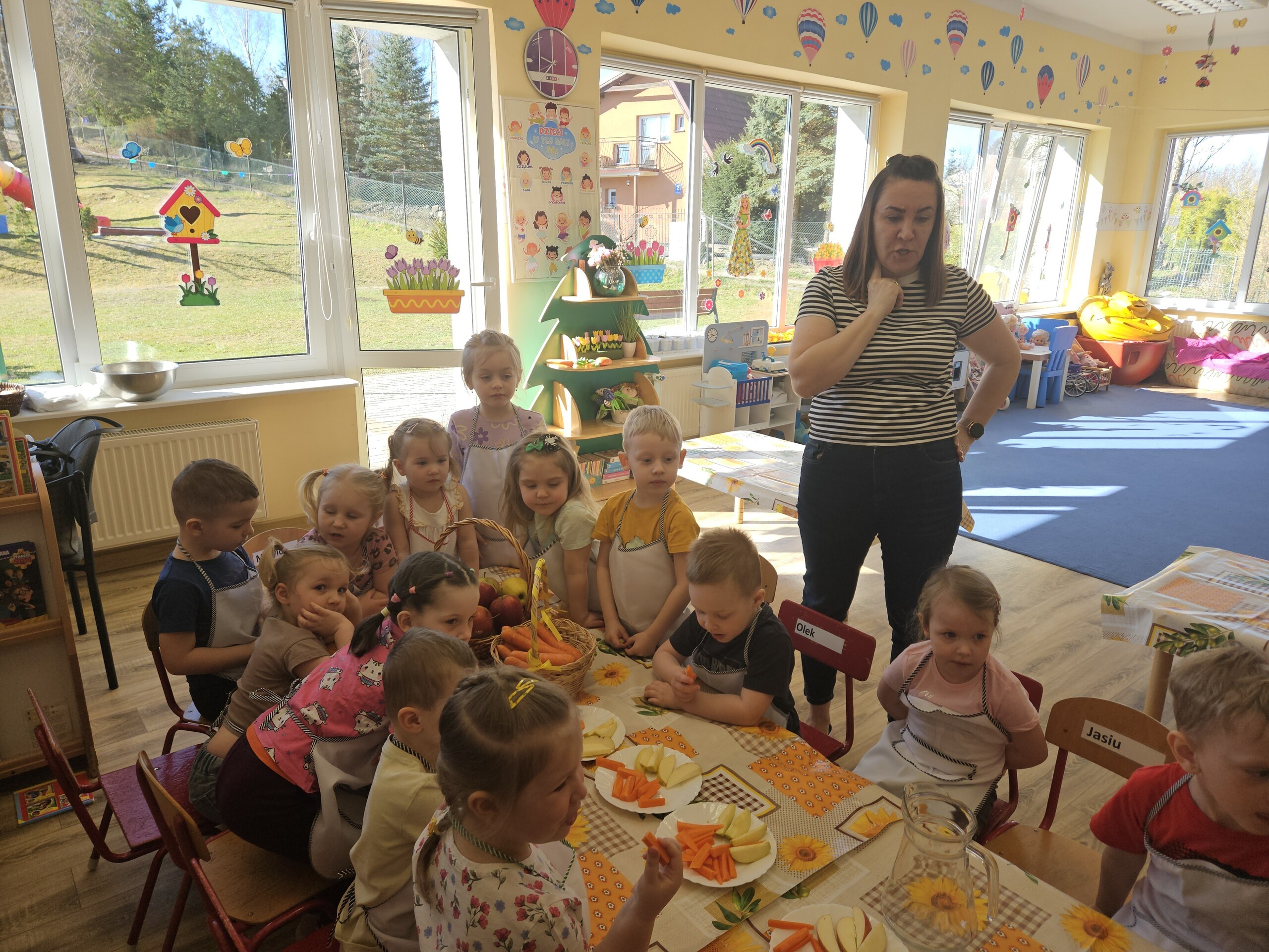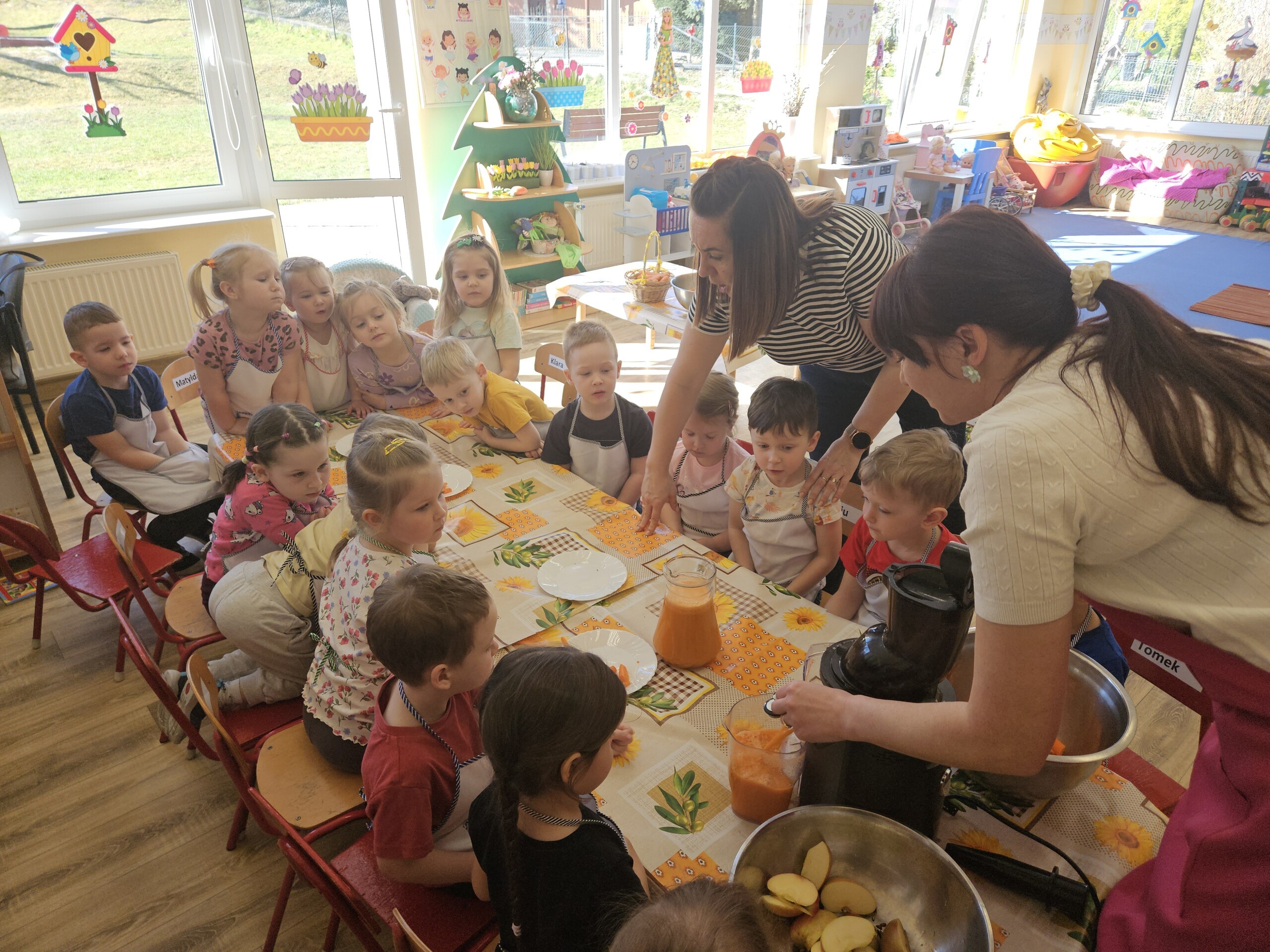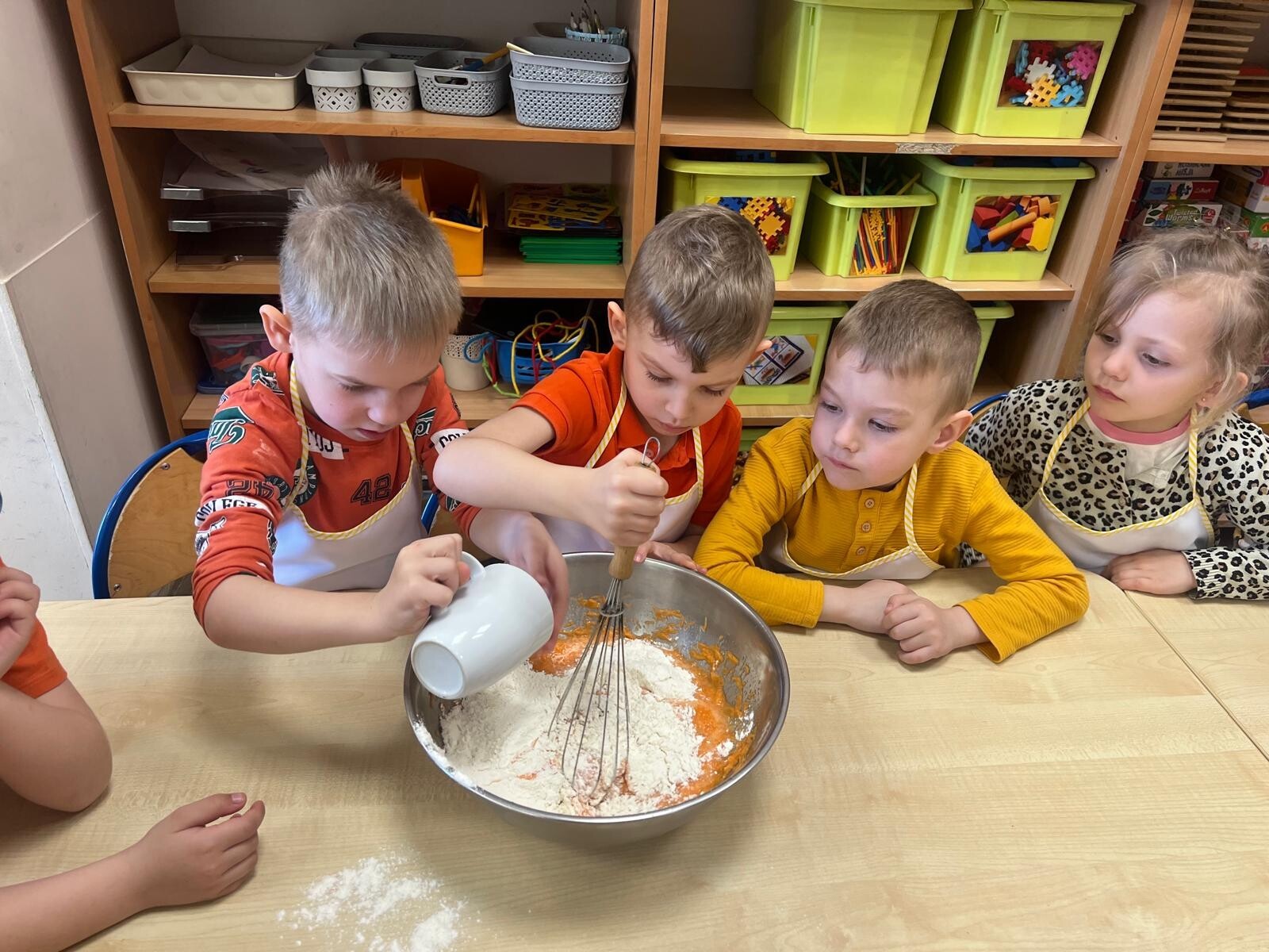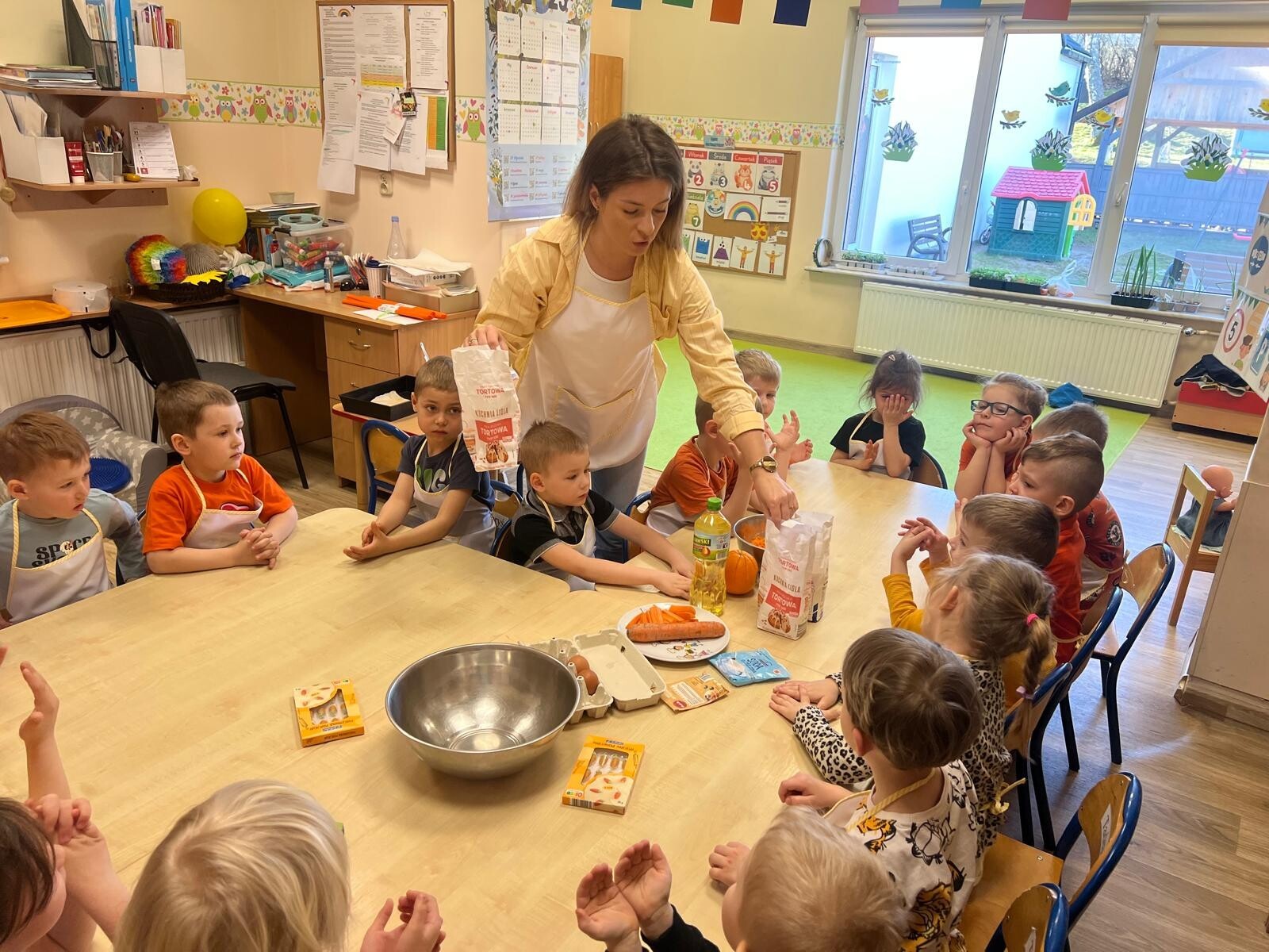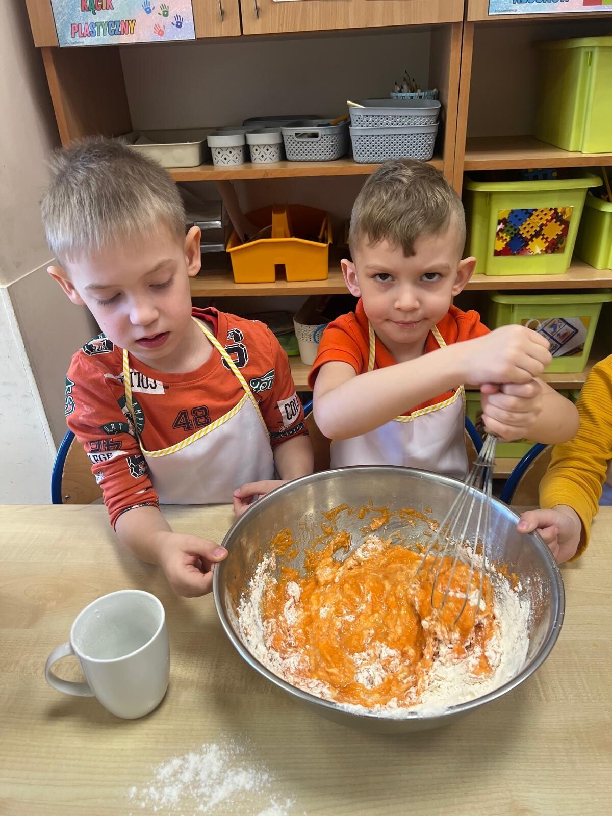 W ramach aktywności kulinarnych dzieci spróbowały pysznego soku z marchwi, piekły babeczki oraz ciasto marchewkowe. Wzięły również udział w konkursie „Jedz marchewkę jak króliczek", co dostarczyło im wiele radości i śmiechu. Najstarsza grupa miała dodatkowo okazję uczestniczyć w matematycznej zabawie „Garnek pełen warzyw", która rozwijała ich umiejętności liczenia i logicznego myślenia.