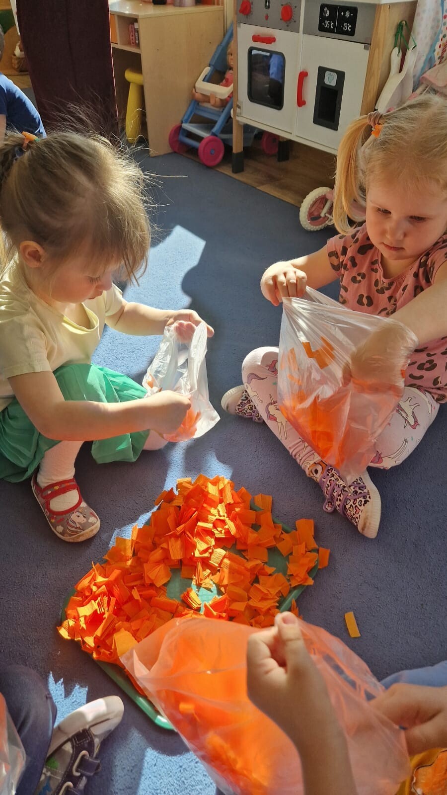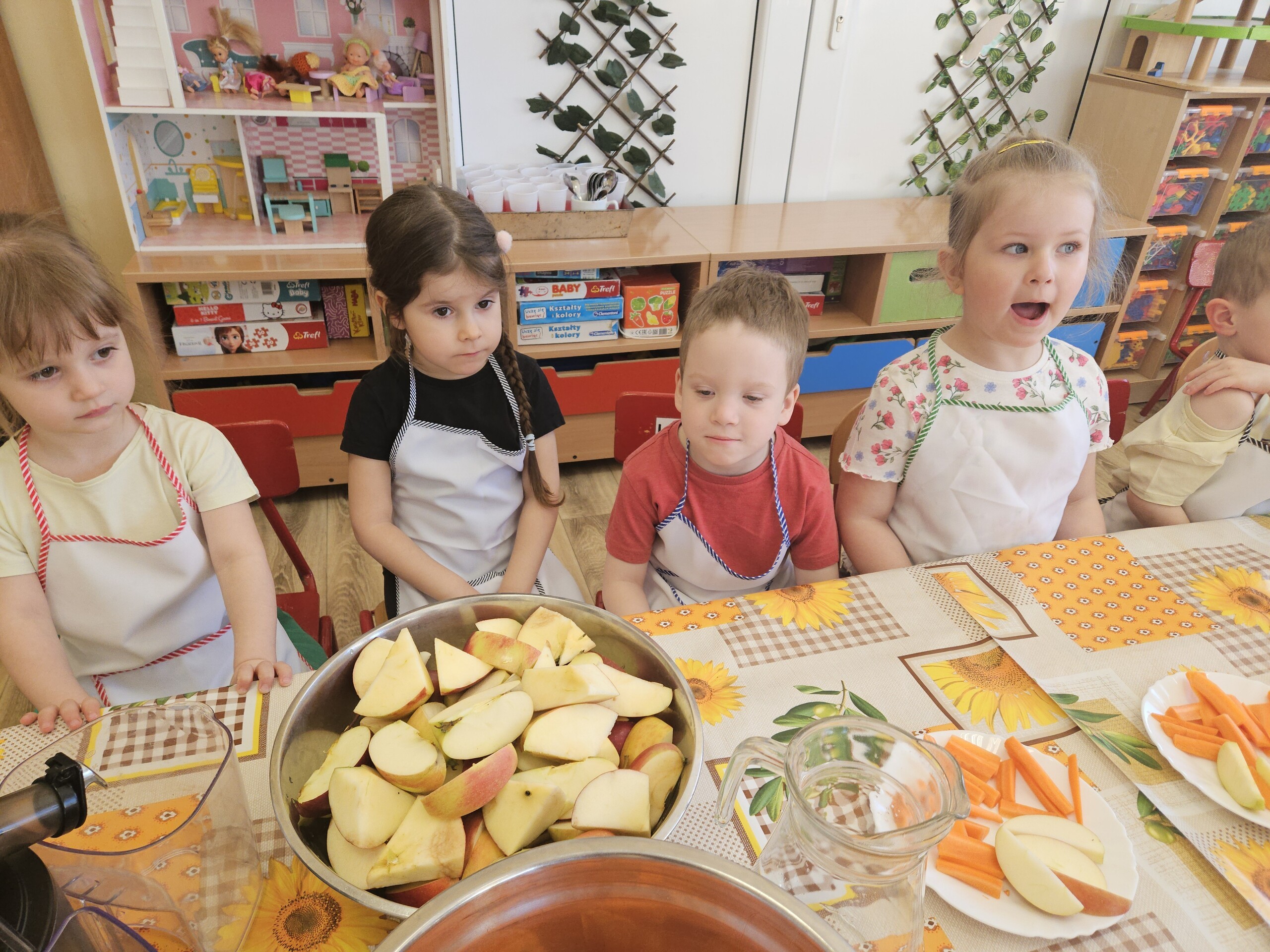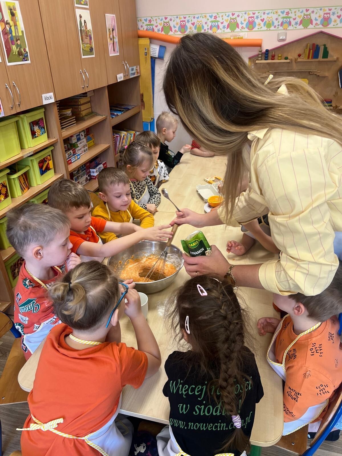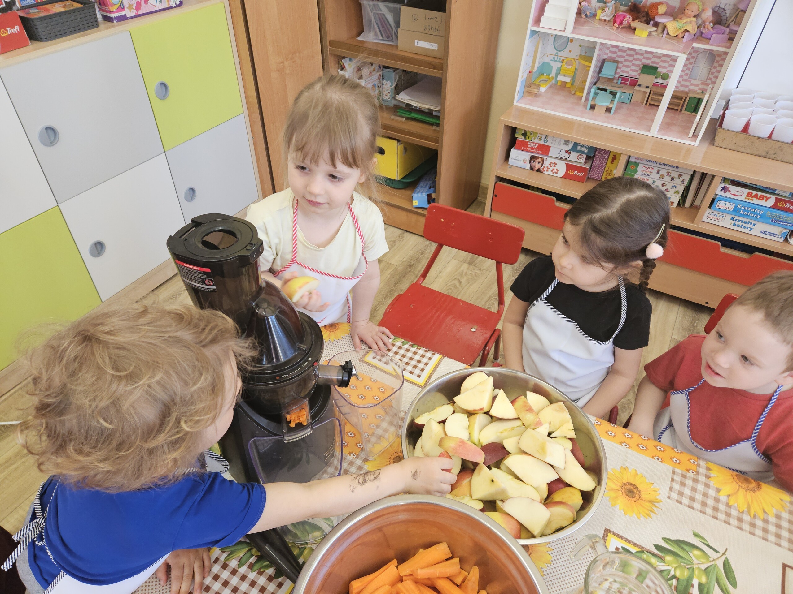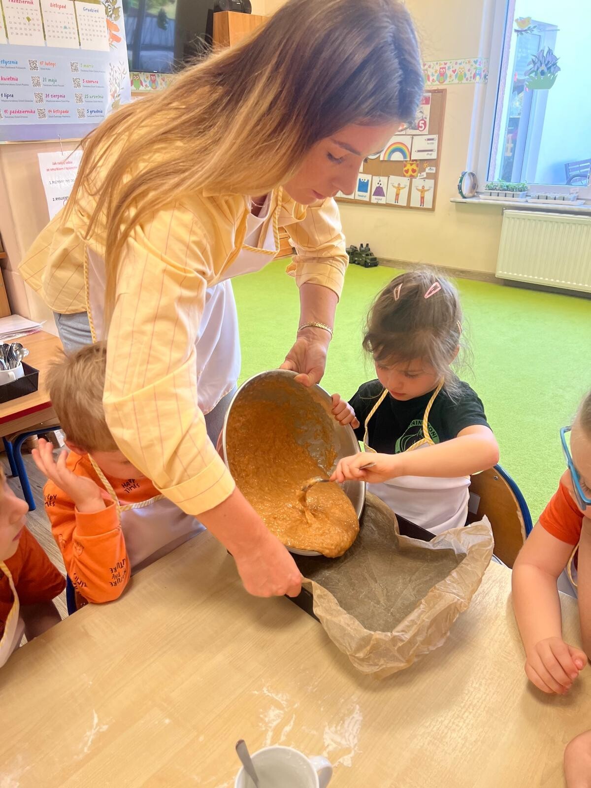 W ramach aktywności kulinarnych dzieci spróbowały pysznego soku z marchwi, piekły babeczki oraz ciasto marchewkowe. Wzięły również udział w konkursie „Jedz marchewkę jak króliczek", co dostarczyło im wiele radości i śmiechu. Najstarsza grupa miała dodatkowo okazję uczestniczyć w matematycznej zabawie „Garnek pełen warzyw", która rozwijała ich umiejętności liczenia i logicznego myślenia.