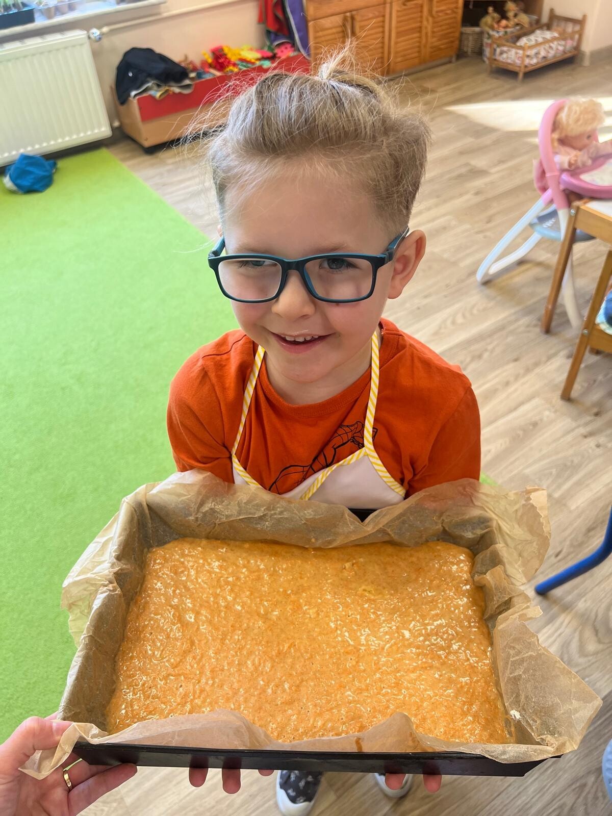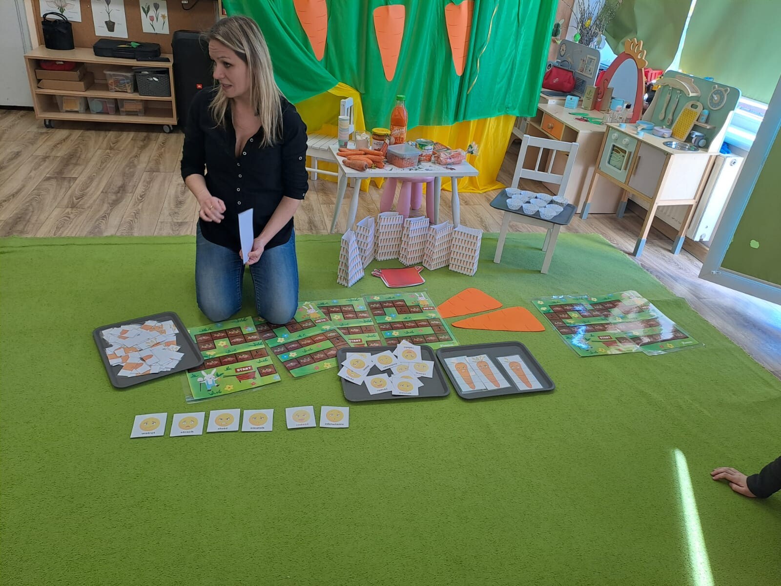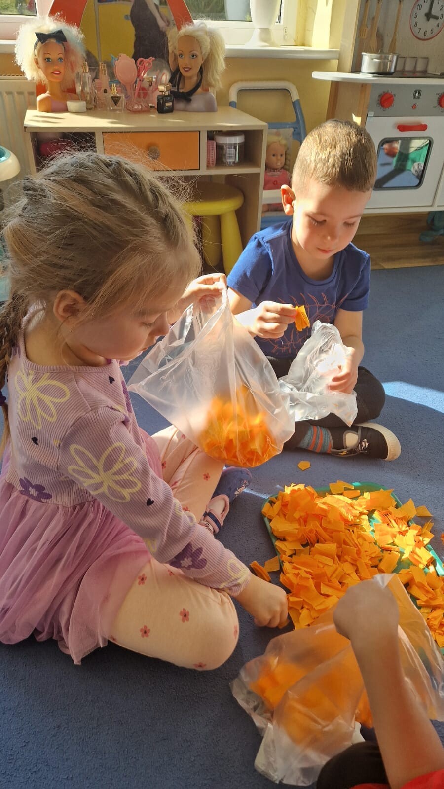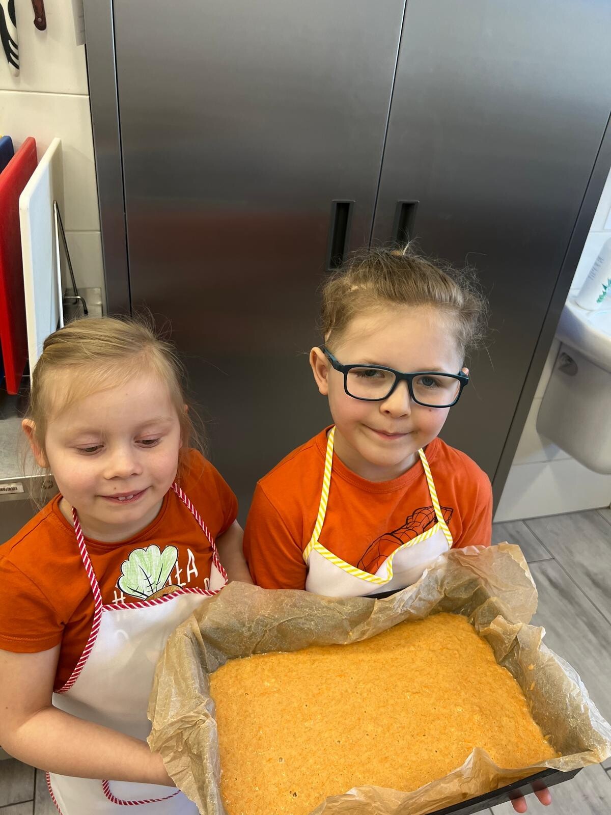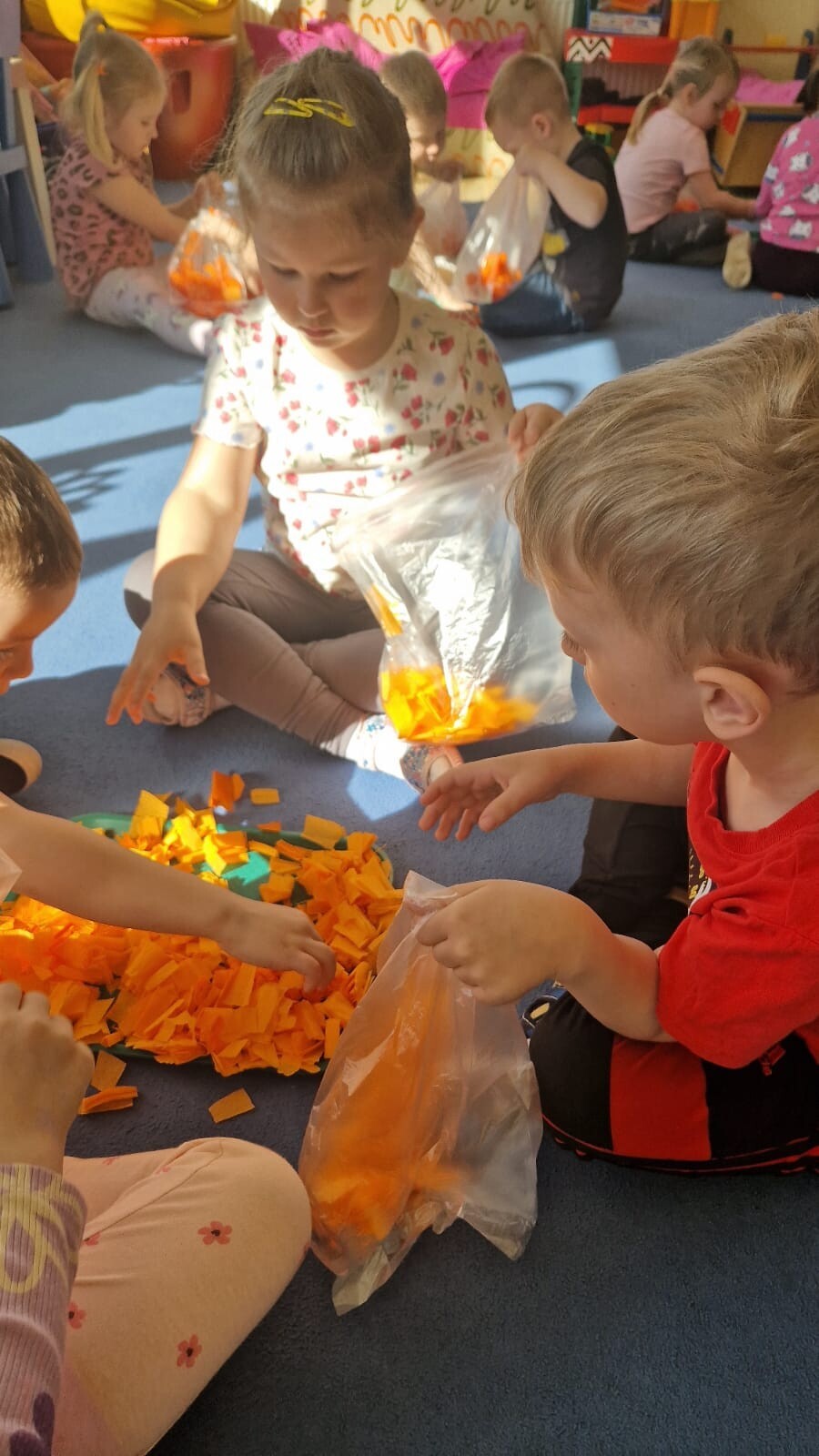 W ramach aktywności kulinarnych dzieci spróbowały pysznego soku z marchwi, piekły babeczki oraz ciasto marchewkowe. Wzięły również udział w konkursie „Jedz marchewkę jak króliczek", co dostarczyło im wiele radości i śmiechu. Najstarsza grupa miała dodatkowo okazję uczestniczyć w matematycznej zabawie „Garnek pełen warzyw", która rozwijała ich umiejętności liczenia i logicznego myślenia.