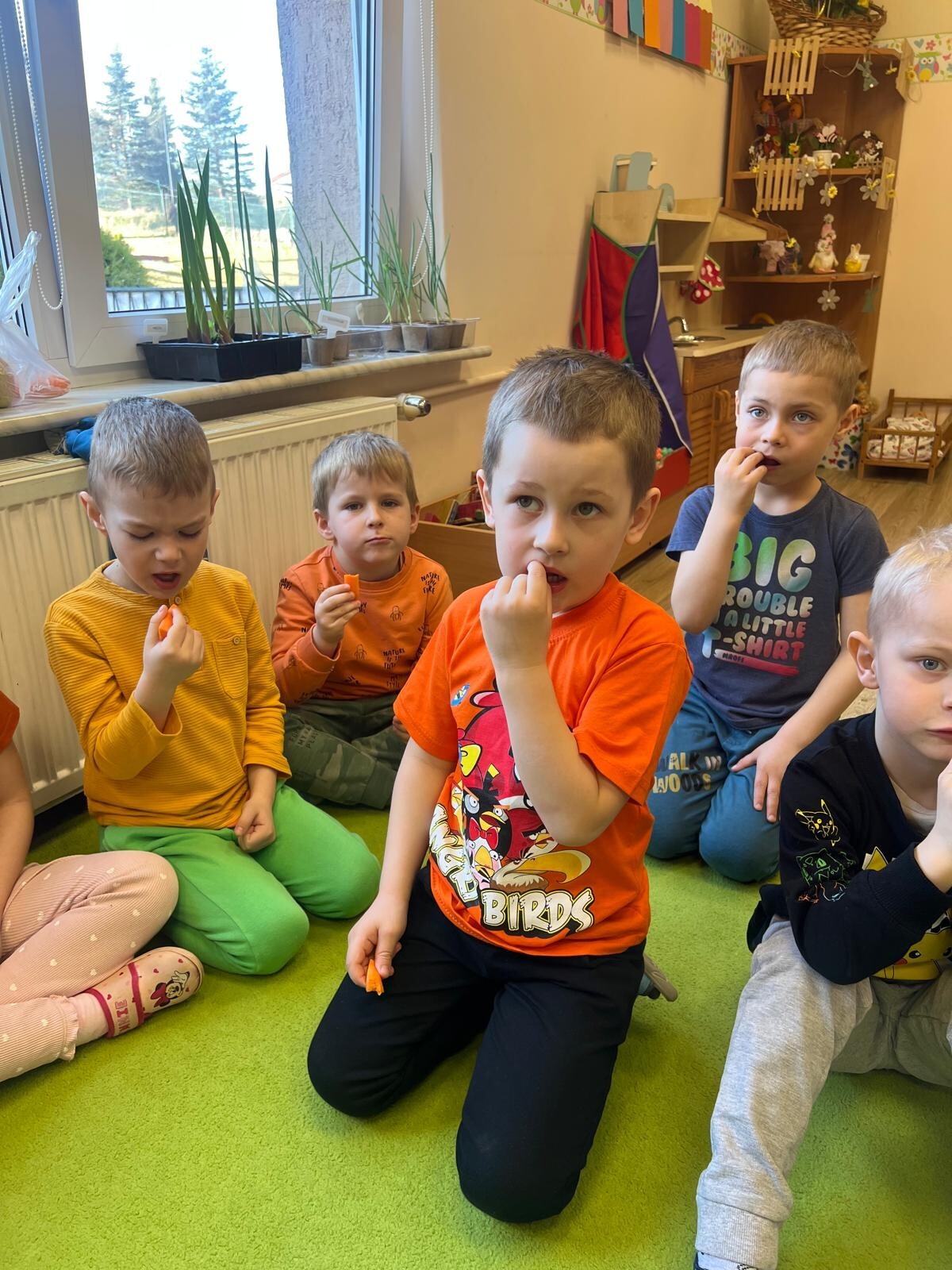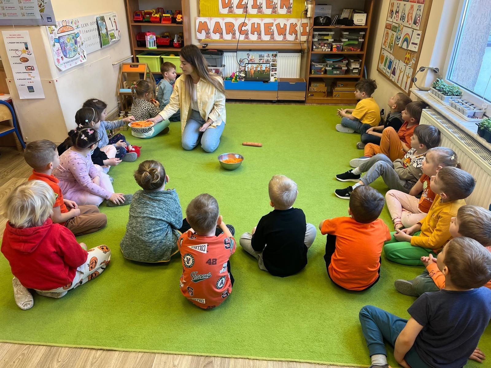 Dziś w naszym przedszkolu obchodziliśmy Dzień Marchewki! Dzieci w swoich grupach miły okazję wziąć udział w różnorodnych zajęciach edukacyjnych. Podczas dnia poznawały fascynujące ciekawostki naukowe na temat marchwi, a także oglądały film, który pokazywał, jak długo marchewka wyrasta z ziemi oraz jakie niesie korzyści dla zdrowia.
