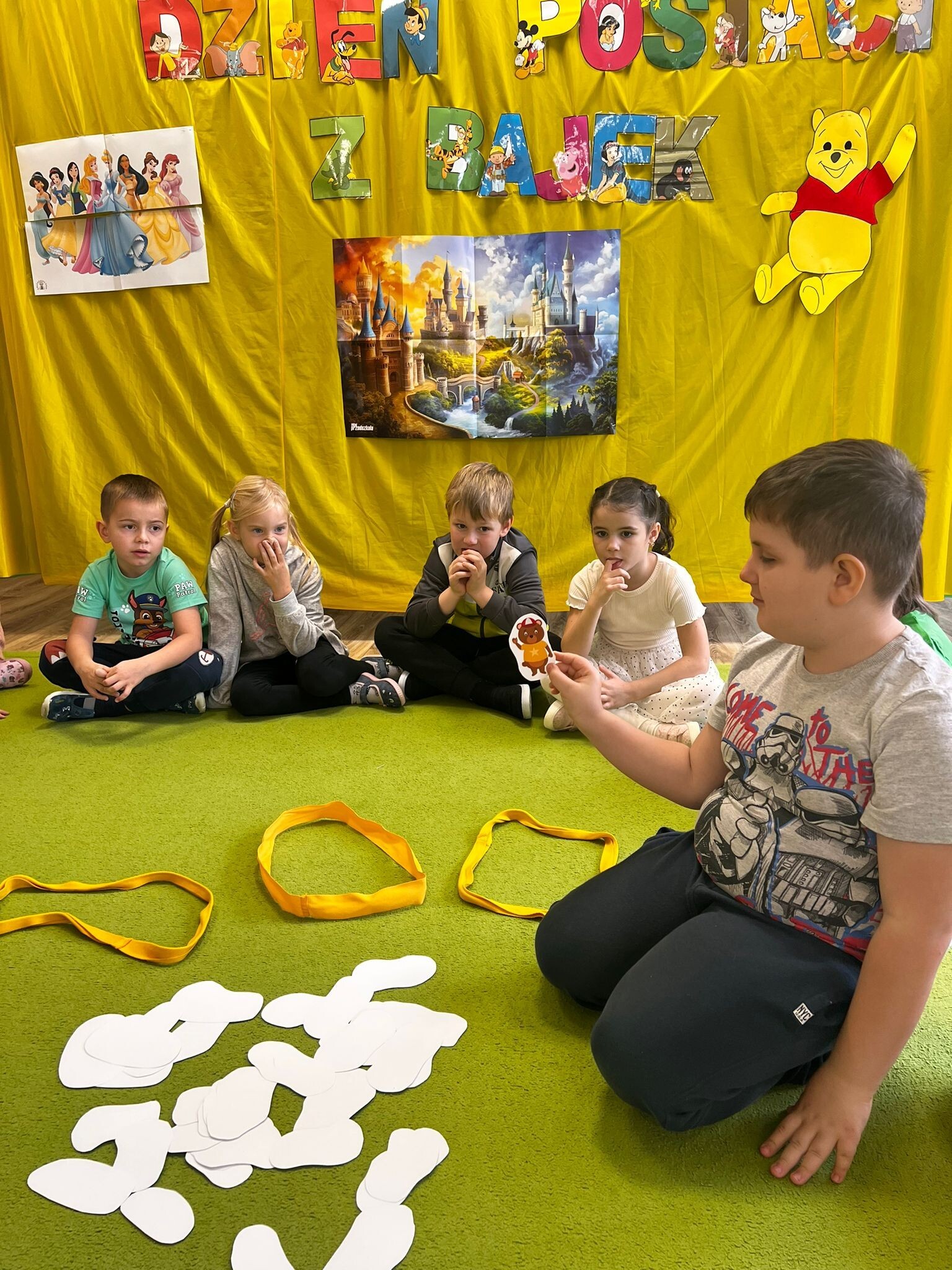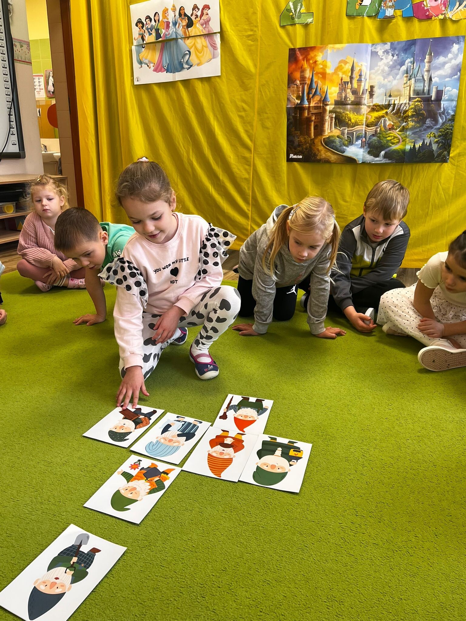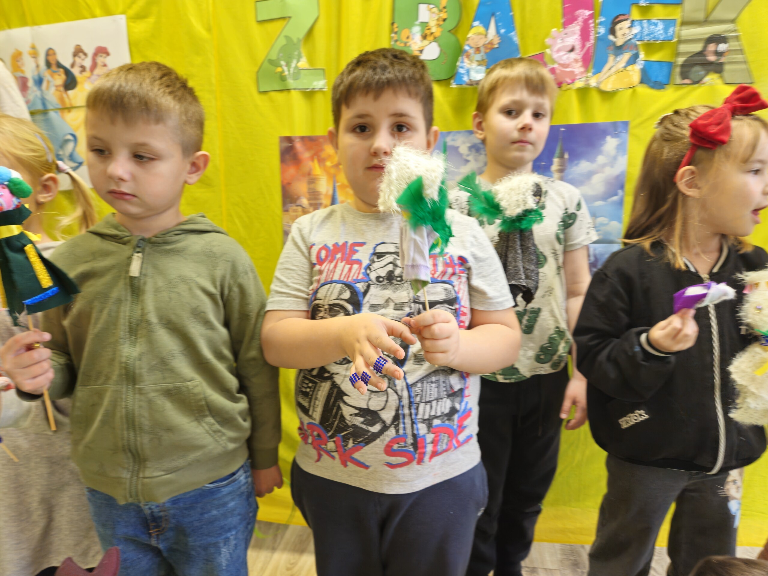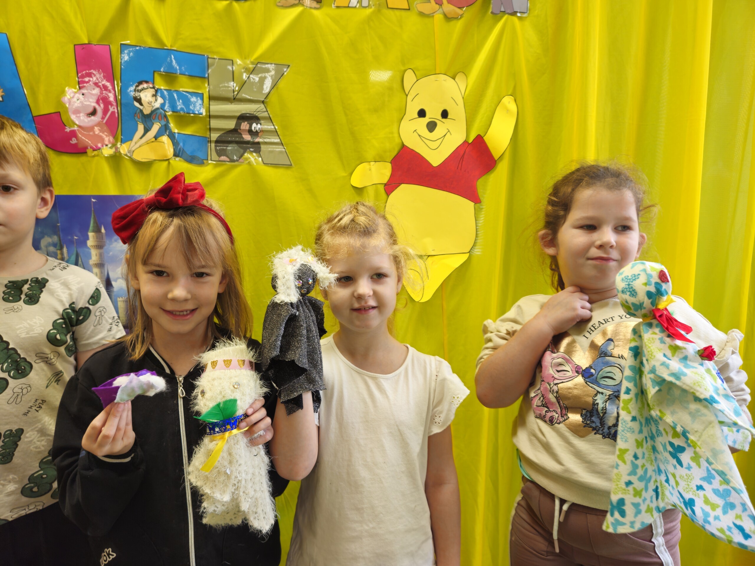 Dzieci z grupy III rozwiązywały zagadki dotyczące najpopularniejszych bajkowych bohaterów, dopasowywały bajkowe obrazki z ich cieniami. Dopasowywały postacie do odpowiednich bajek. Zorganizowały swoje własne przedstawienie teatralne, a zwieńczeniem bajkowego dnia było przygotowanie kukiełek.