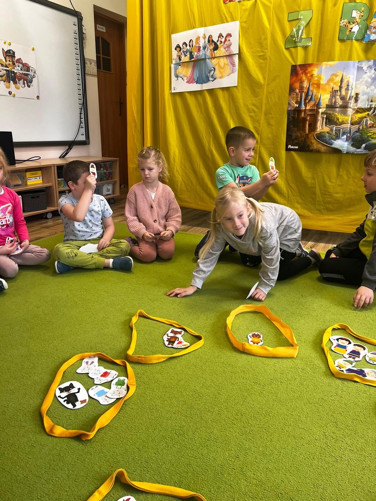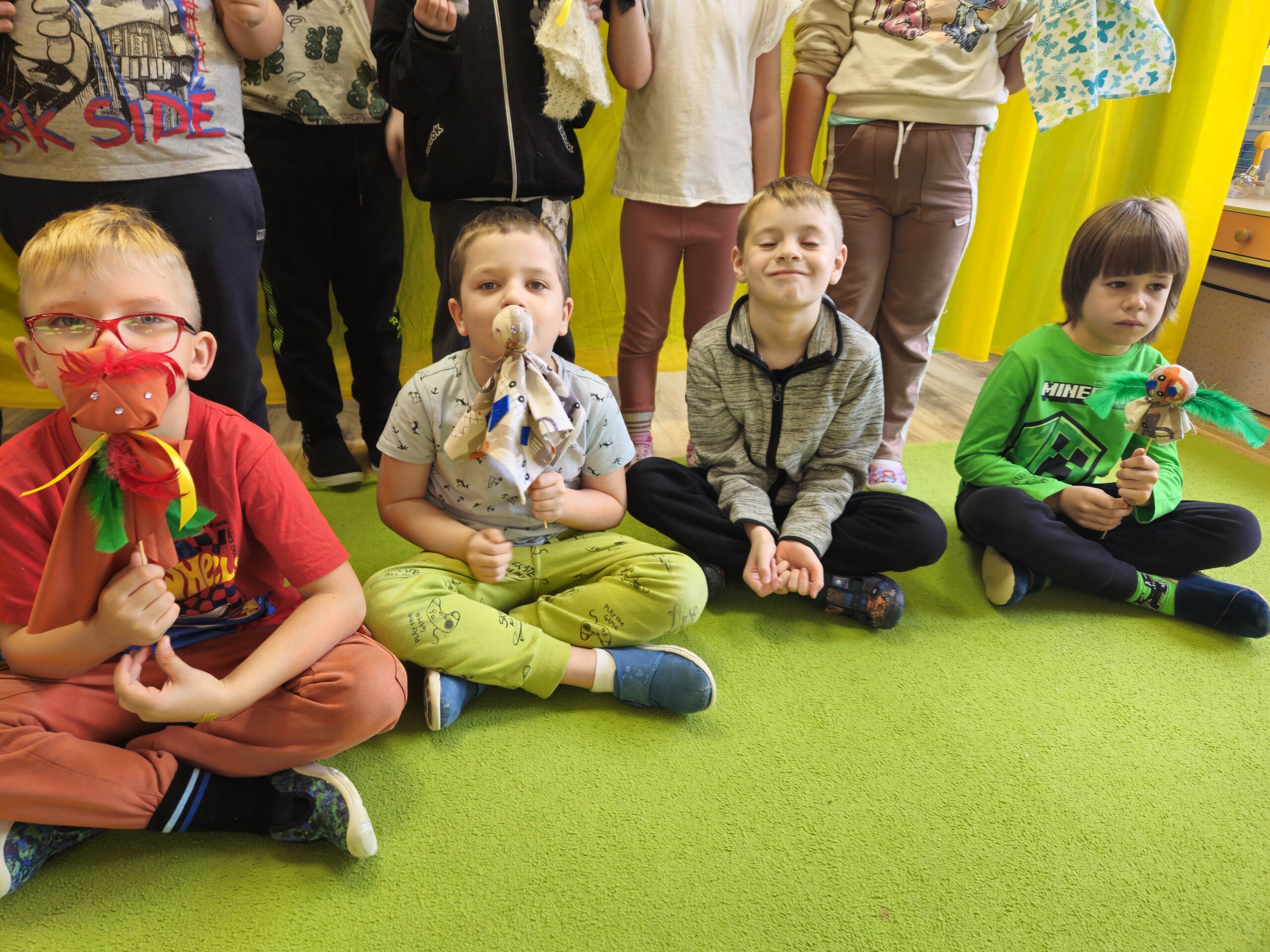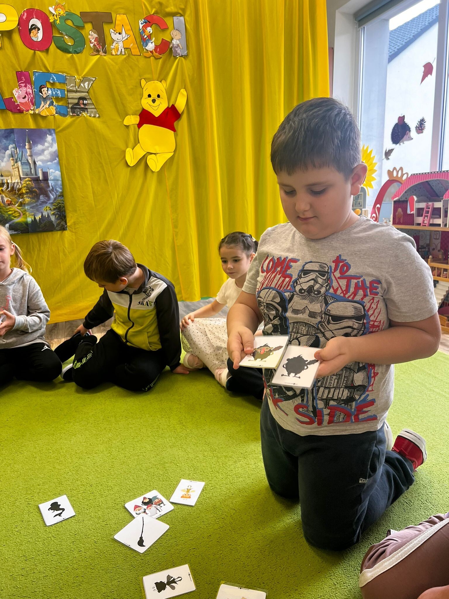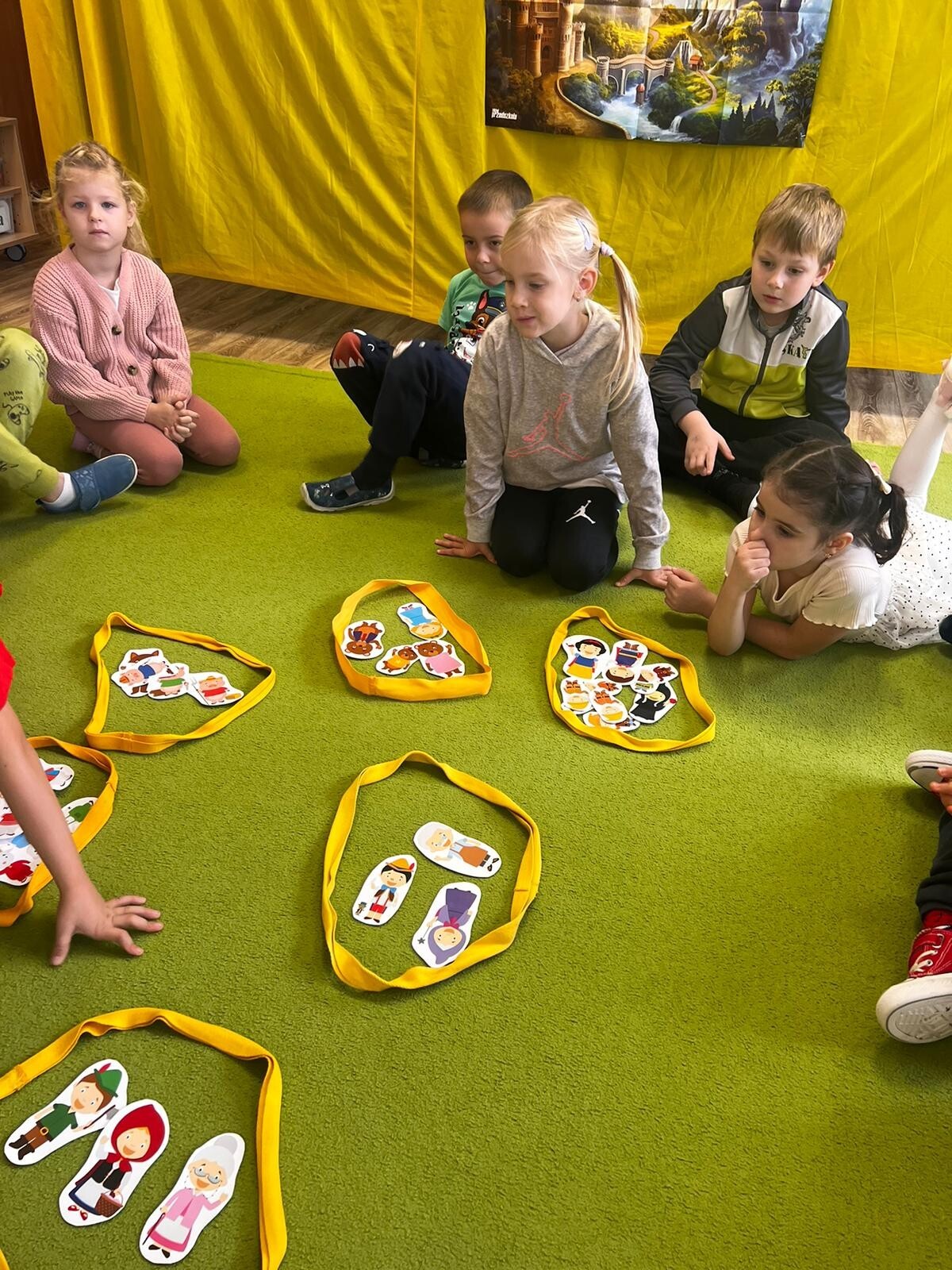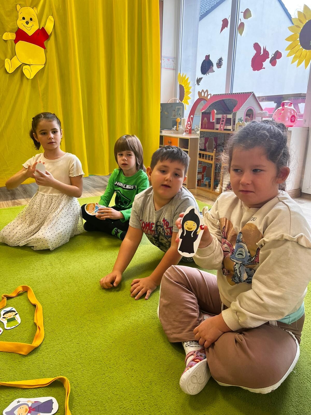 Dzieci z grupy III rozwiązywały zagadki dotyczące najpopularniejszych bajkowych bohaterów, dopasowywały bajkowe obrazki z ich cieniami. Dopasowywały postacie do odpowiednich bajek. Zorganizowały swoje własne przedstawienie teatralne, a zwieńczeniem bajkowego dnia było przygotowanie kukiełek.