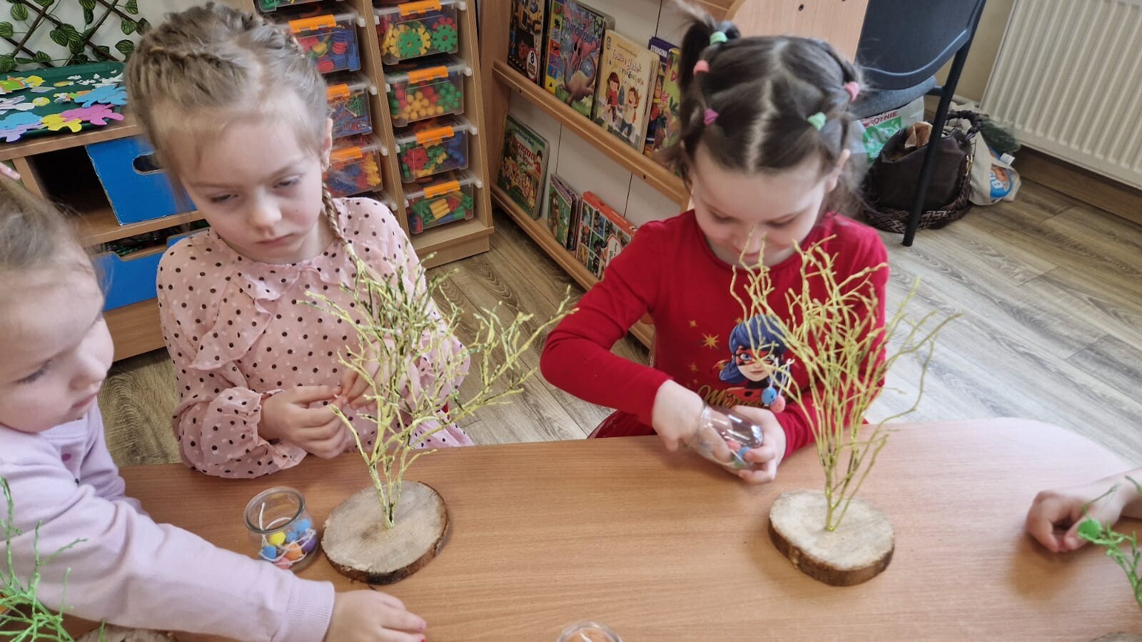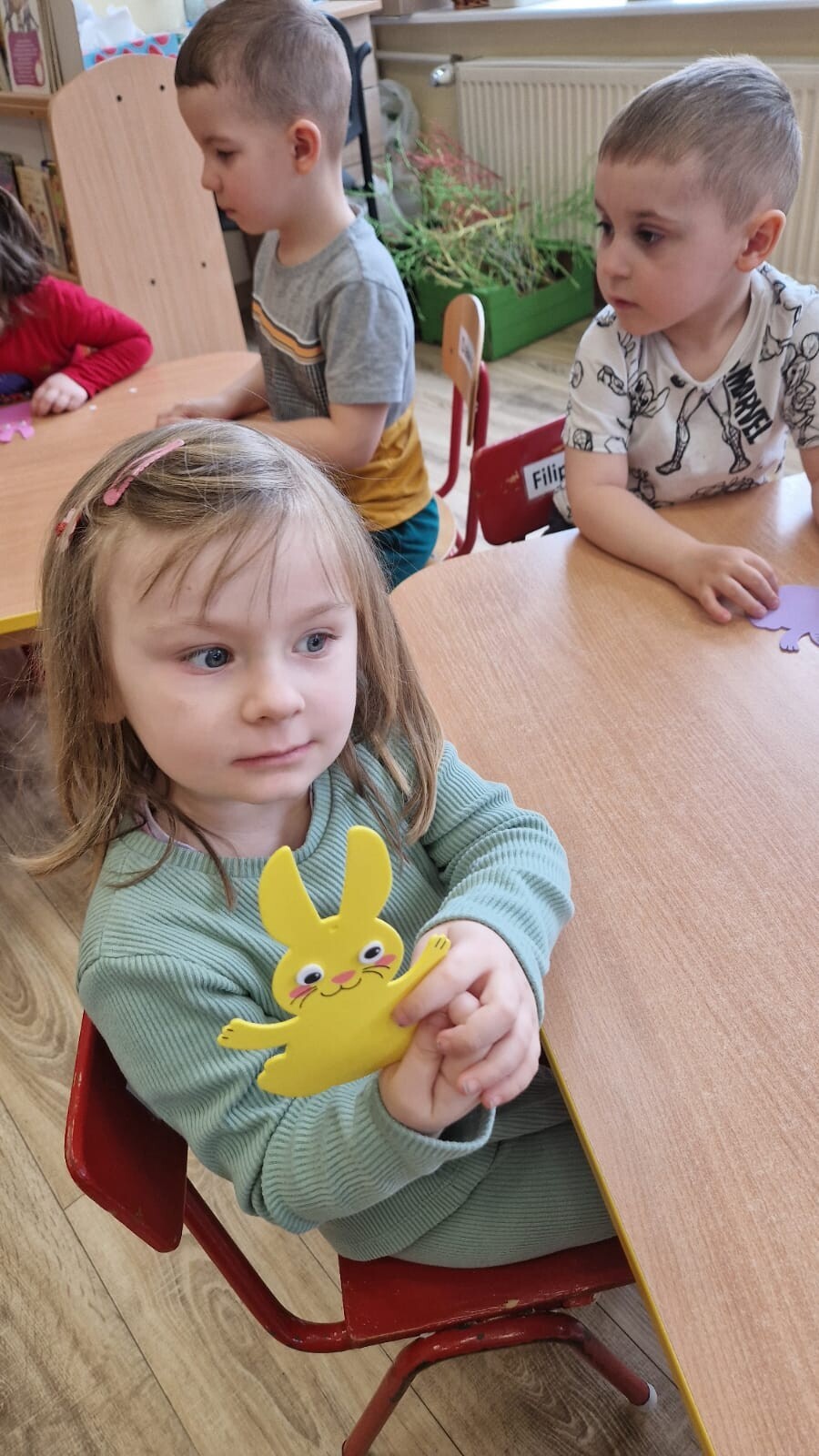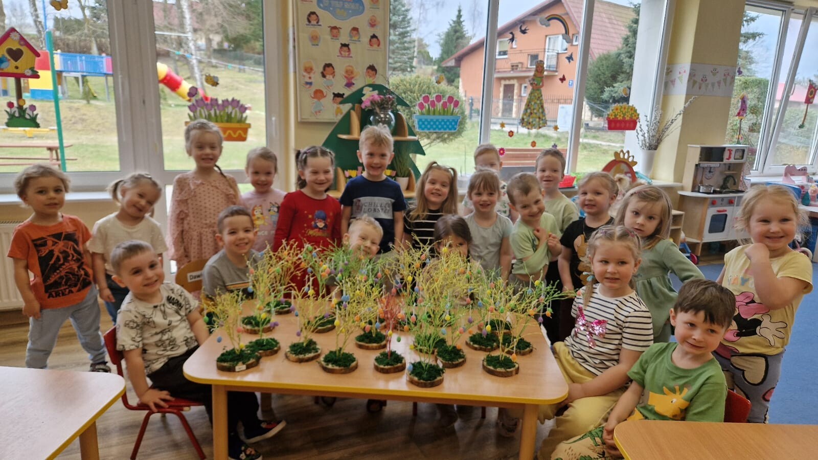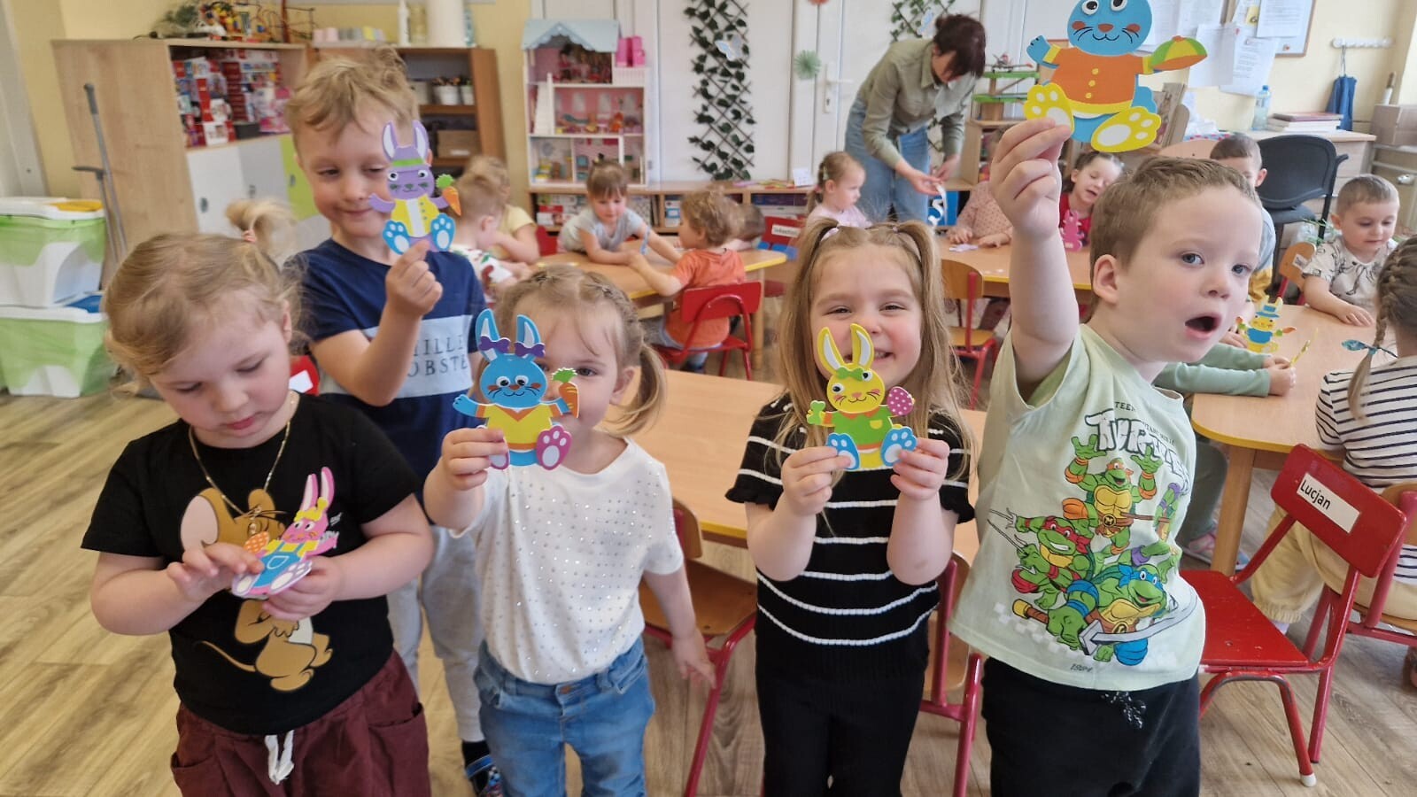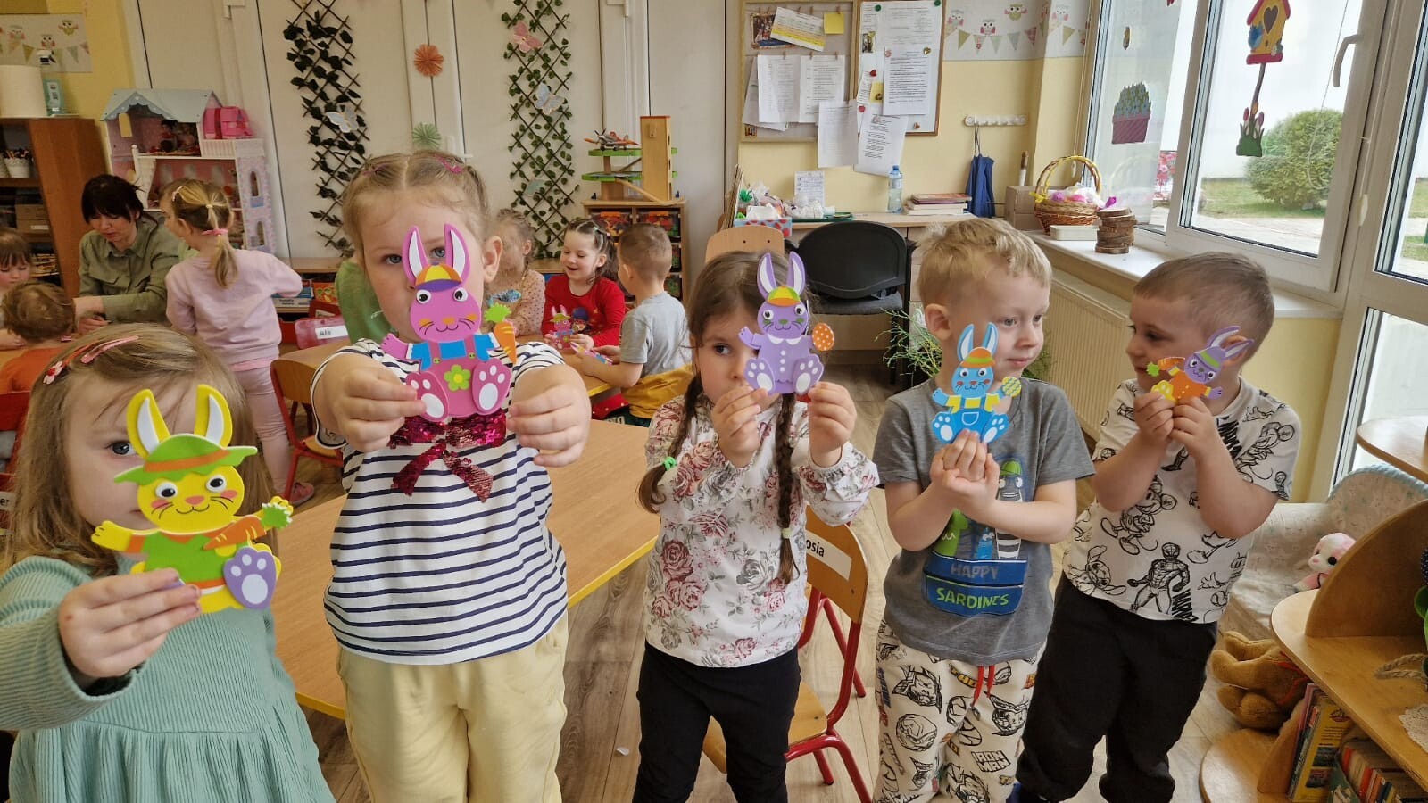 Podczas warsztatów dzieci rozwijały zdolności manualne, uczestnicząc w zajęciach związanych z tradycjami wielkanocnymi. Maluszki ozdabiały drzewko kolorowymi jajeczkami, wybierając ulubione kolory i wzory. Nasze drzewko stało się dziełem sztuki, pełnym wiosennej energii. Tworzyły zajączki z papieru ozdabiając je według własnych pomysłów. Siały również rzeżuszkę do słoiczków, ucząc się pielęgnacji roślinek.
