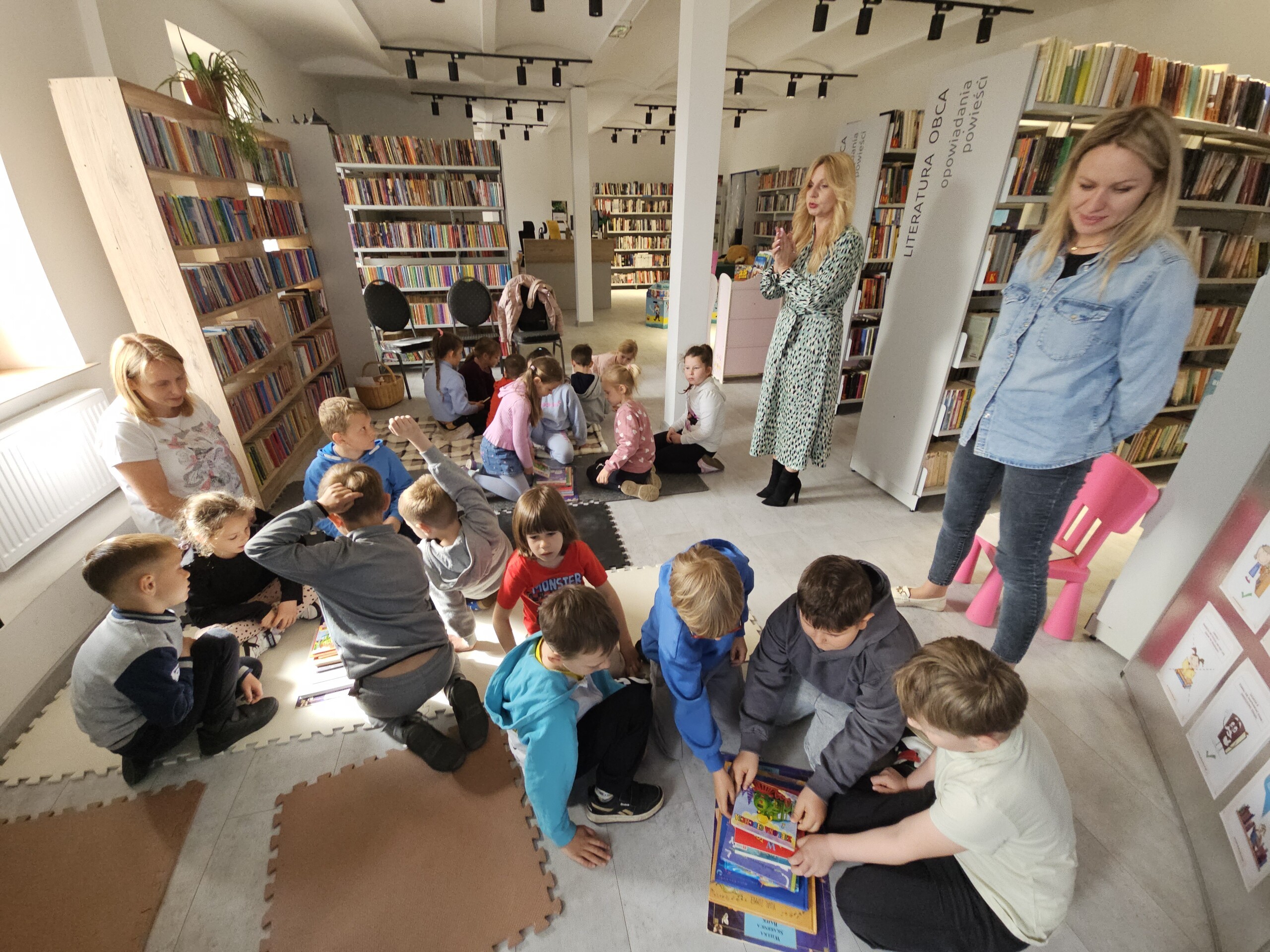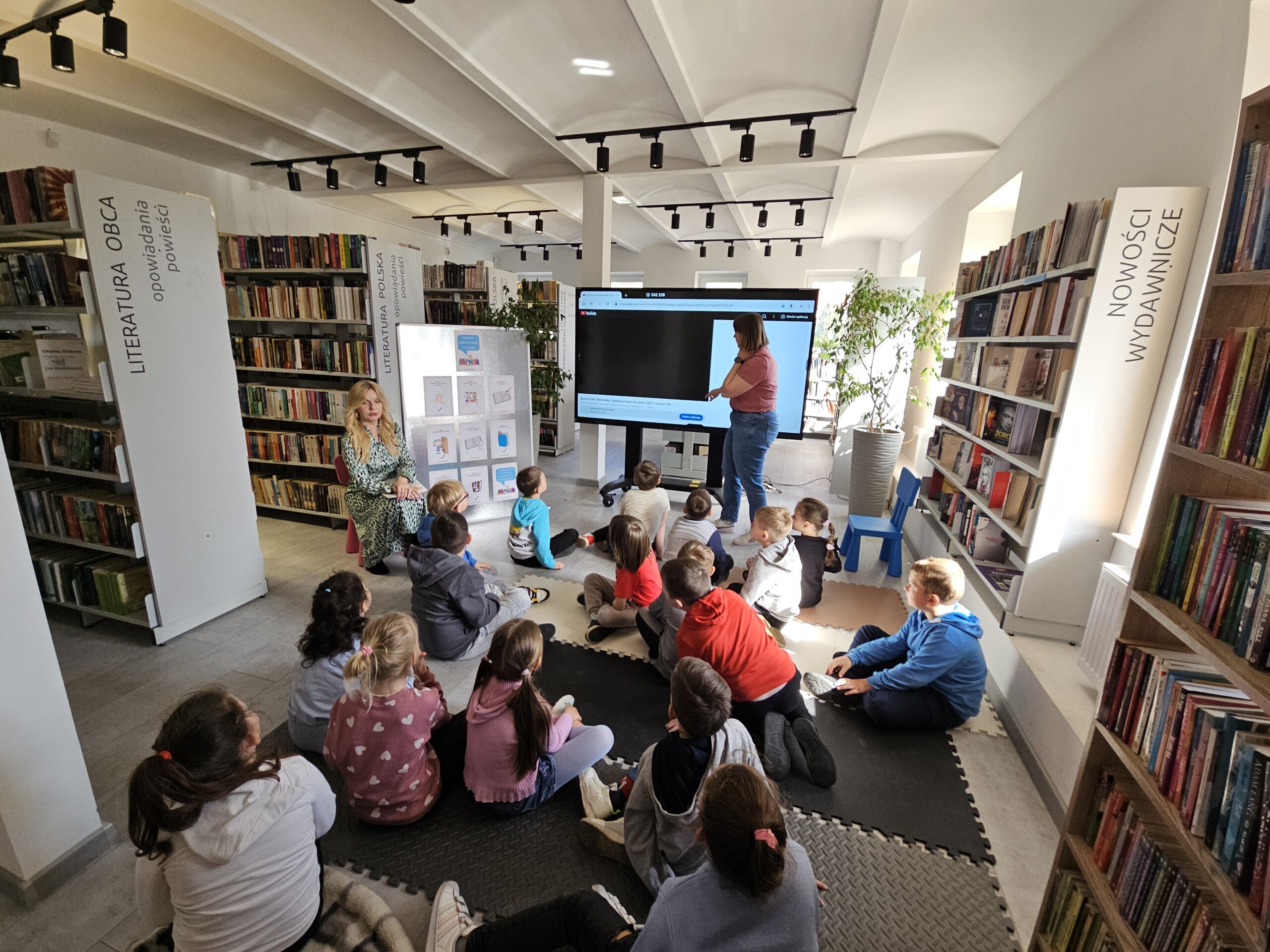 Podczas wizyty obejrzeliśmy bajkę, która uczyła, jak należy zachowywać się w bibliotece. Dzieci mogły również samodzielnie przeszukać półki biblioteczne i zapoznać się z różnorodnością książek. W ramach zajęć układaliśmy książki według wielkości, co pozwoliło na rozwijanie umiejętności organizacyjnych.