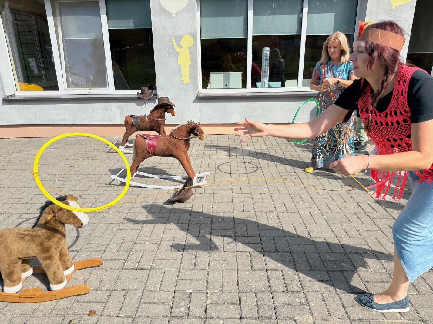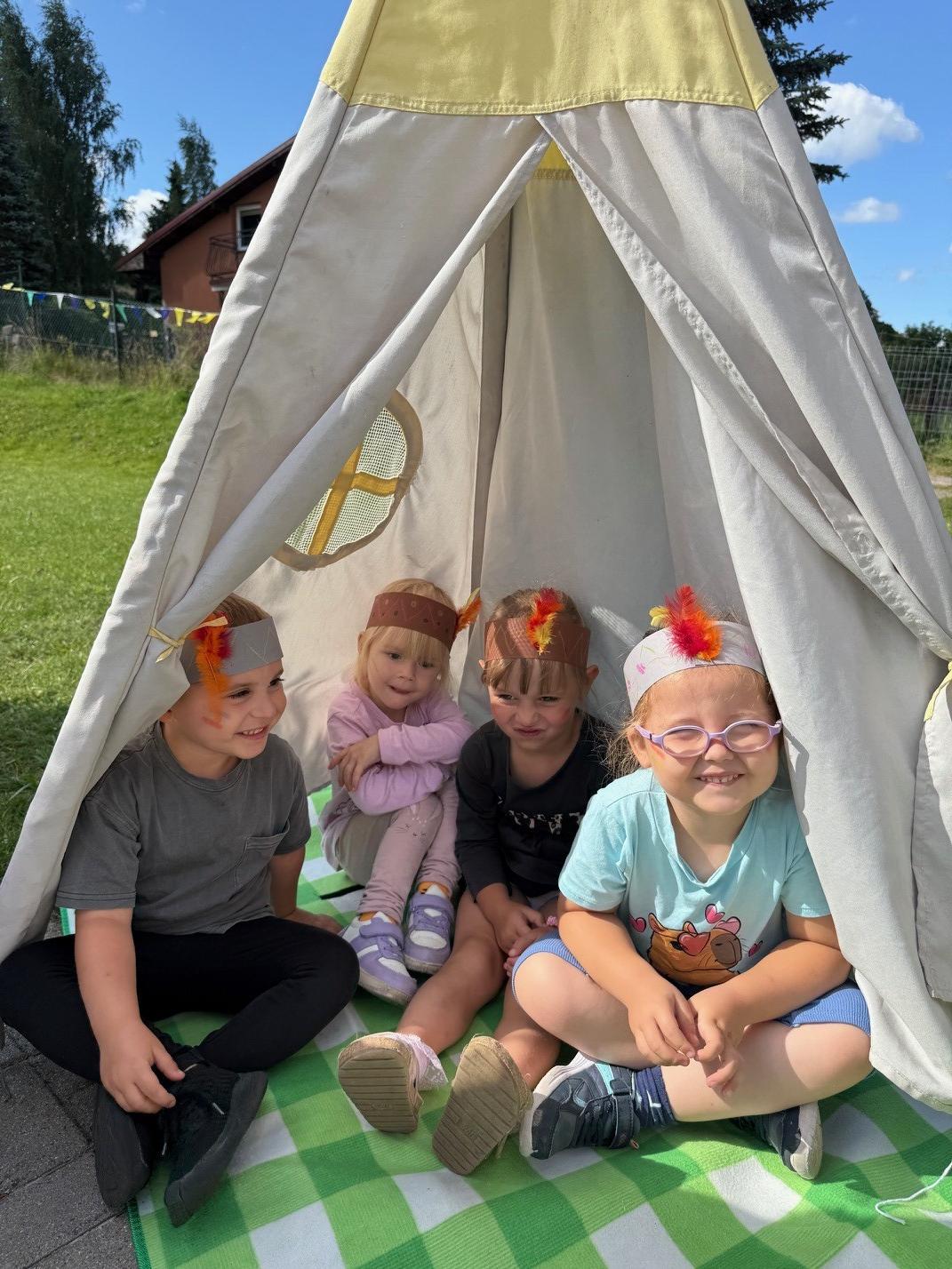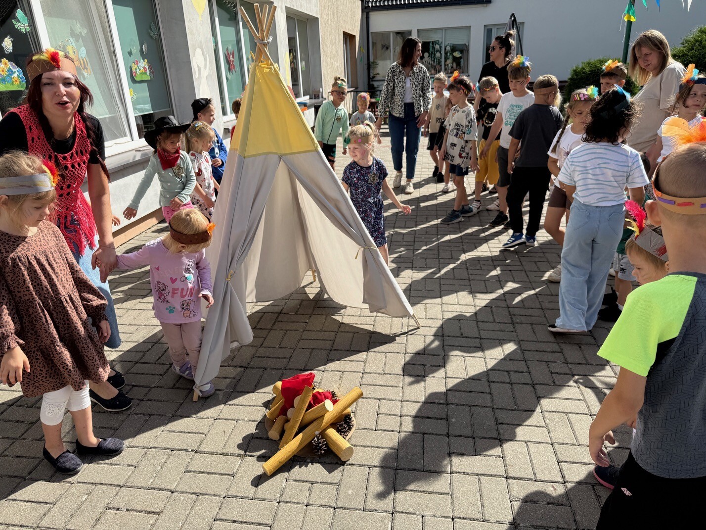 Dzieci w kowbojskich kapeluszach i indiańskich opaskach przeniosły się wprost na Dziki Zachód. Rozpoczęliśmy wspólnym tańcem przy „ognisku", a potem czekały na nas same emocje:
