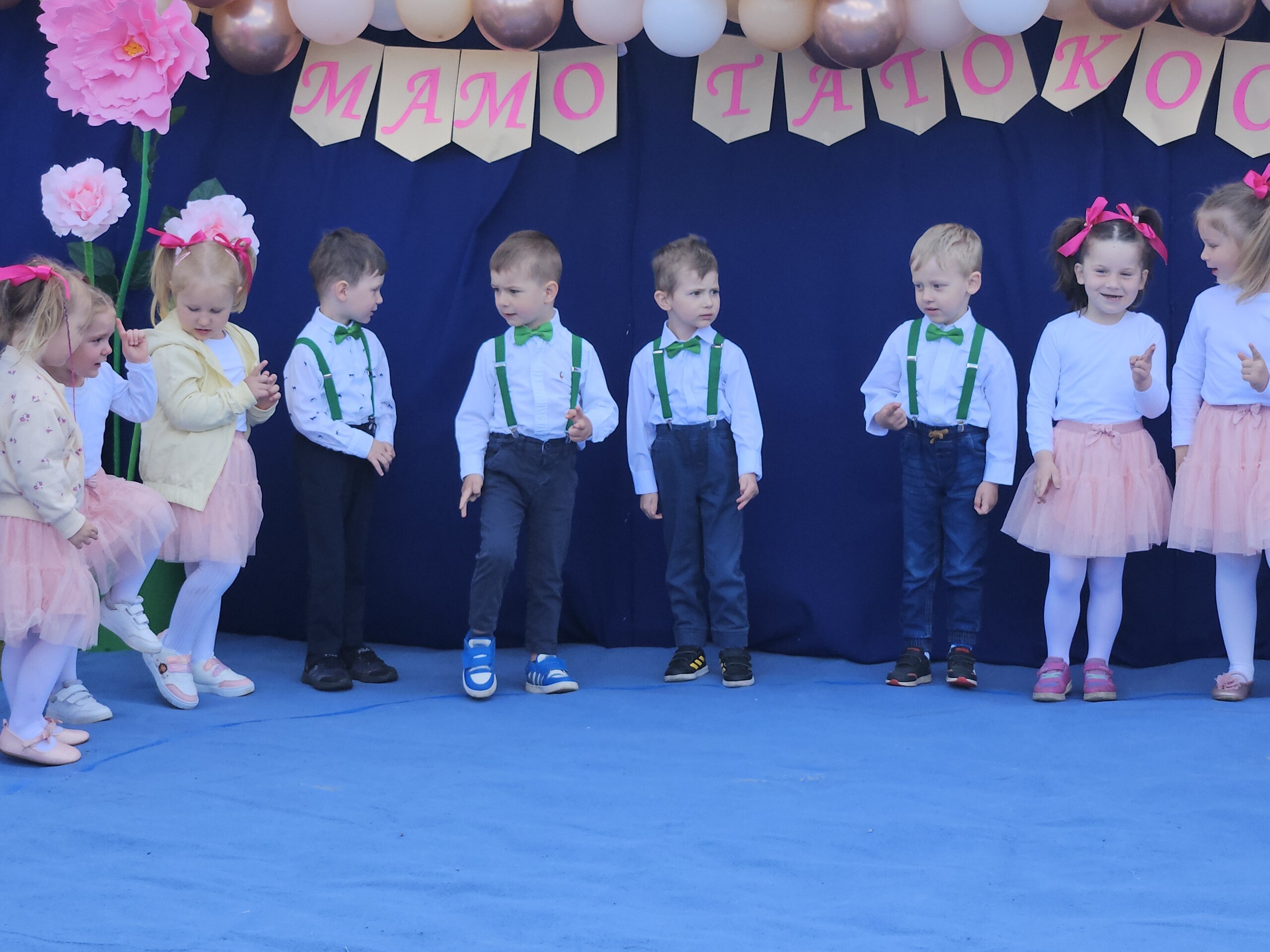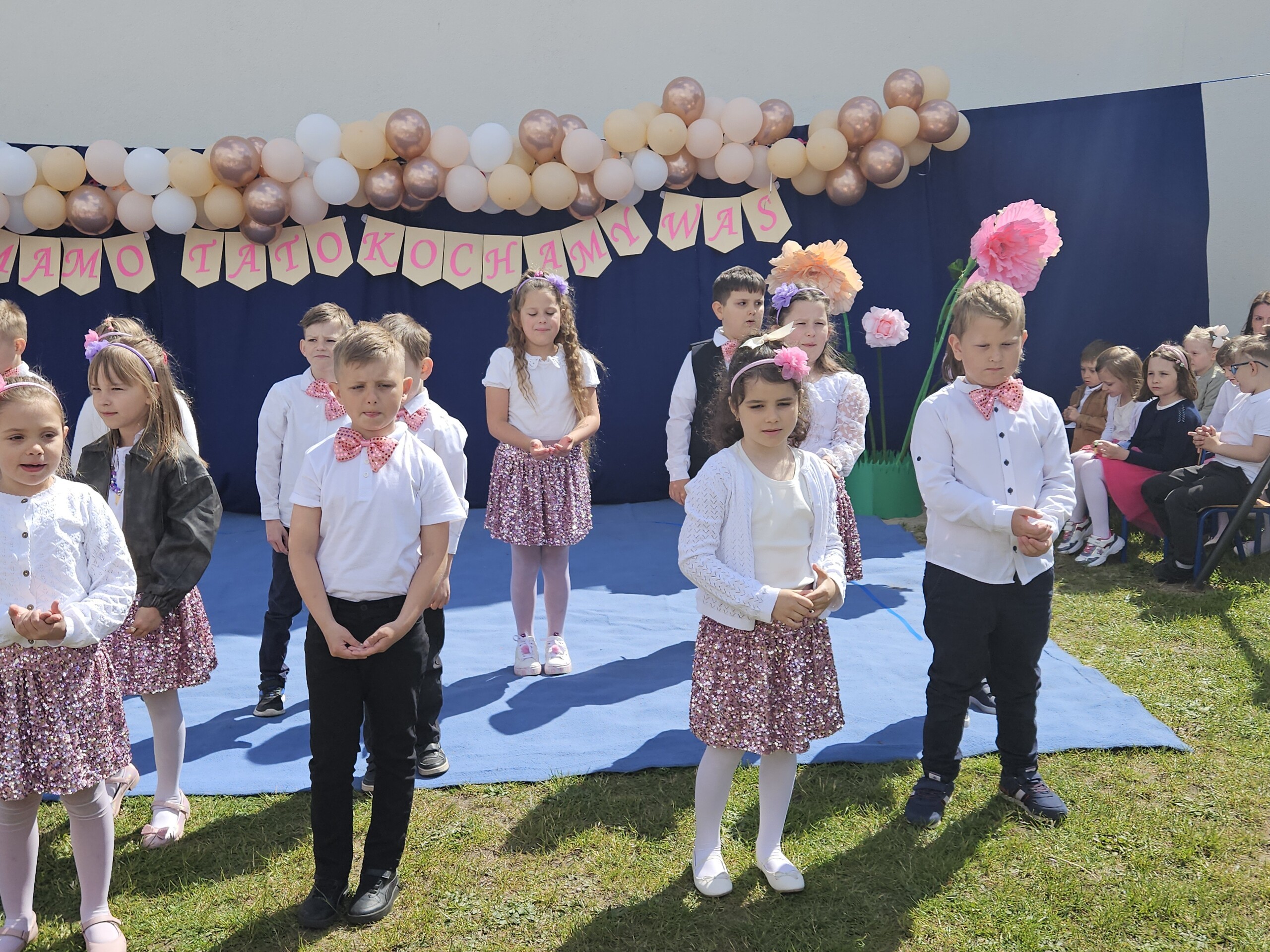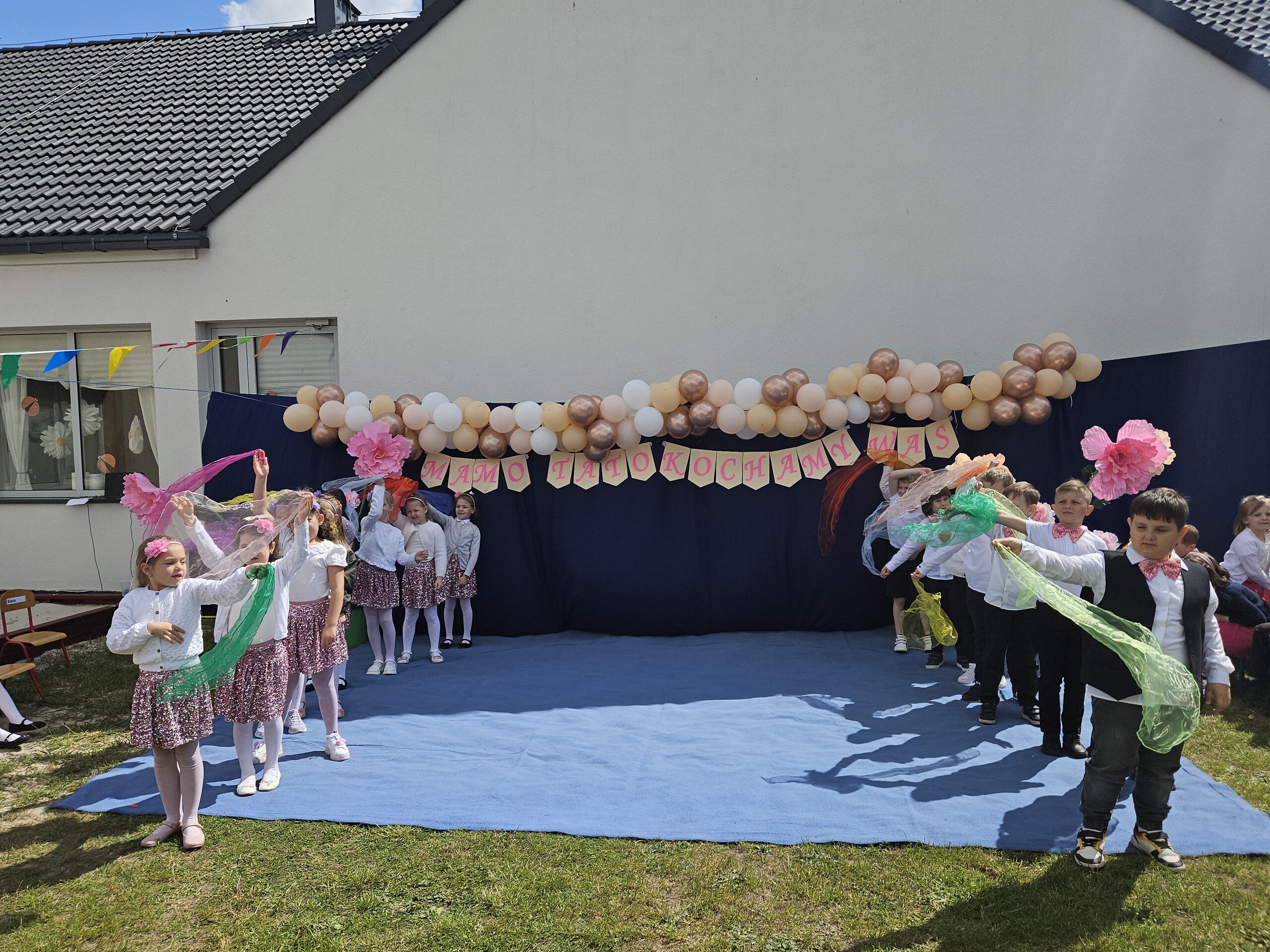 Festyn rozpoczął się od występów artystycznych przygotowanych przez dzieci z poszczególnych grup przedszkolnych. Mali artyści pięknie zaprezentowali swoje umiejętności w tańcach i piosenkach, wzbudzając podziw i uśmiechy na twarzach wzruszonych rodziców. Po tych występach dzieci przedstawiły program w języku angielskim, pokazując swoje postępy w nauce języka obcego.