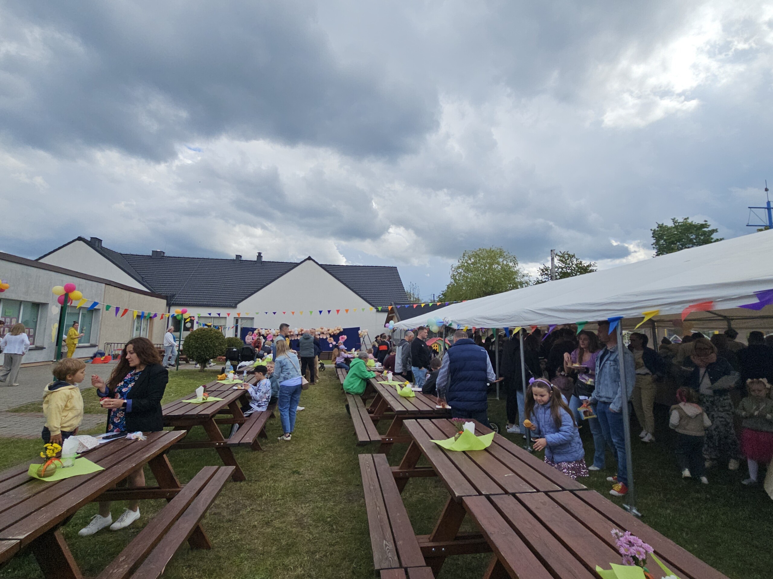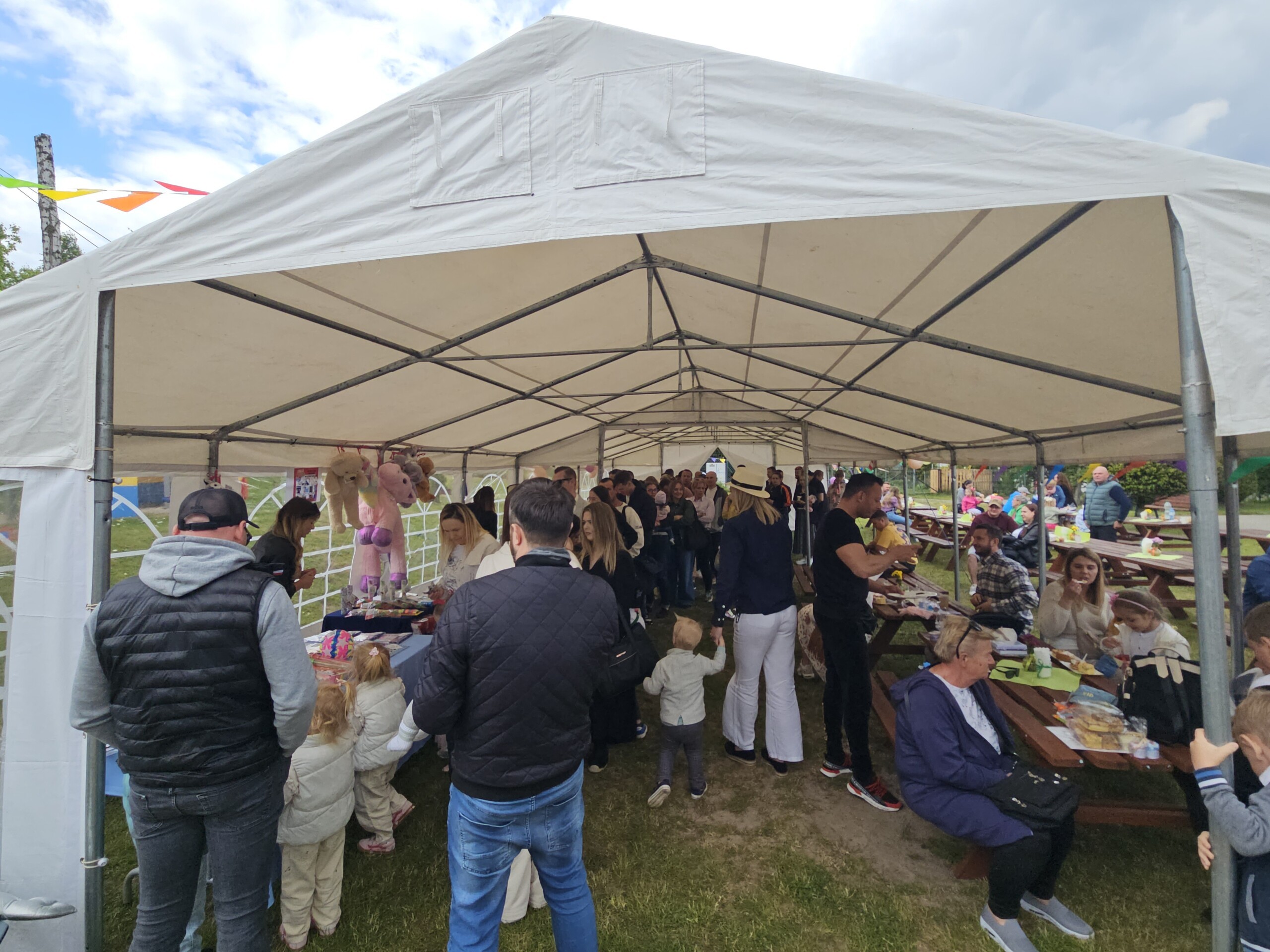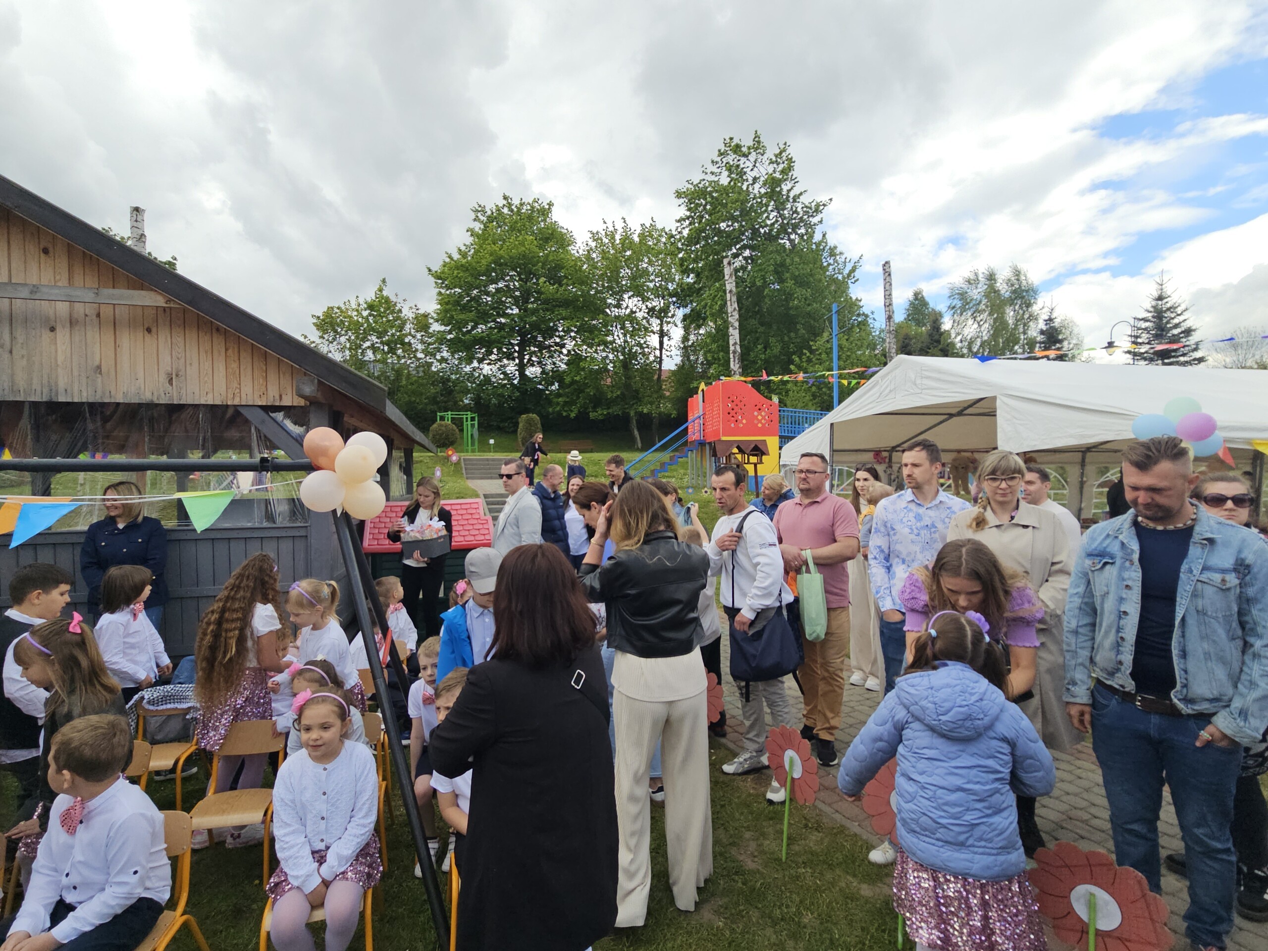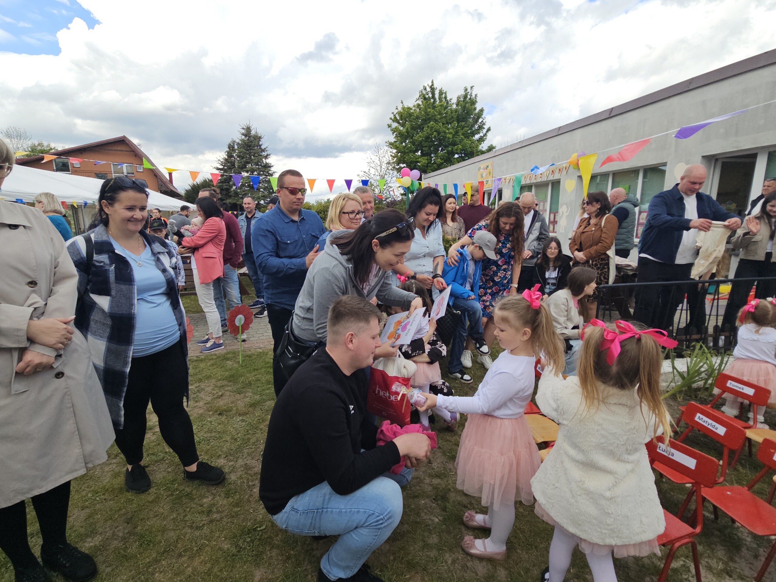 Po występach dzieci wręczyły rodzicom własnoręcznie przygotowane upominki, co było wzruszającym momentem dla wszystkich obecnych. Następnie przyszedł czas na zabawy na dmuchanej zjeżdżalni, które sprawiły wiele radości najmłodszym uczestnikom festynu.