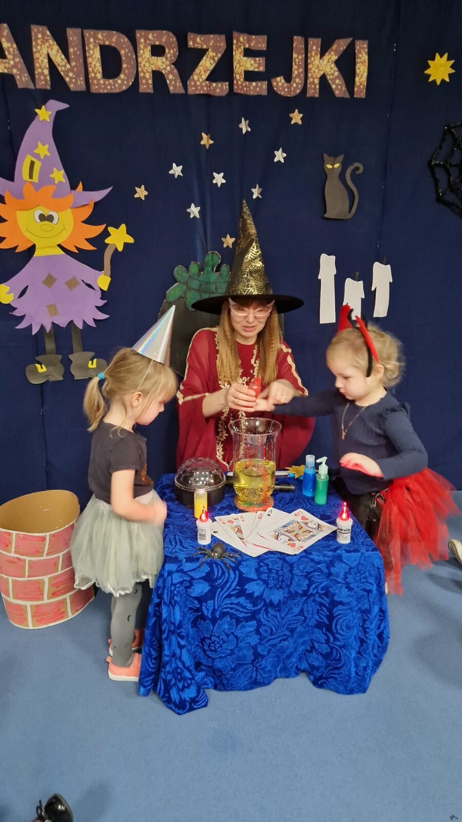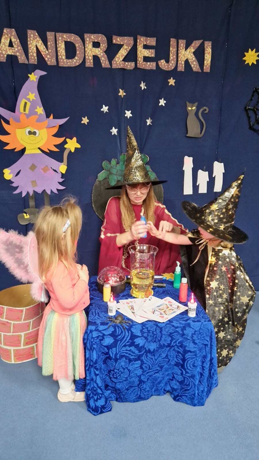 W dniu pełnym czarów i magii, przedszkolaki z grupy I miały okazję uczestniczyć w niezwykłym wydarzeniu - Andrzejkach. Sala przedszkolna zamieniła się w prawdziwą krainę czarów, gdzie dekoracje wprowadziły dzieci w magiczny nastrój. Każdy z przedszkolaków przebrał się za wróżki, czarownice i czarodziejów, co dodało całemu wydarzeniu niezwykłego uroku.