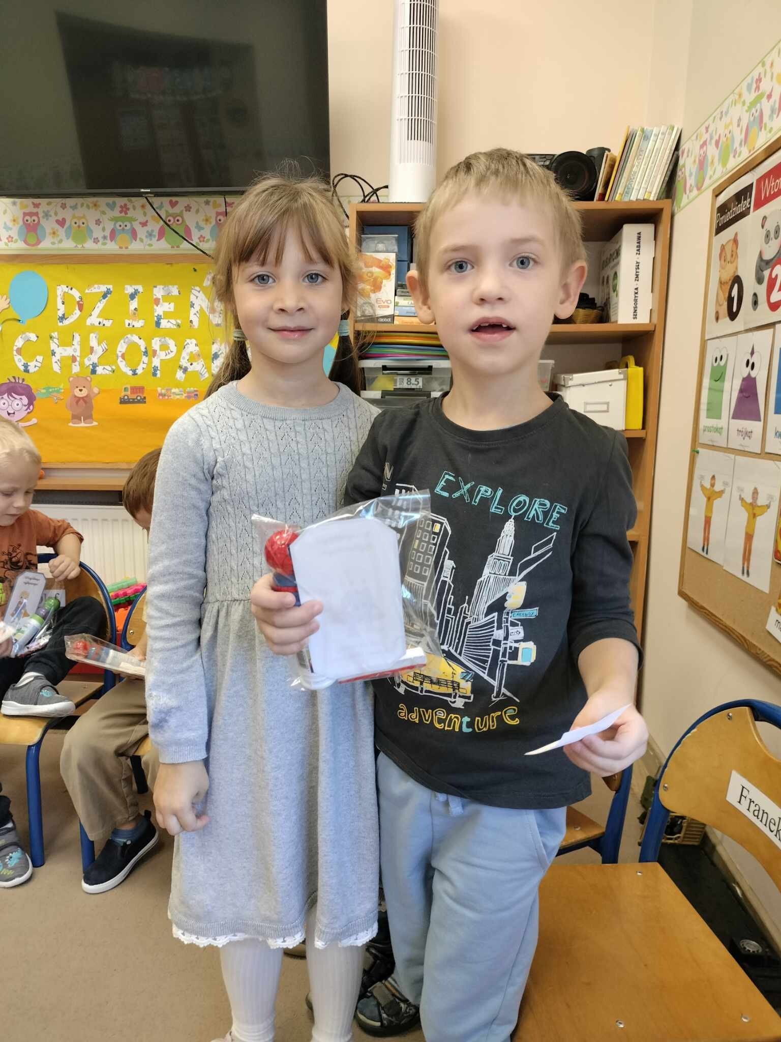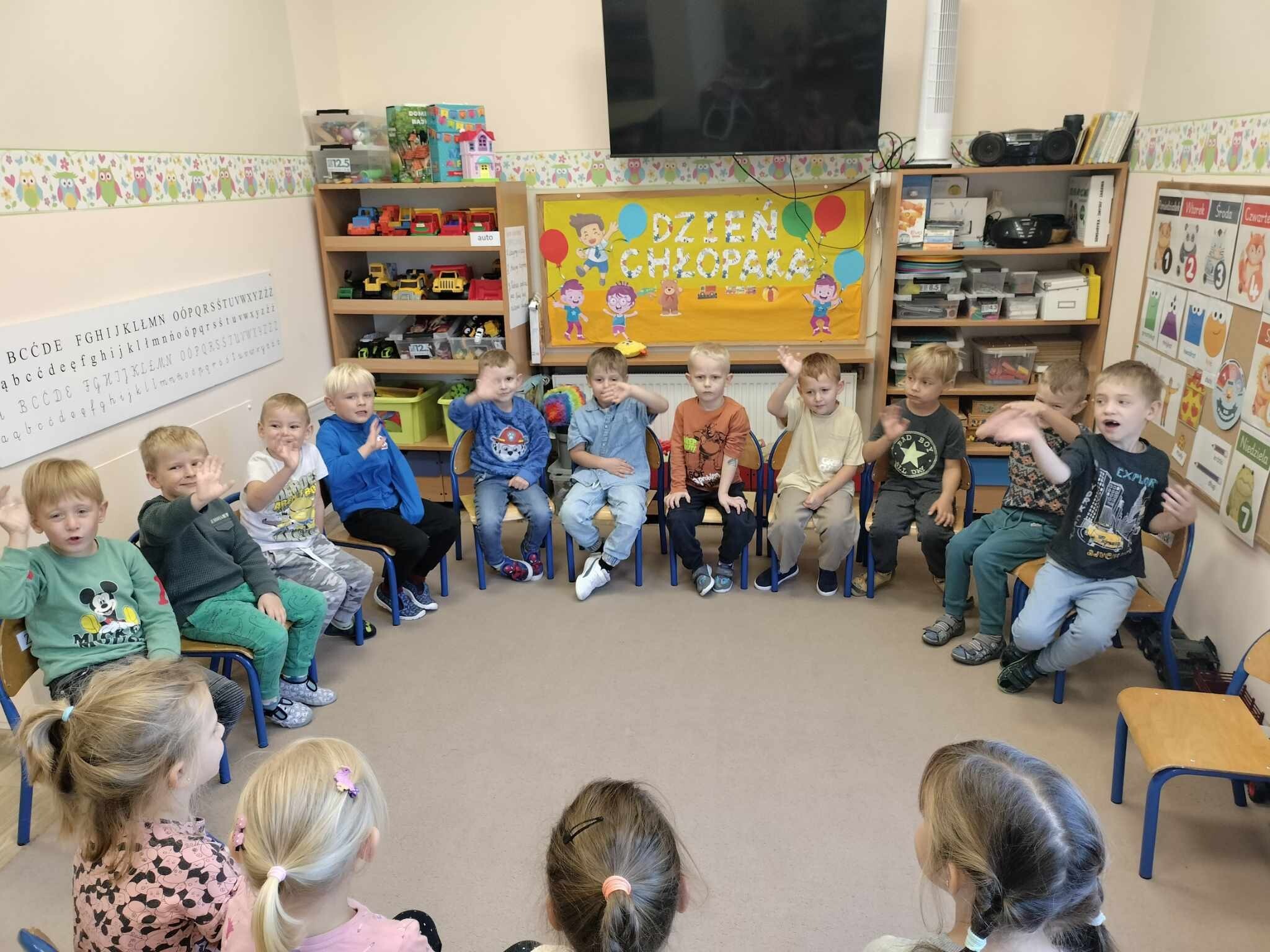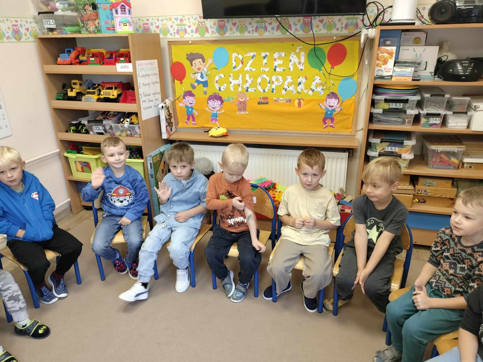 W dniu dzisiejszym Chłopcy obchodzili swoje małe święto, a mianowicie Dzień Chłopaka. Dziewczynki przygotowały małe upominki dla wszystkich chłopców, zabawy do muzyki i konkurencję z podziałem na drużyny. Było wesoło, głośno i radośnie. Na koniec wspólnego świętowania dziewczynki zaprosiły chłopców na poczęstunek.