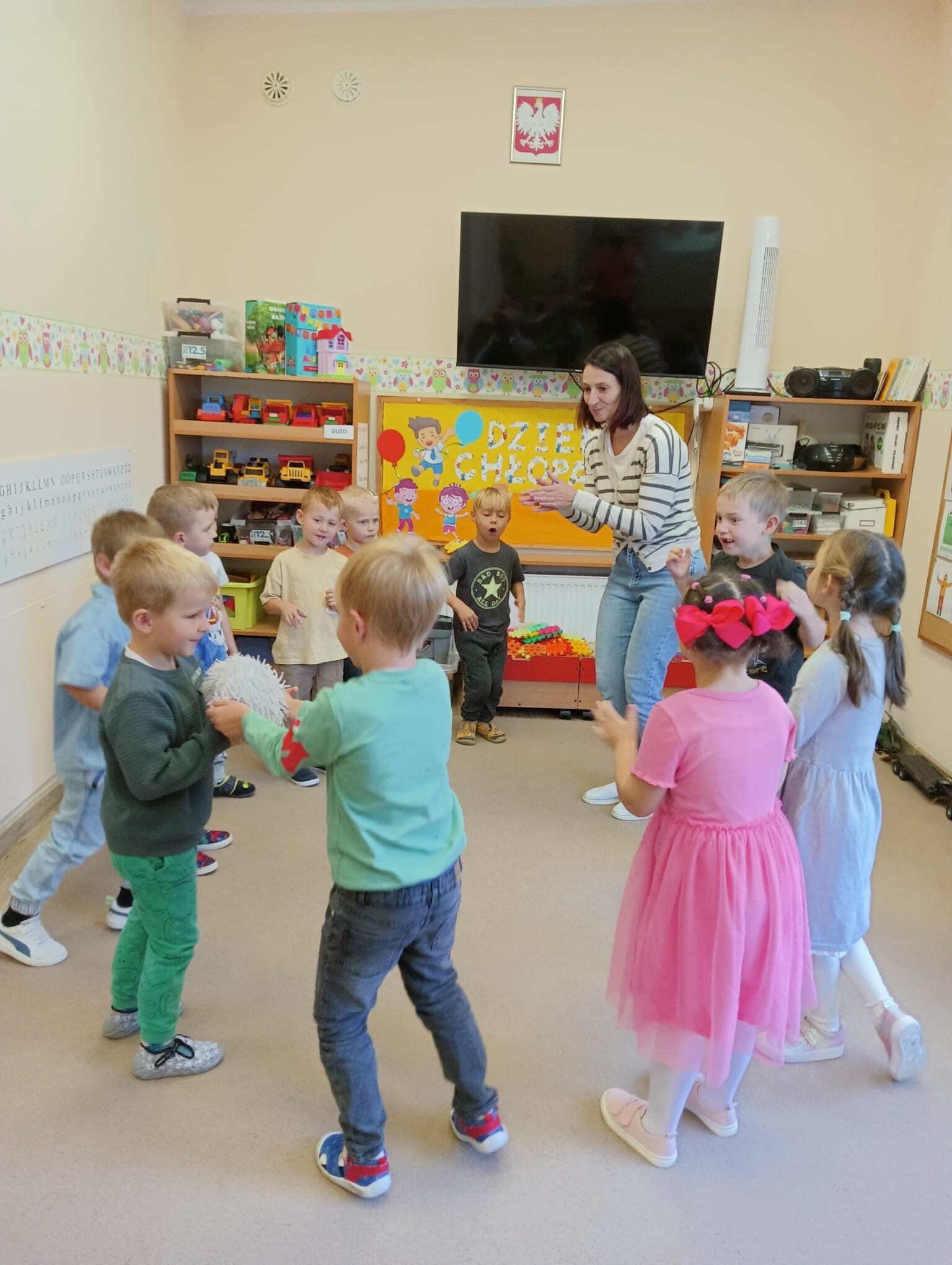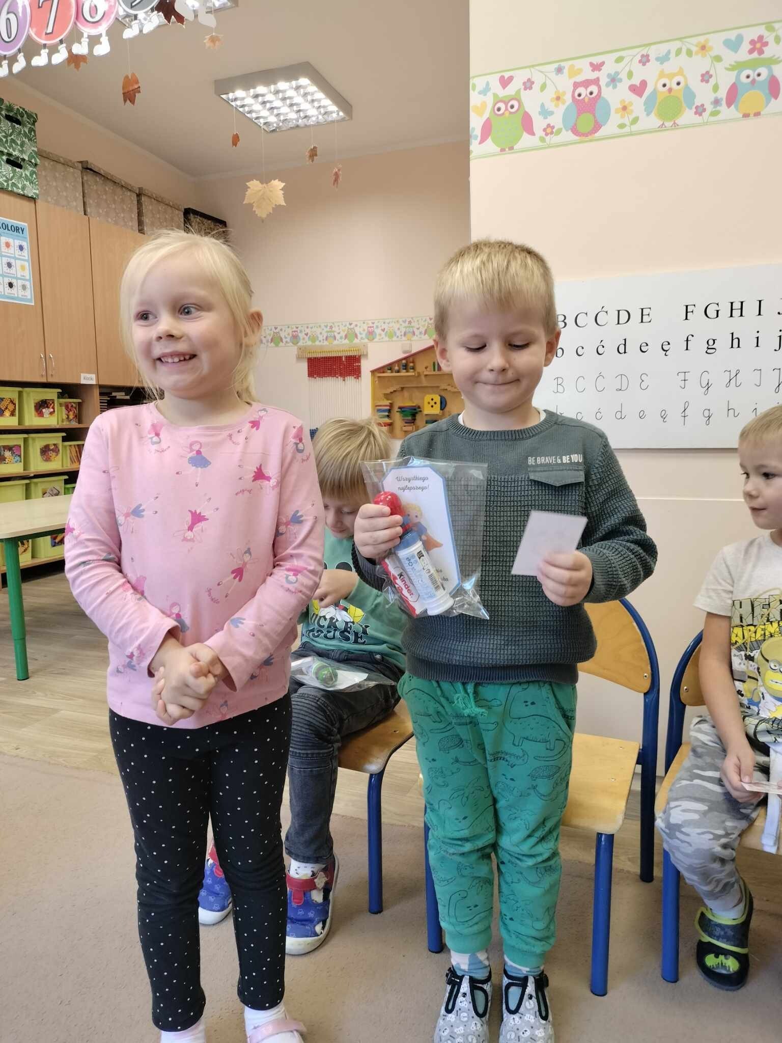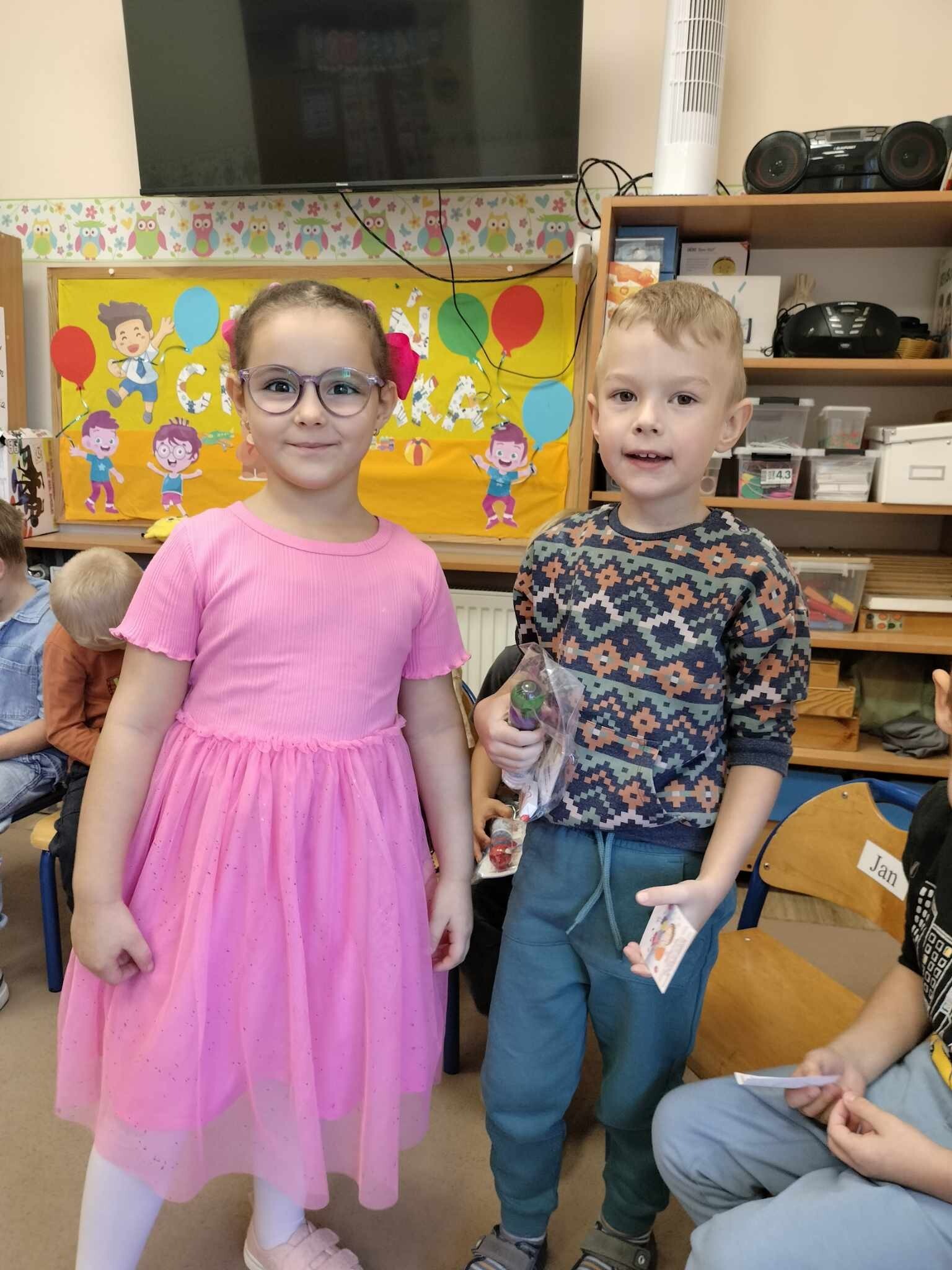 W dniu dzisiejszym Chłopcy obchodzili swoje małe święto, a mianowicie Dzień Chłopaka. Dziewczynki przygotowały małe upominki dla wszystkich chłopców, zabawy do muzyki i konkurencję z podziałem na drużyny. Było wesoło, głośno i radośnie. Na koniec wspólnego świętowania dziewczynki zaprosiły chłopców na poczęstunek.