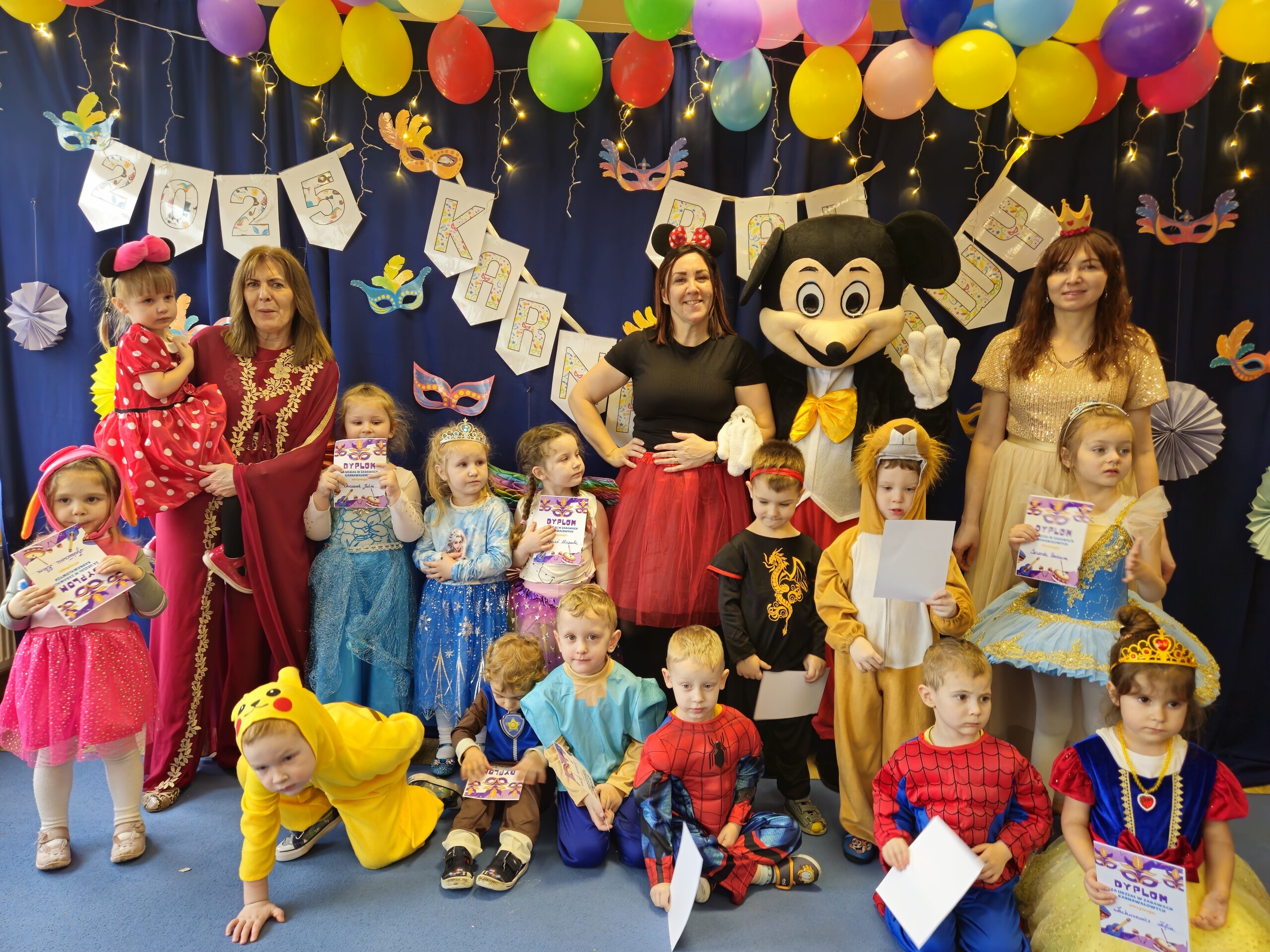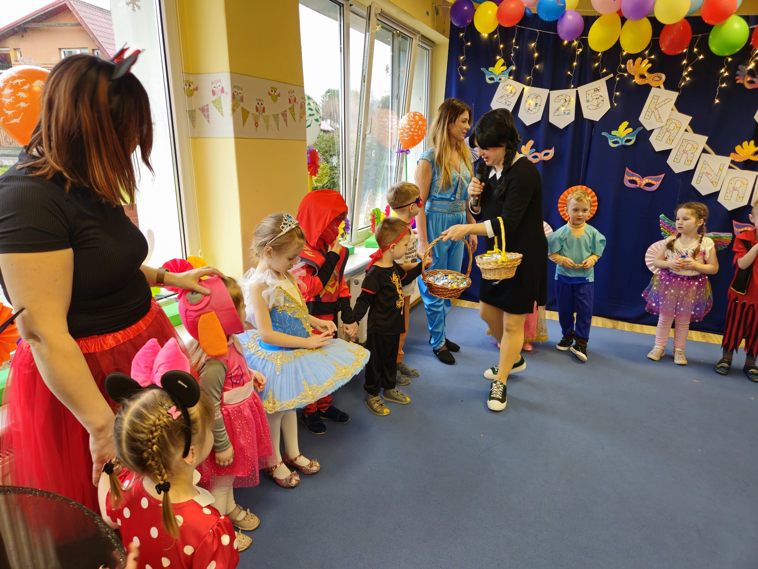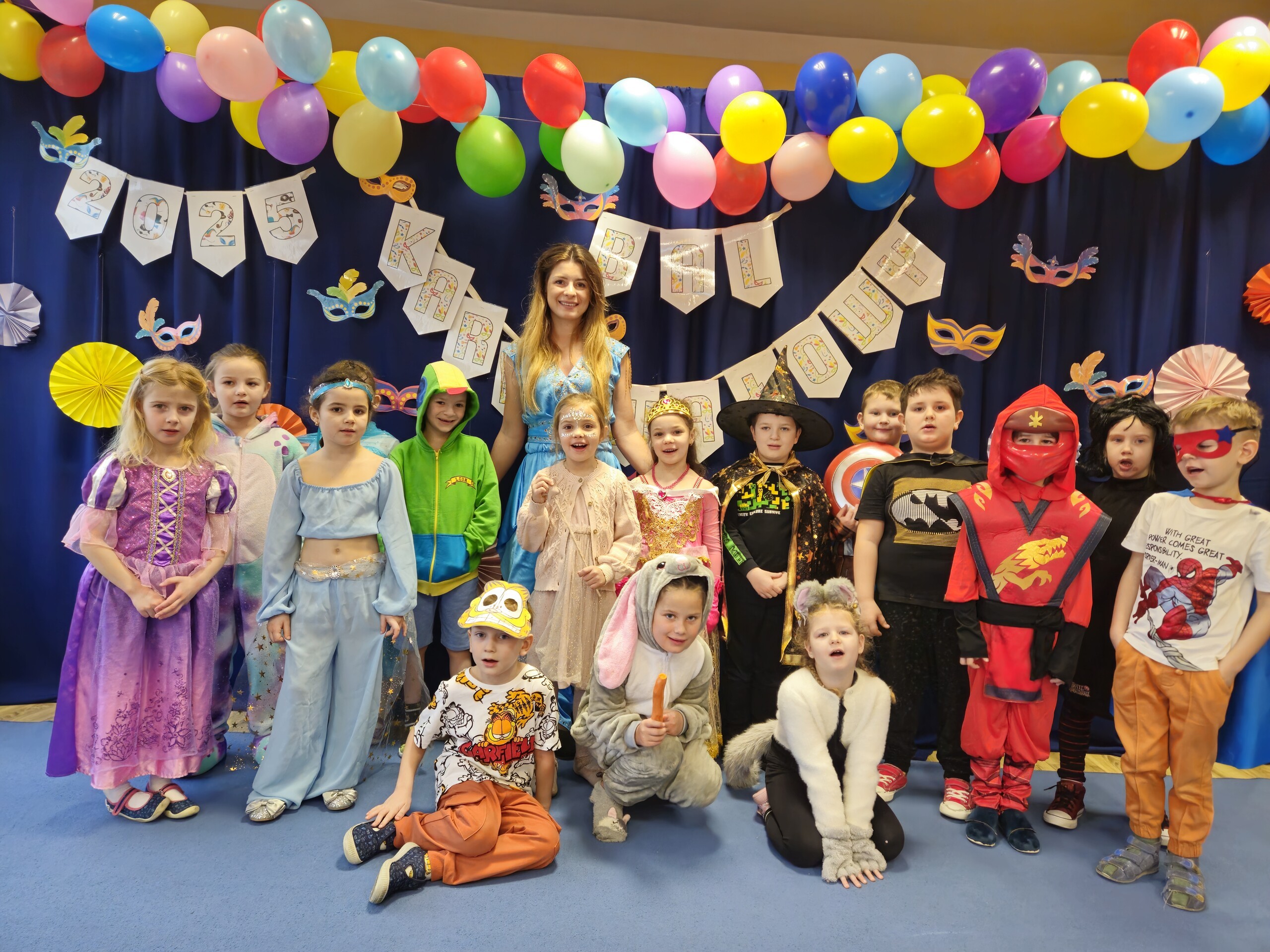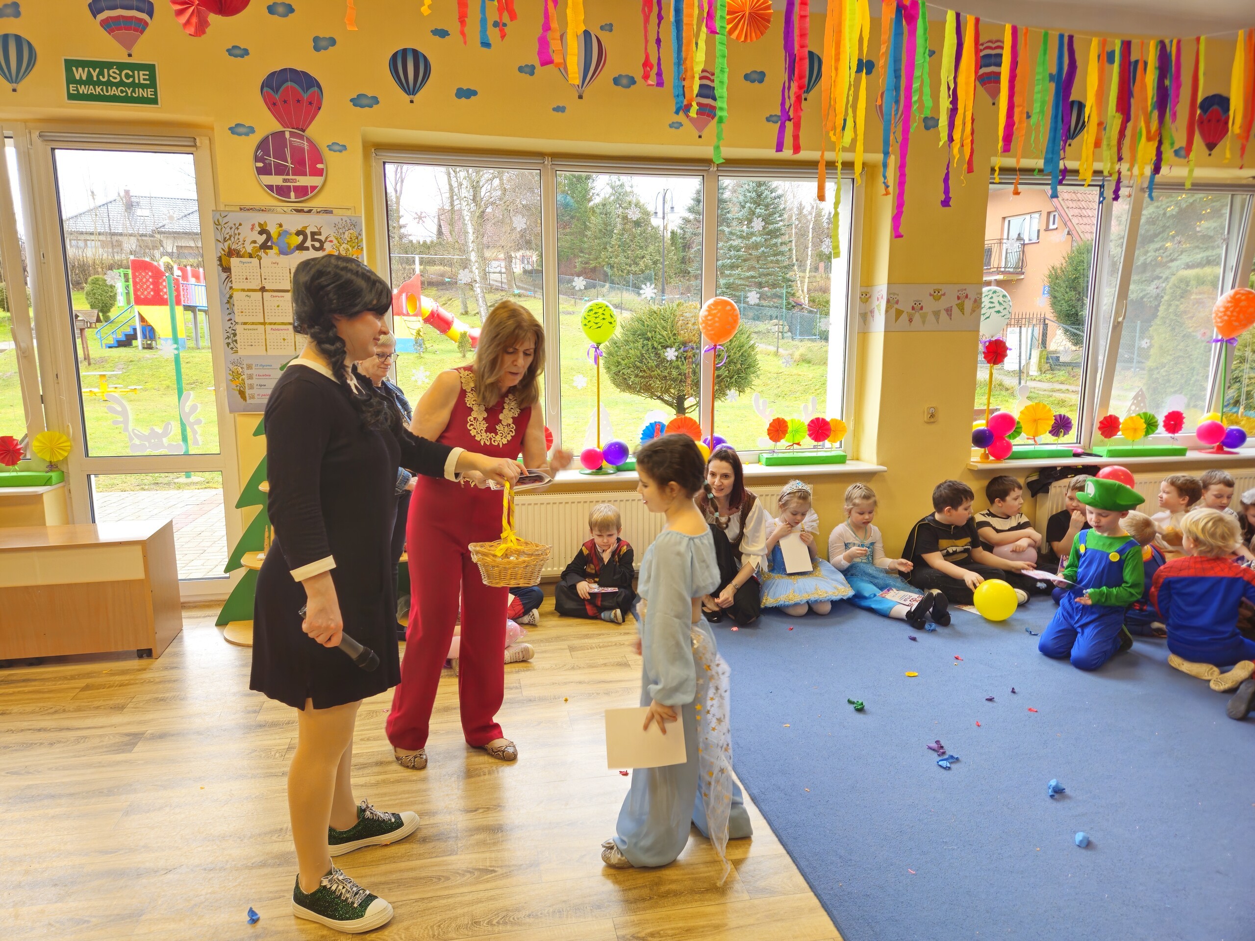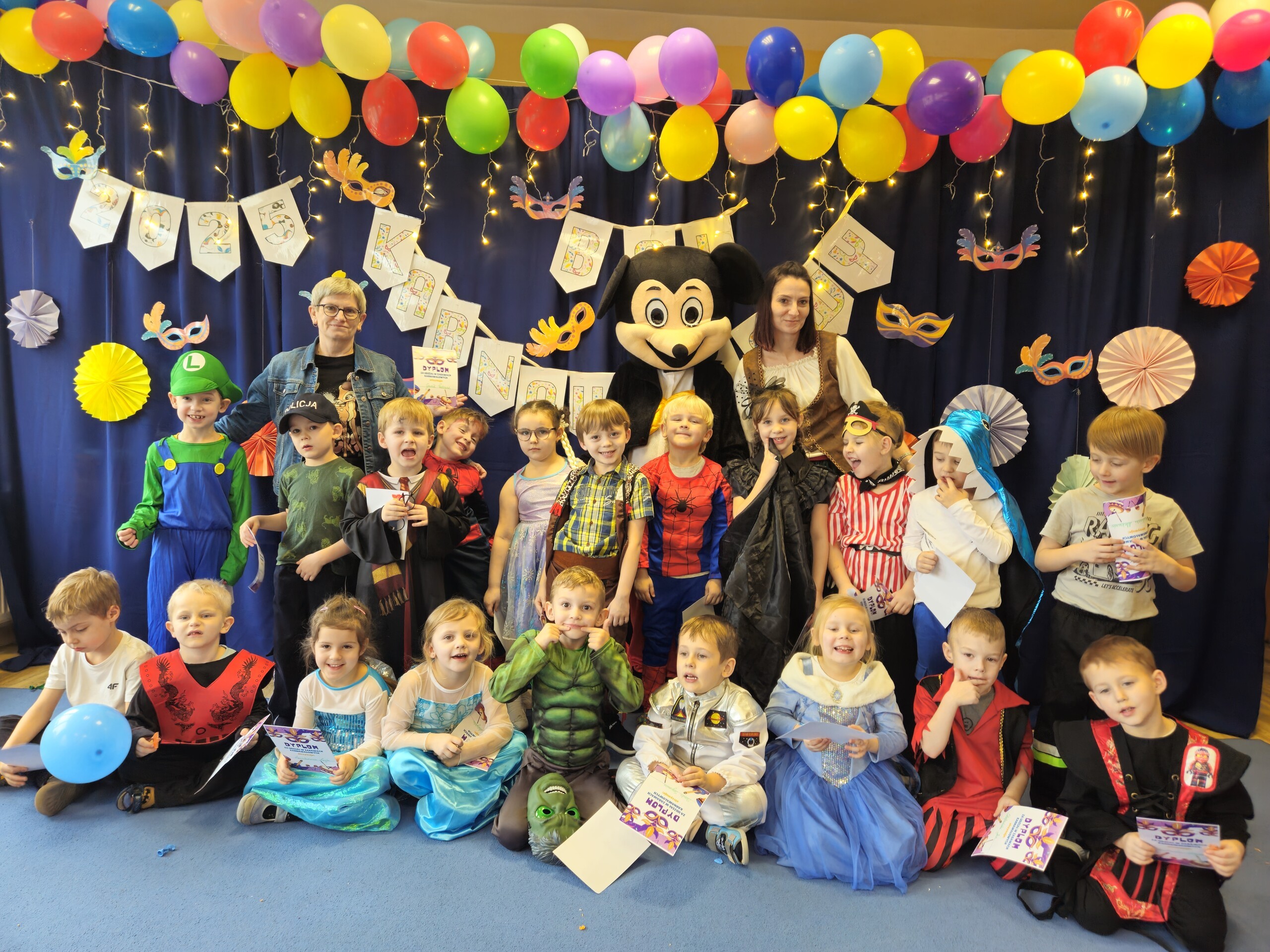 Na zakończenie balu pani Daria wręczyła każdemu uczestnikowi pamiątkowy dyplom oraz słodkiego cukierka. Dzieci z dumą odbierały swoje nagrody, a na ich twarzach malowały się szerokie uśmiechy. Bal zakończył się wspólnym śpiewem i tańcem, pozostawiając wszystkim uczestnikom mnóstwo pięknych wspomnień.