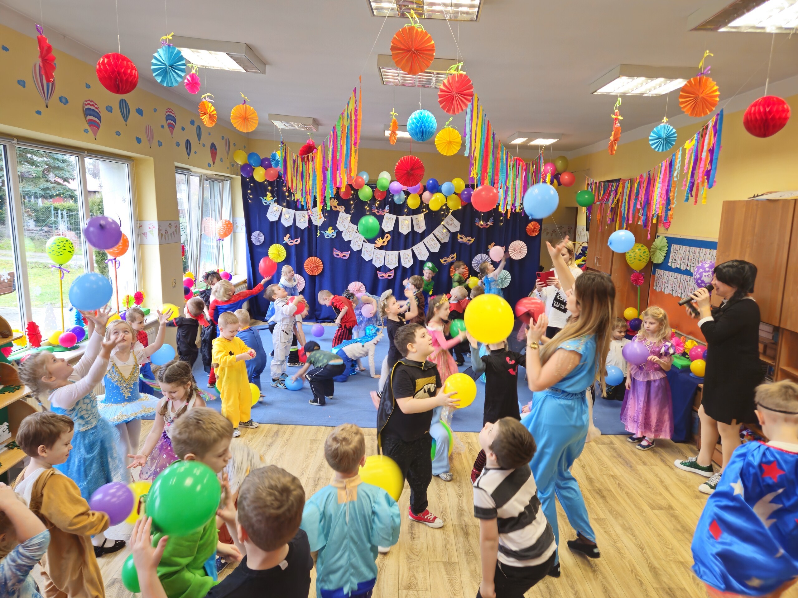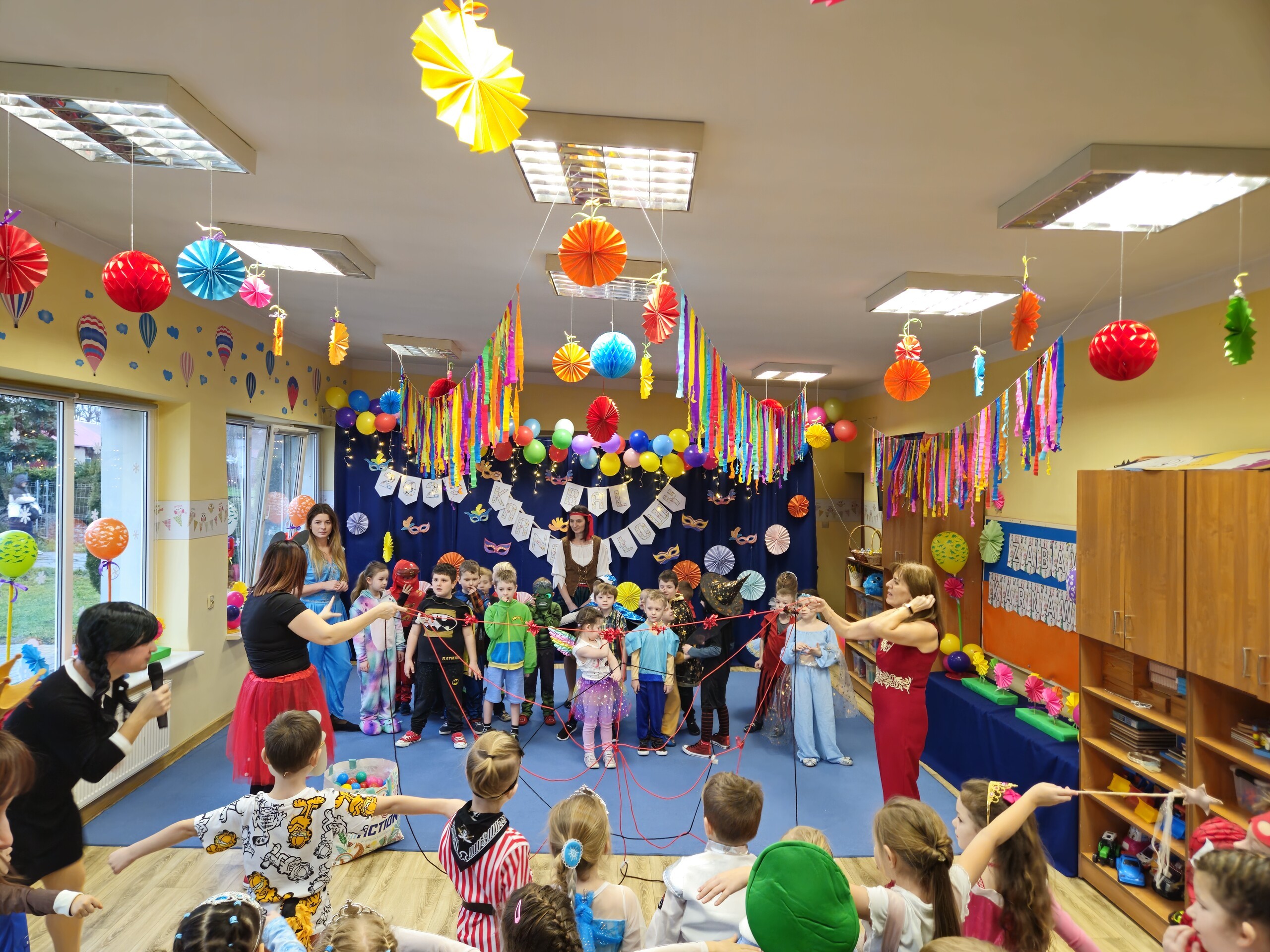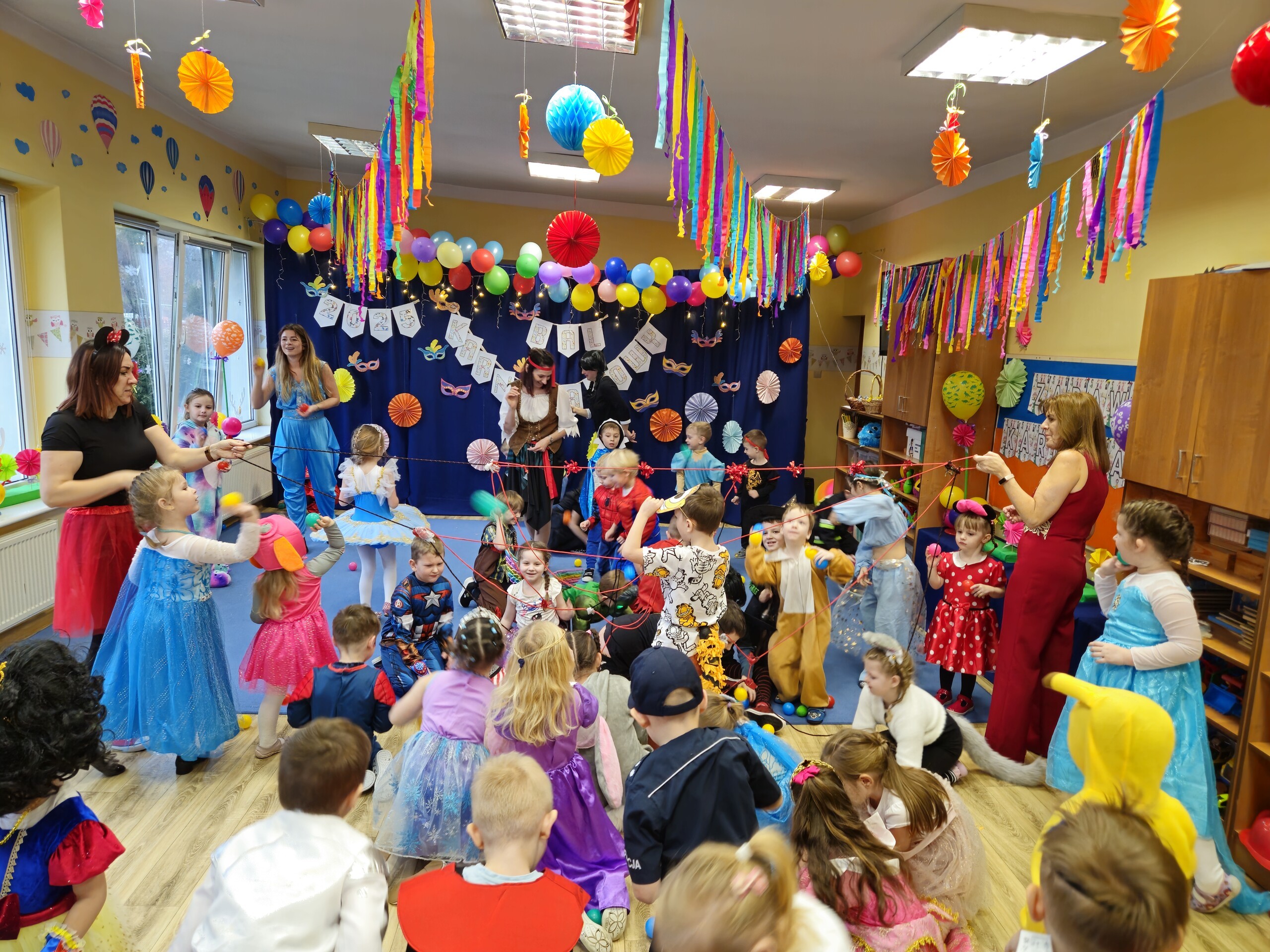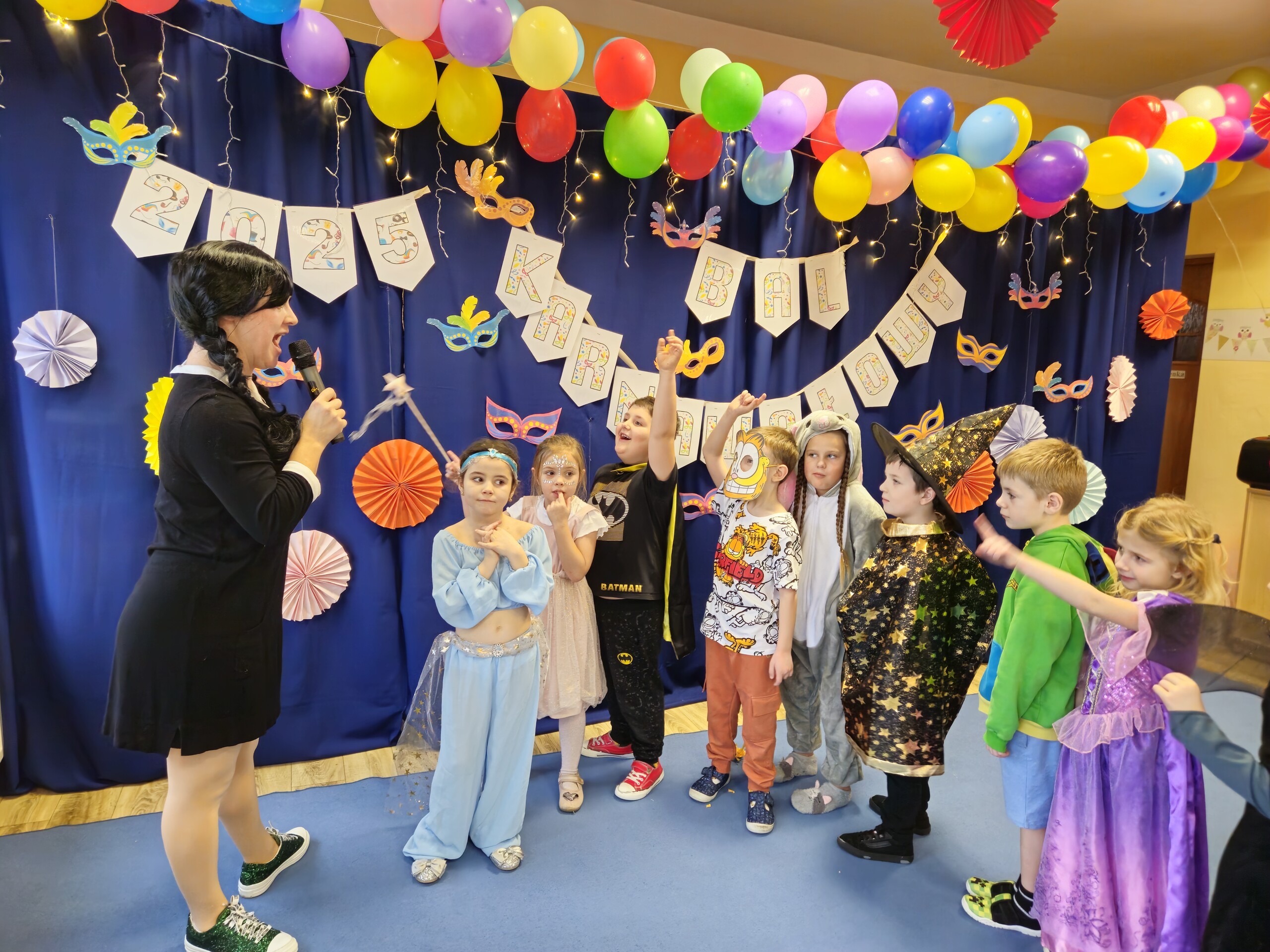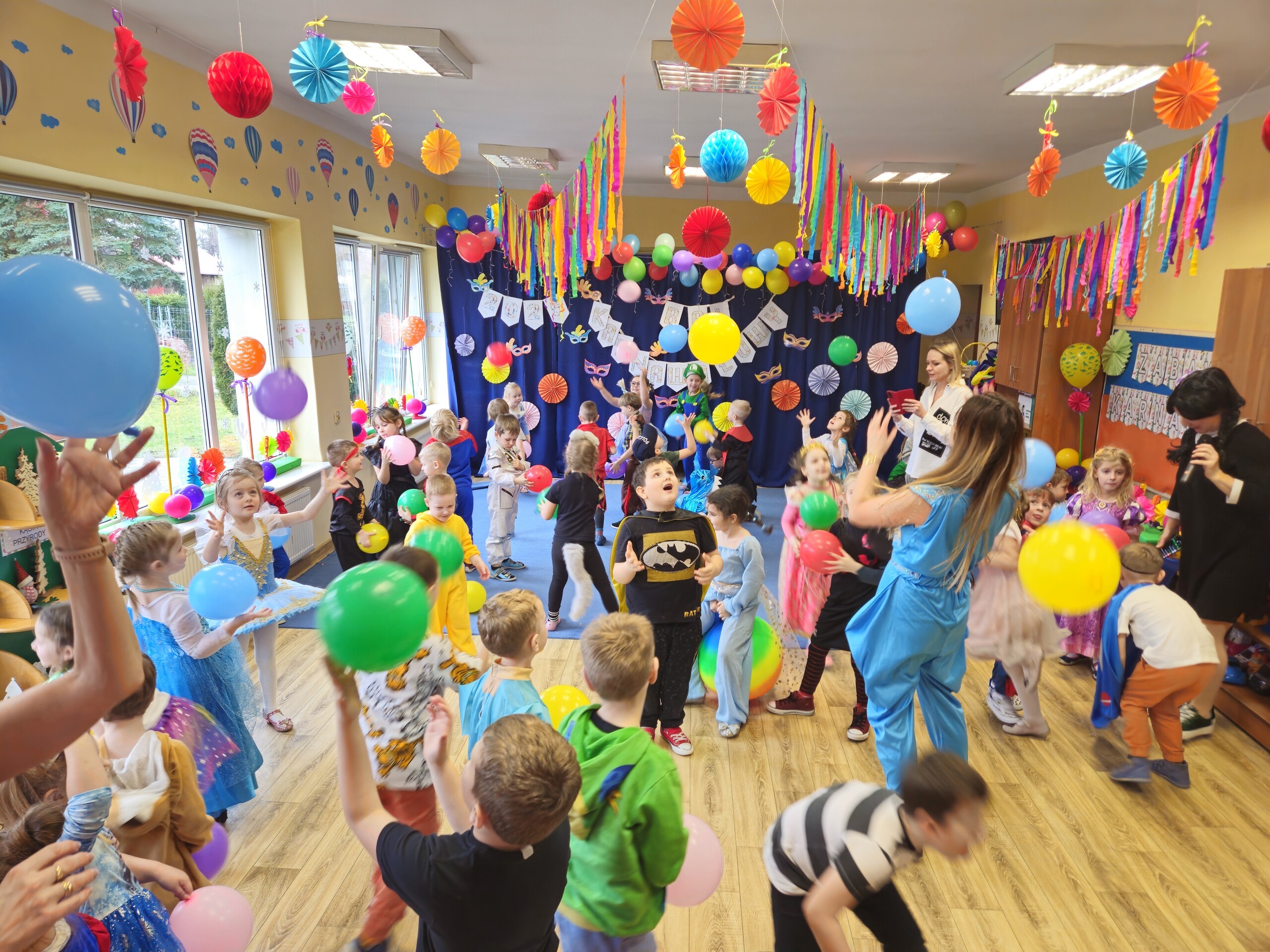 Dnia 31 stycznia 2025 roku w naszym przedszkolu odbył się niezwykły Bal Karnawałowy, który na długo pozostanie w pamięci wszystkich uczestników. Bal poprowadziła przebojowa animatorka, pani Daria, która zadbała o to, by każda chwila była pełna radości i uśmiechu.