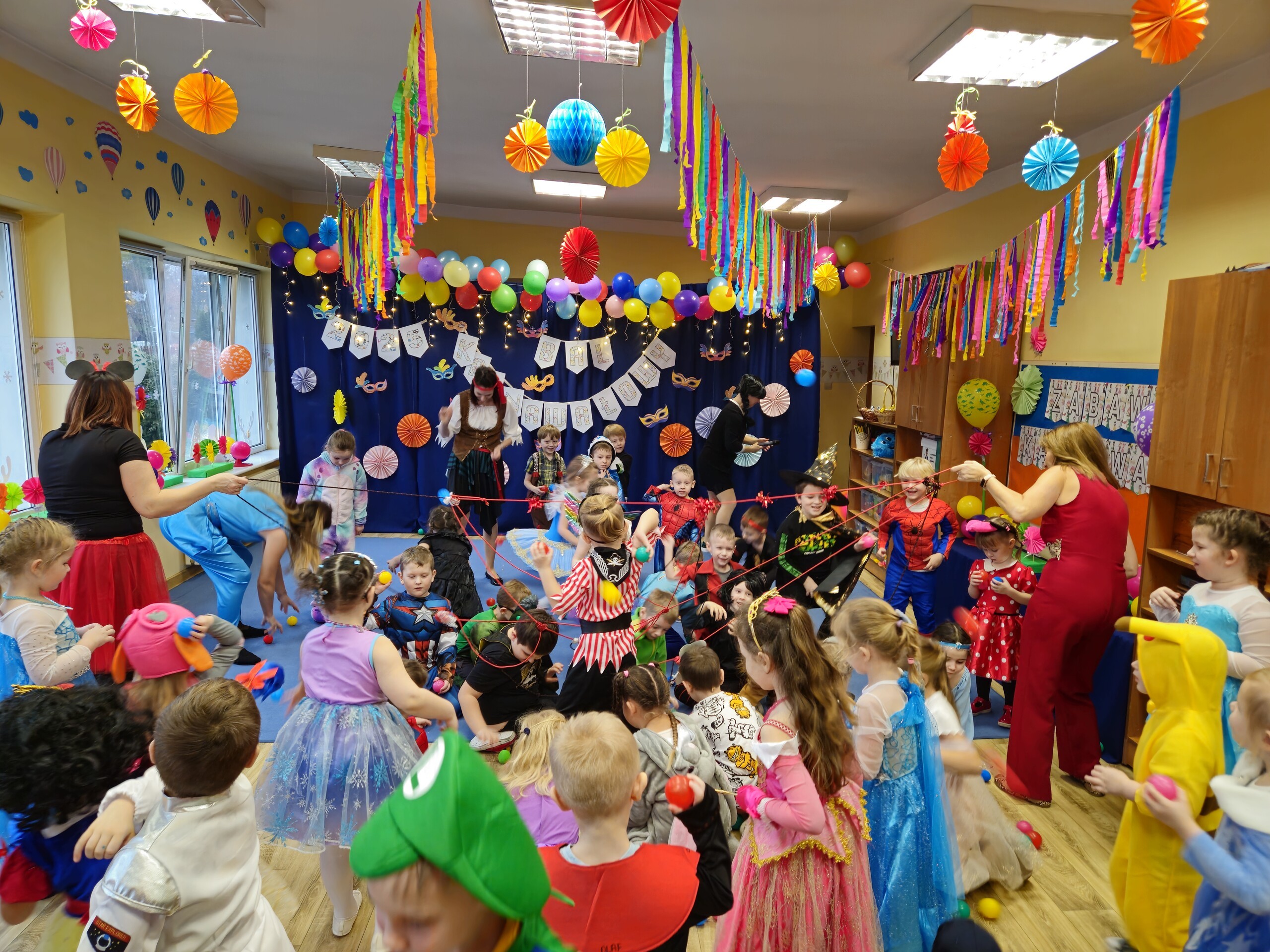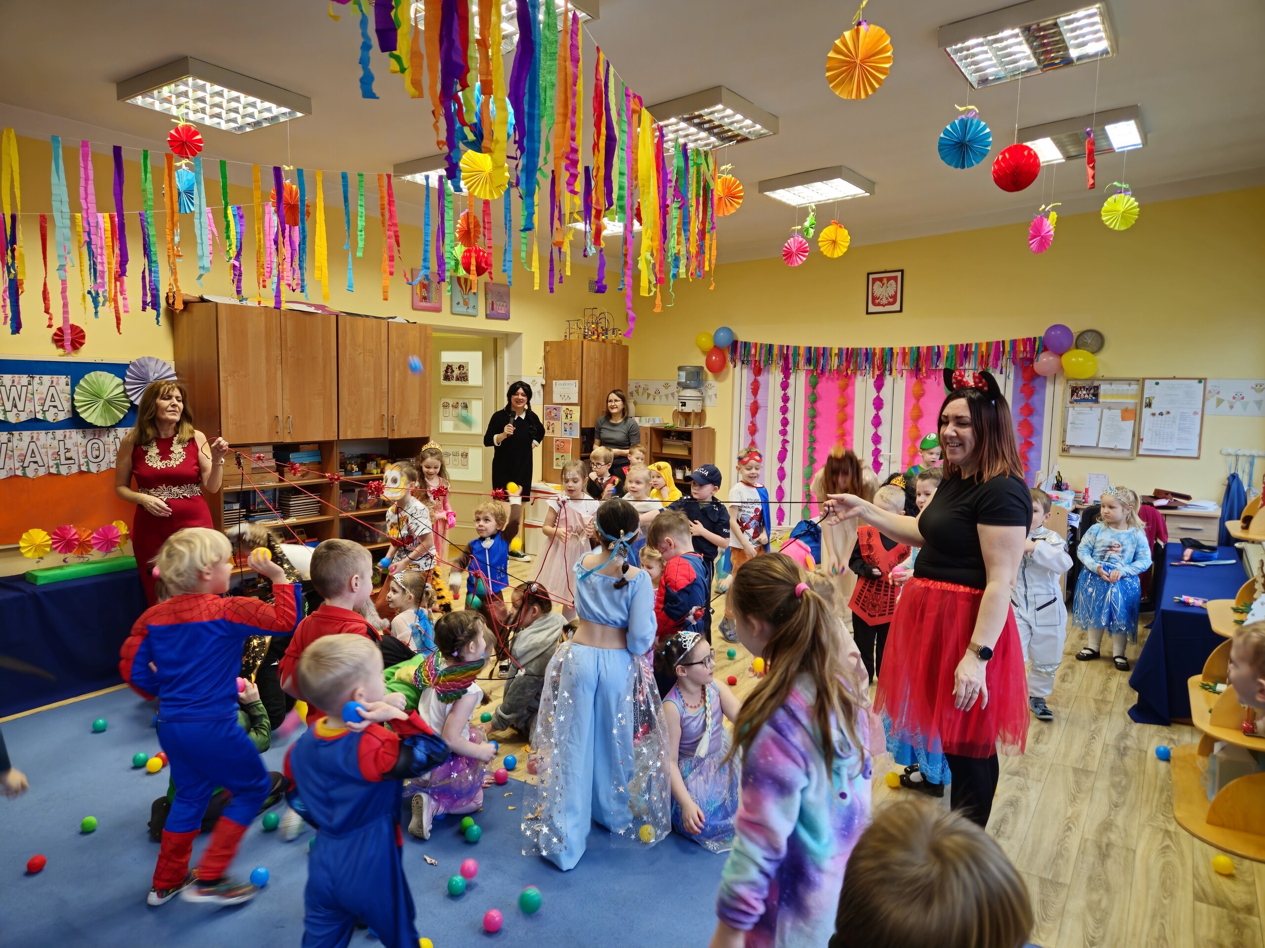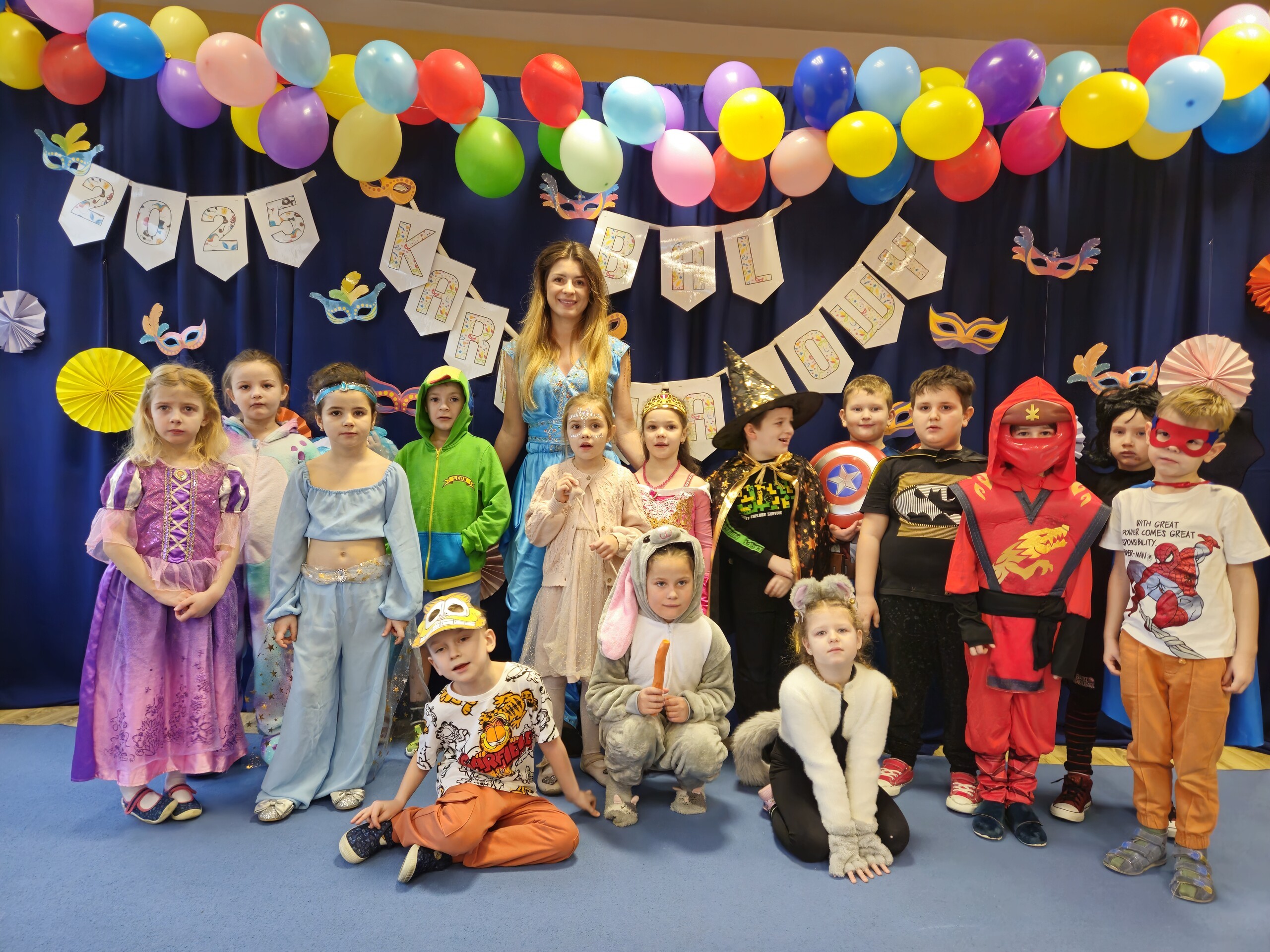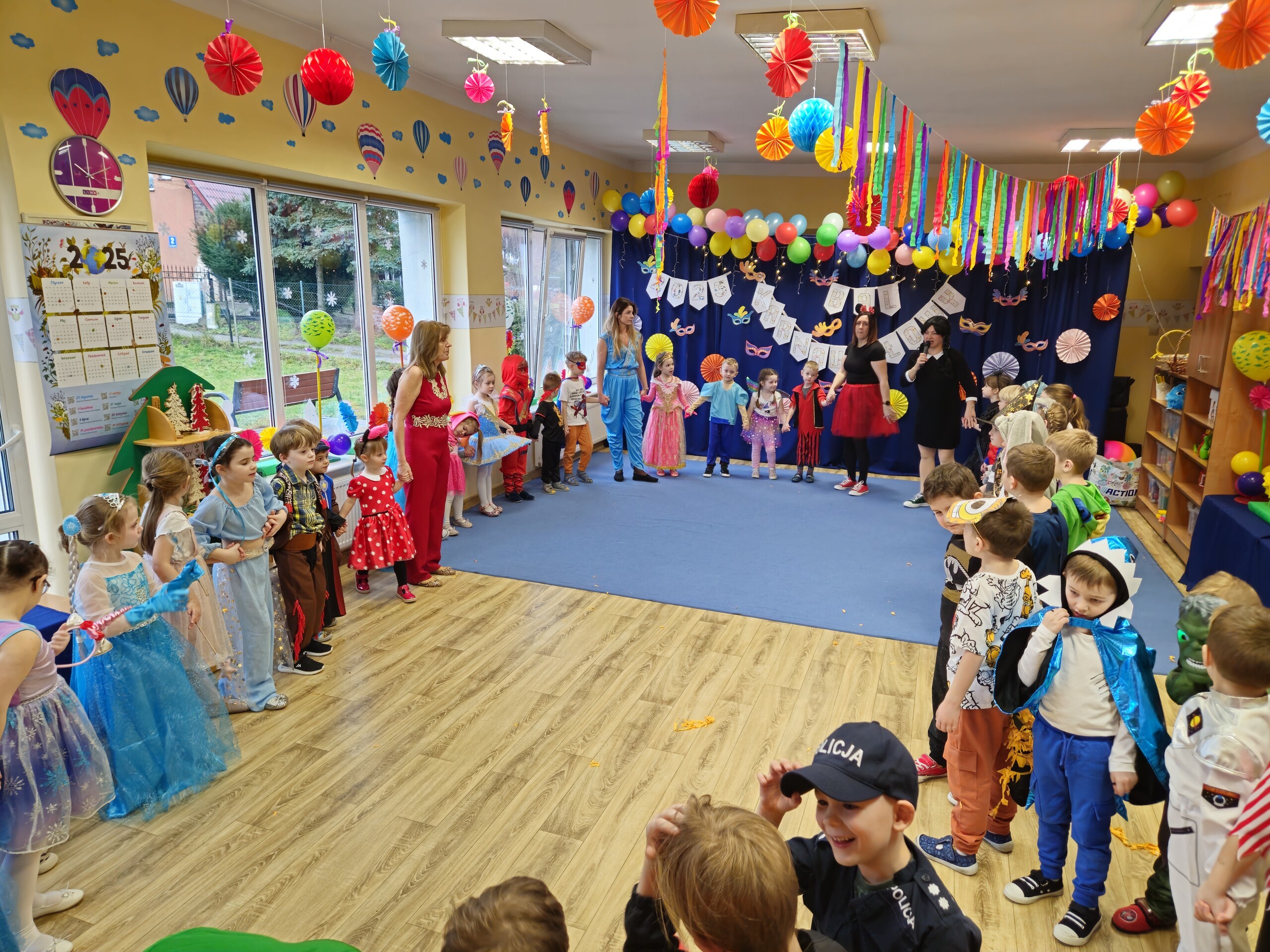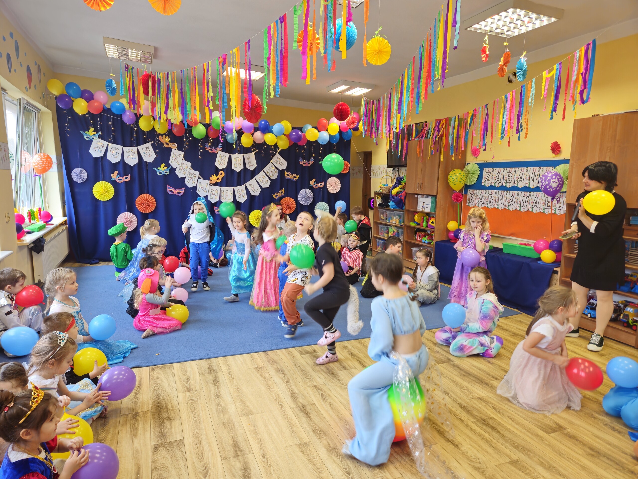Dnia 31 stycznia 2025 roku w naszym przedszkolu odbył się niezwykły Bal Karnawałowy, który na długo pozostanie w pamięci wszystkich uczestników. Bal poprowadziła przebojowa animatorka, pani Daria, która zadbała o to, by każda chwila była pełna radości i uśmiechu.