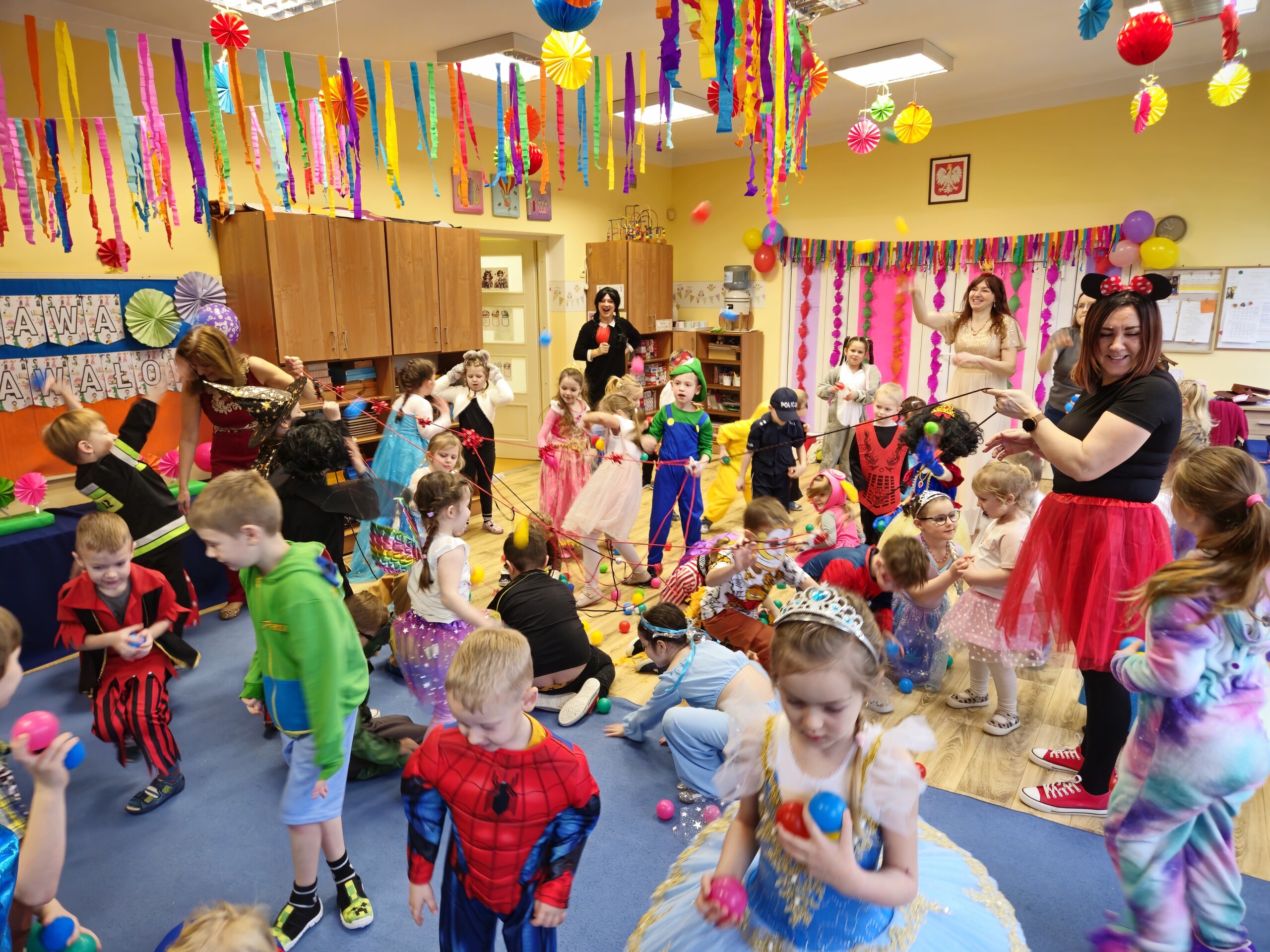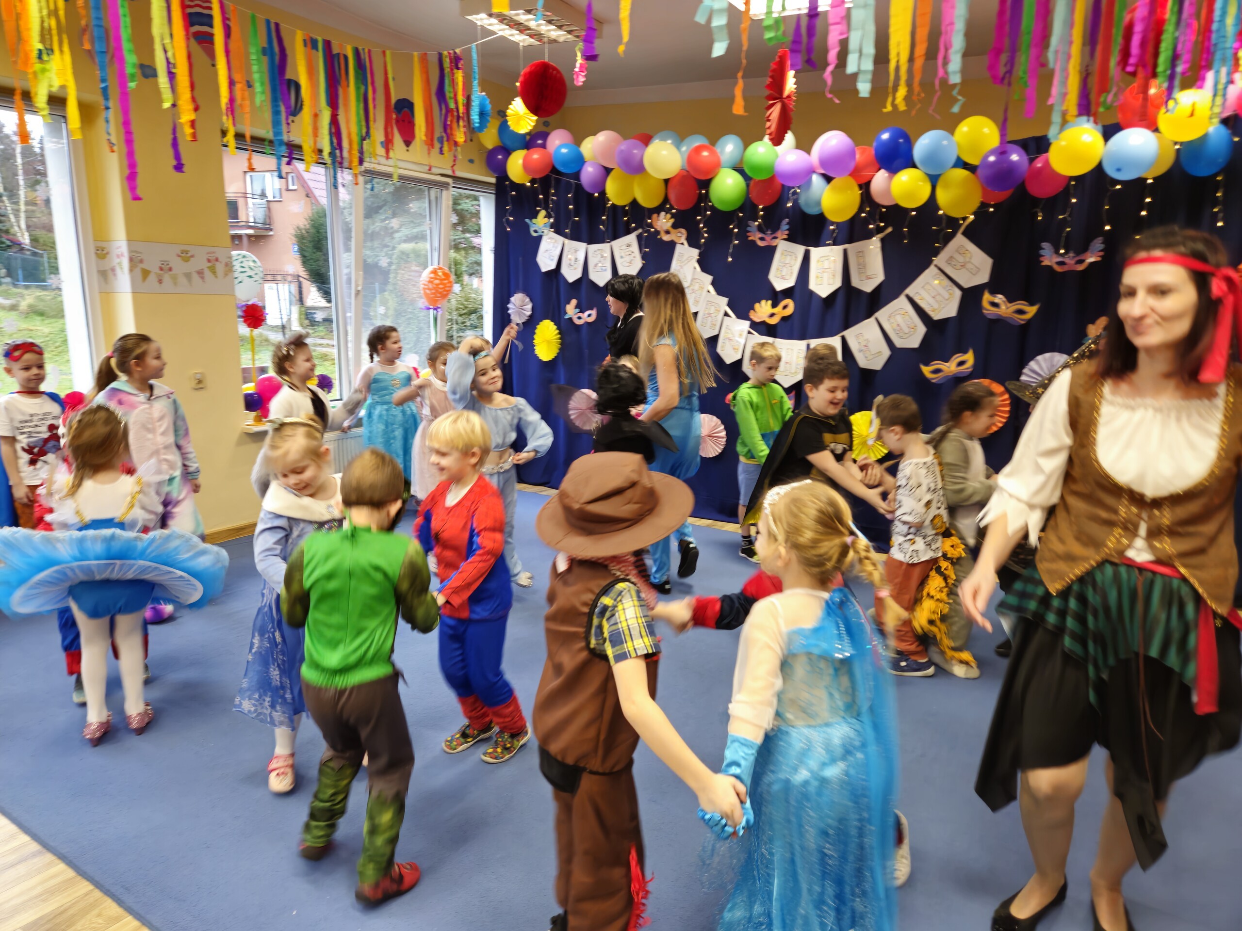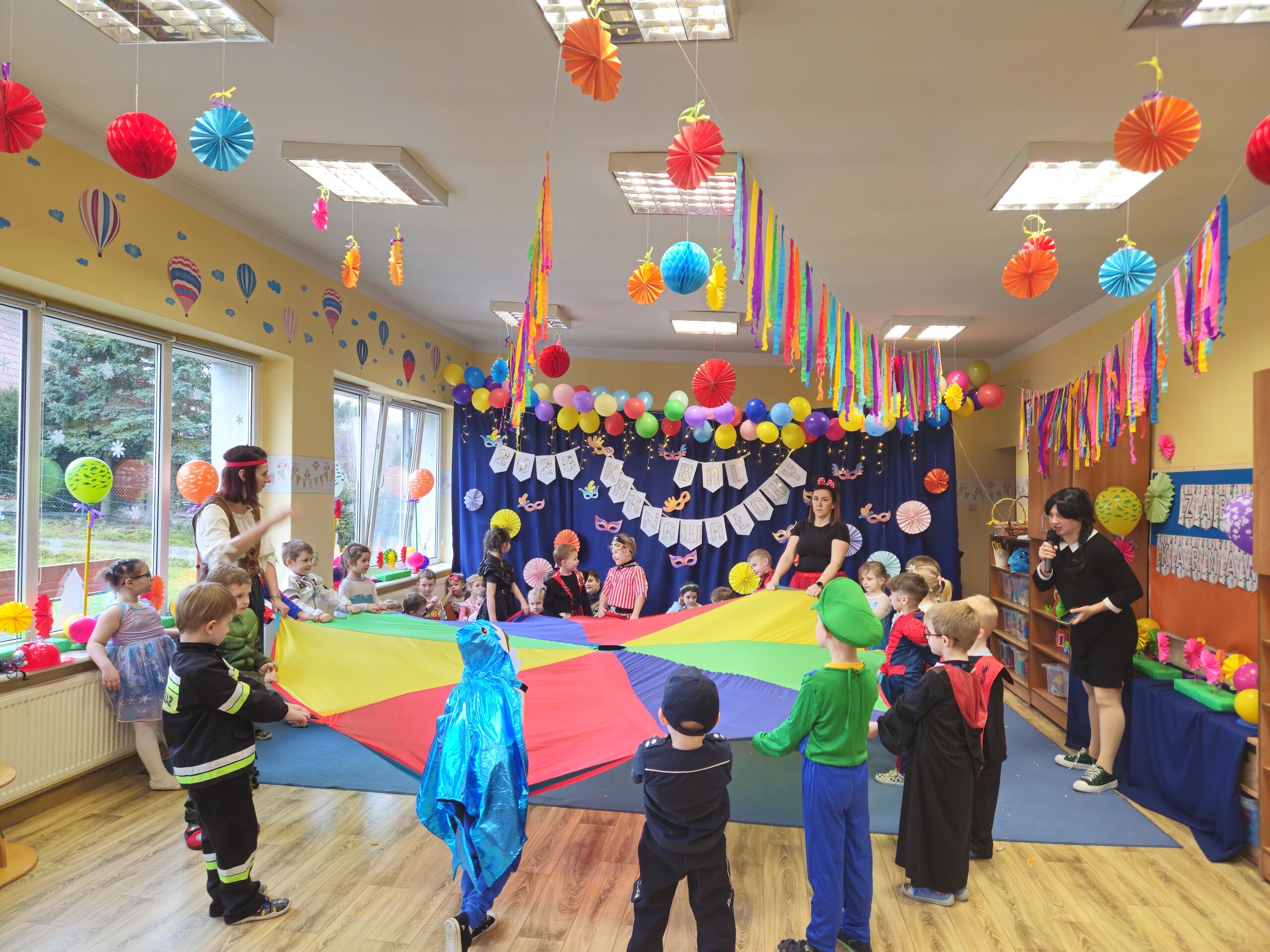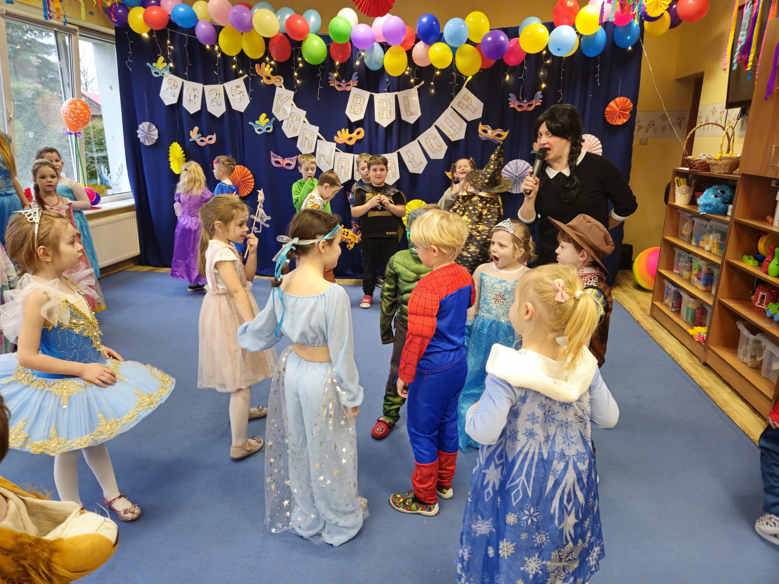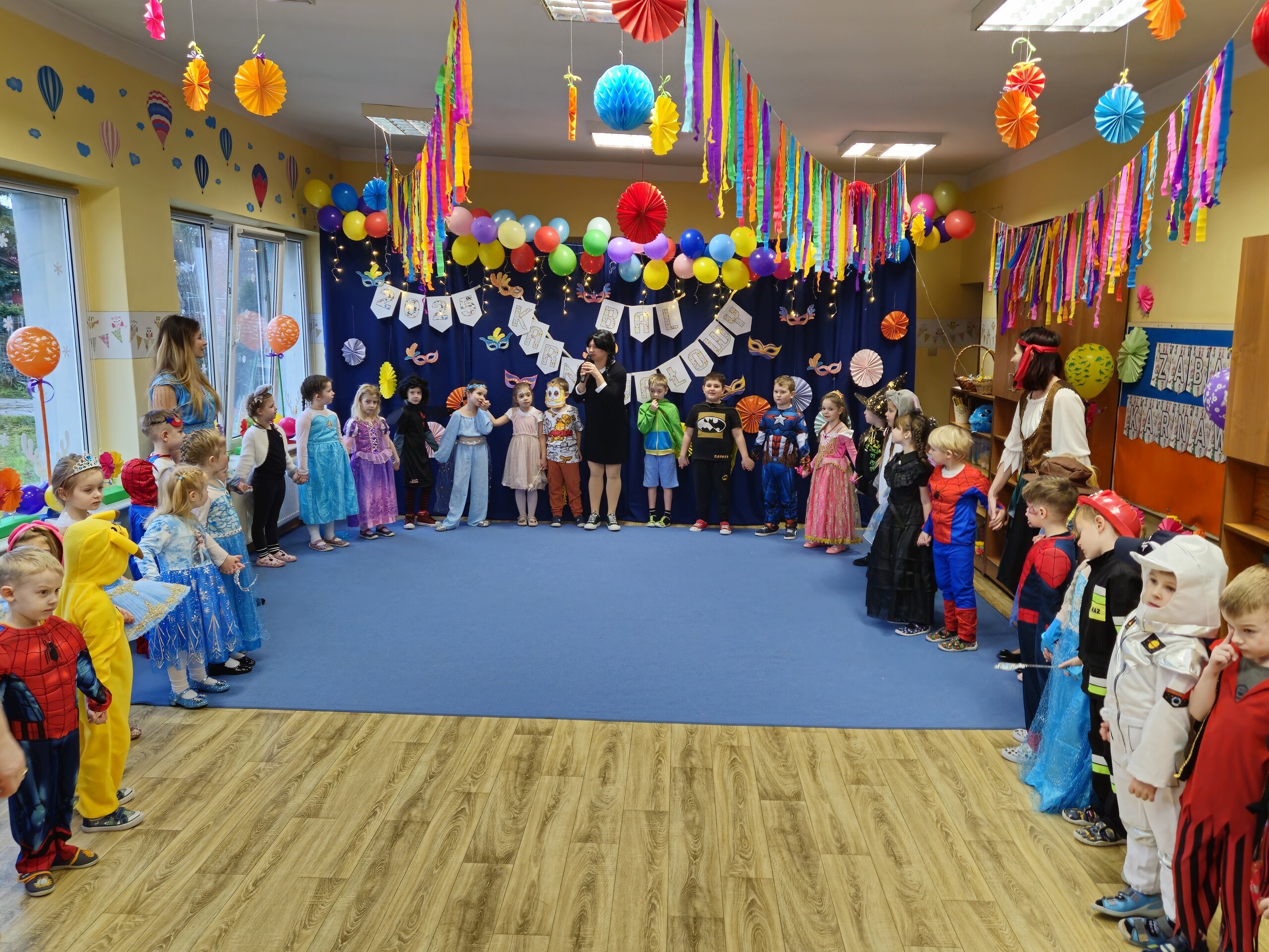 Dnia 31 stycznia 2025 roku w naszym przedszkolu odbył się niezwykły Bal Karnawałowy, który na długo pozostanie w pamięci wszystkich uczestników. Bal poprowadziła przebojowa animatorka, pani Daria, która zadbała o to, by każda chwila była pełna radości i uśmiechu.