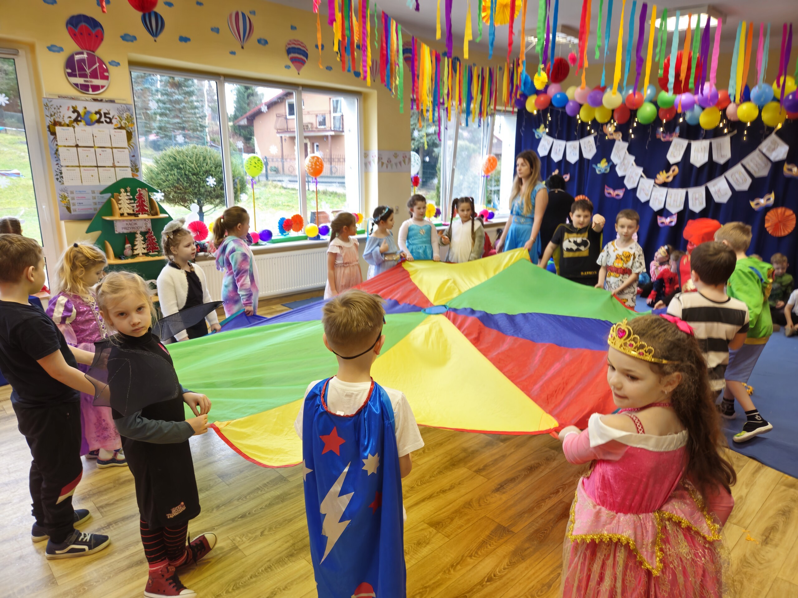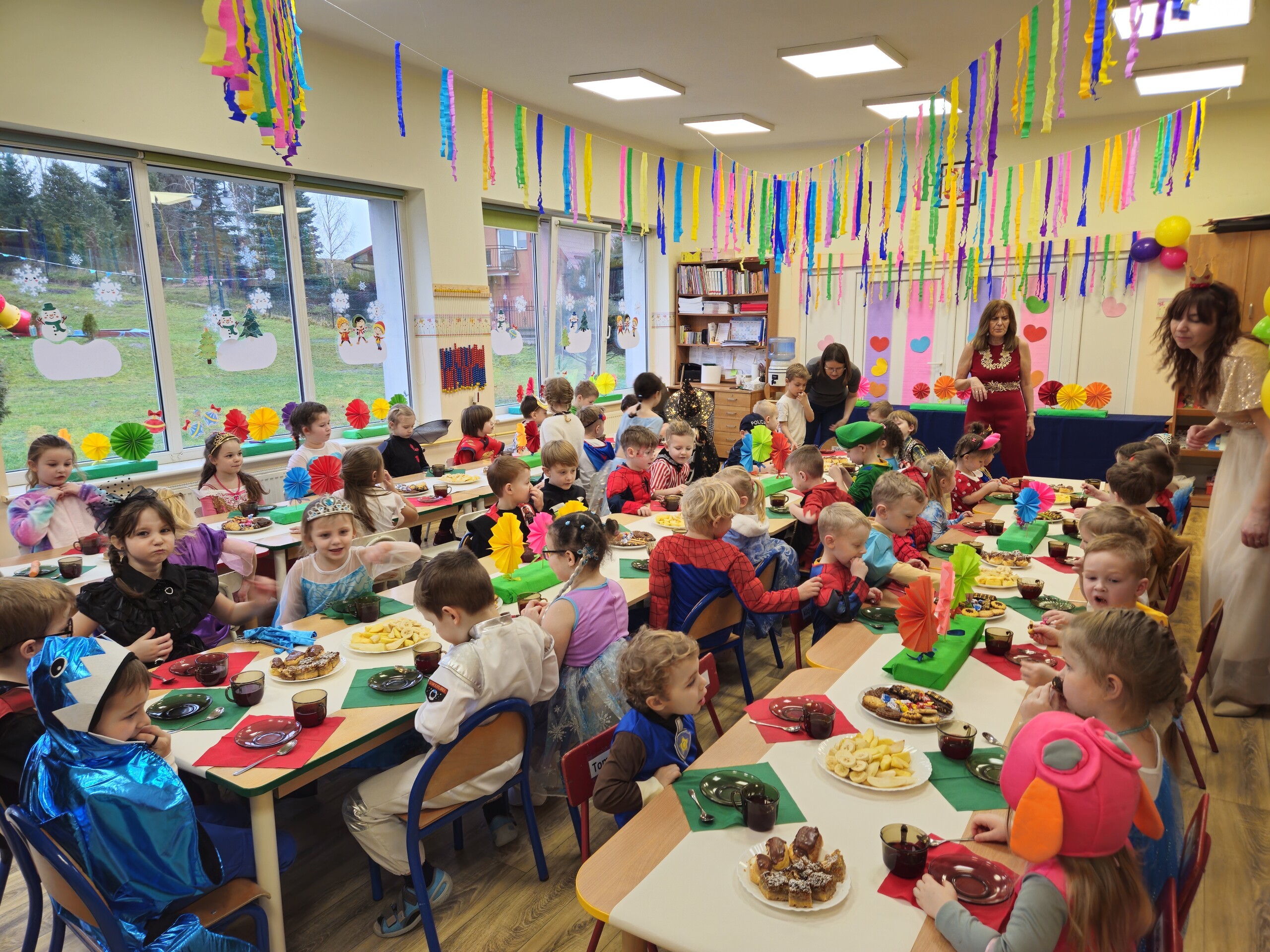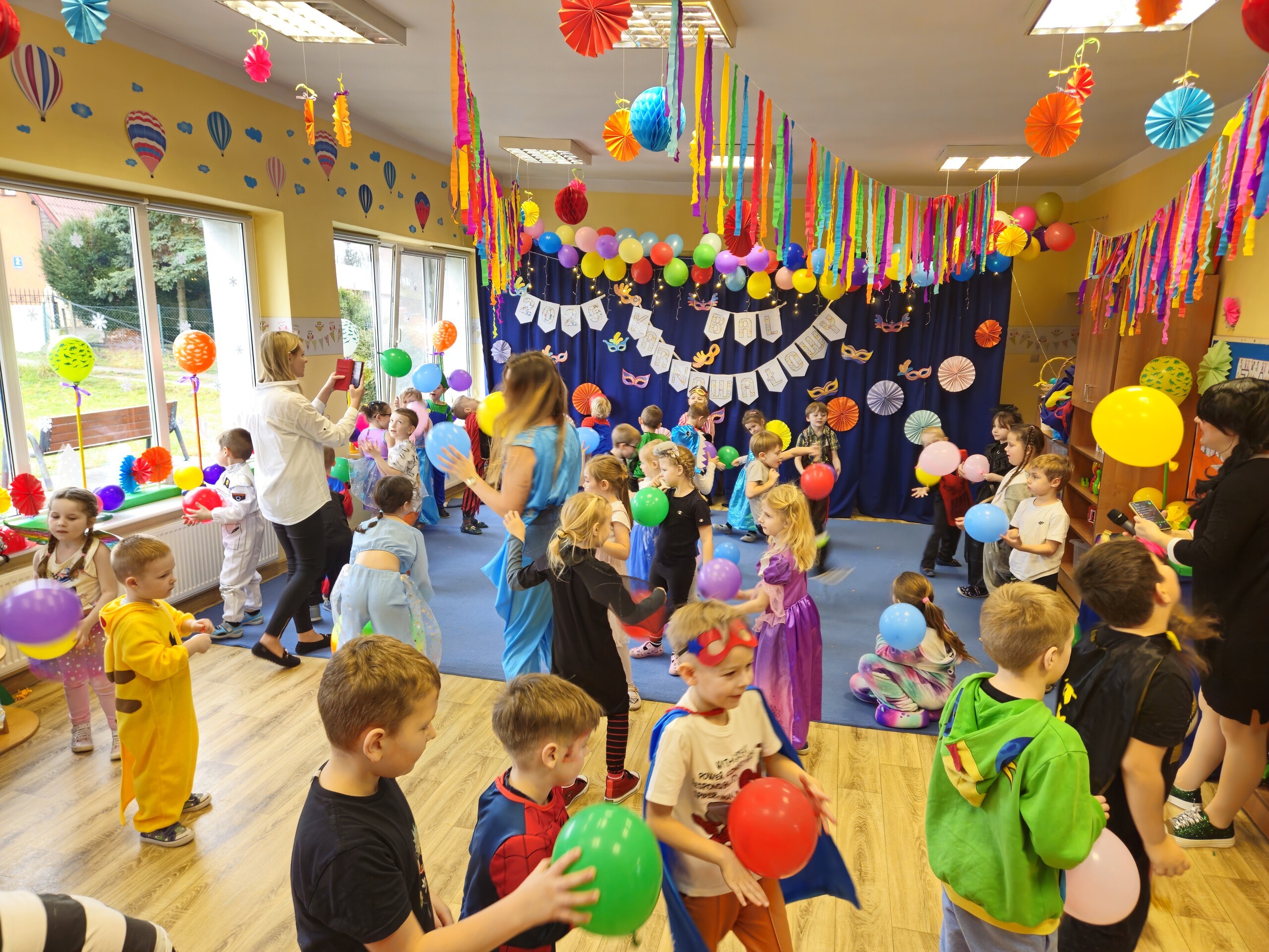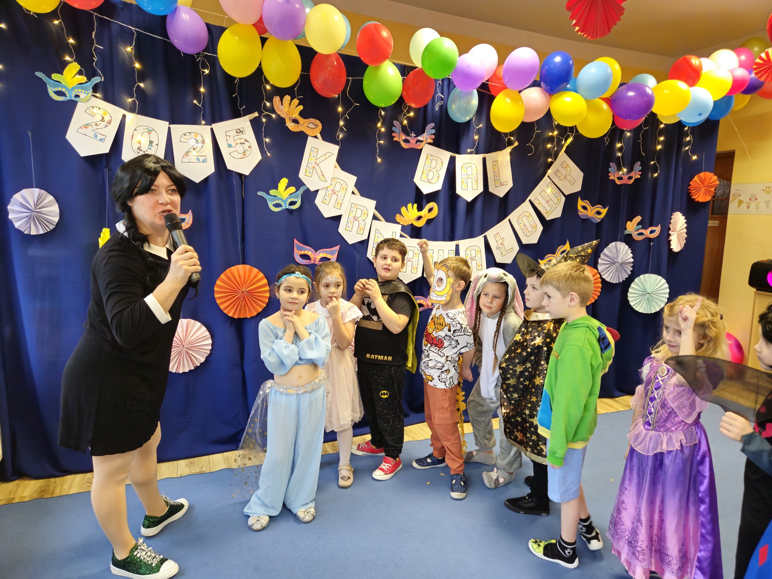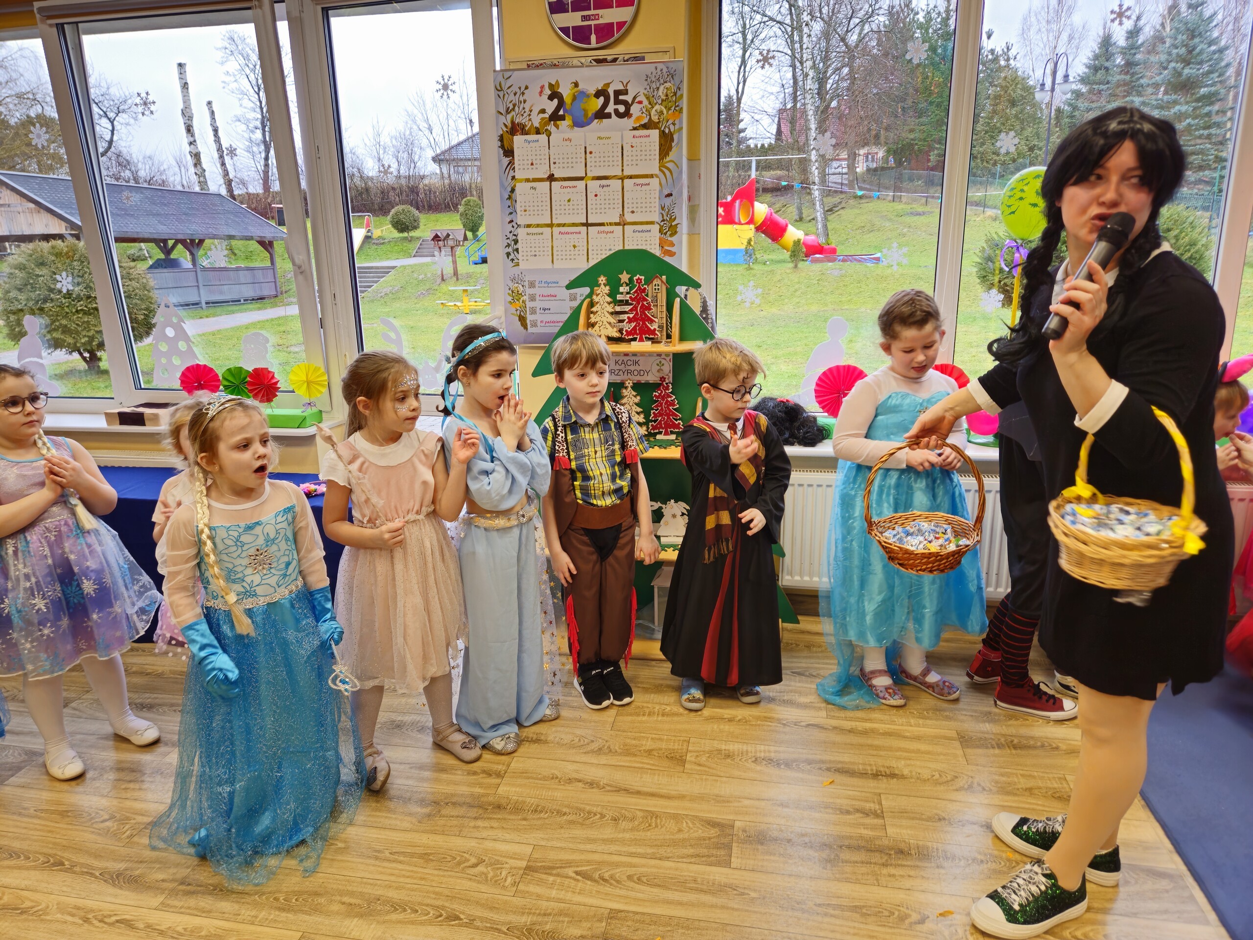 Dnia 31 stycznia 2025 roku w naszym przedszkolu odbył się niezwykły Bal Karnawałowy, który na długo pozostanie w pamięci wszystkich uczestników. Bal poprowadziła przebojowa animatorka, pani Daria, która zadbała o to, by każda chwila była pełna radości i uśmiechu.