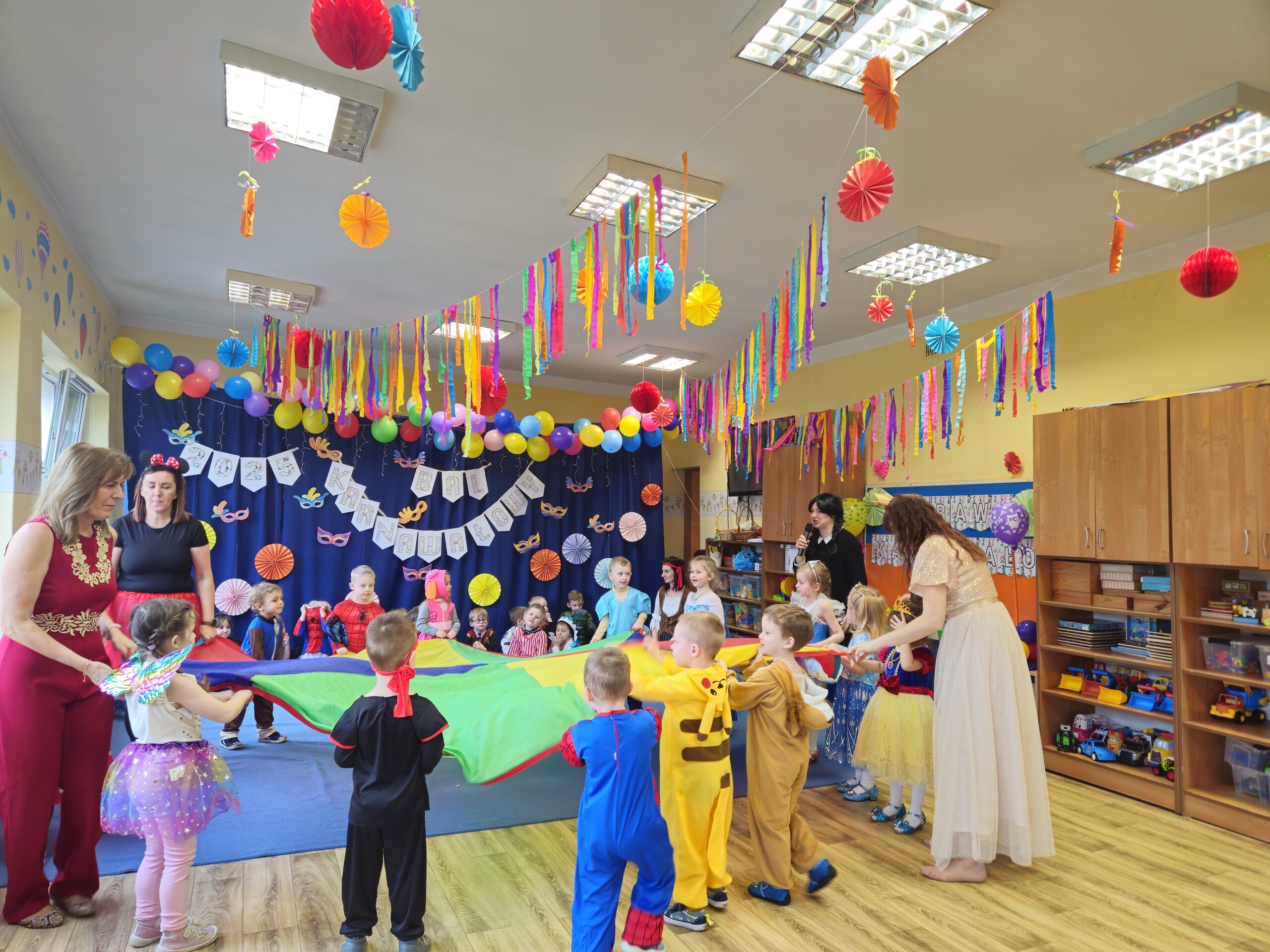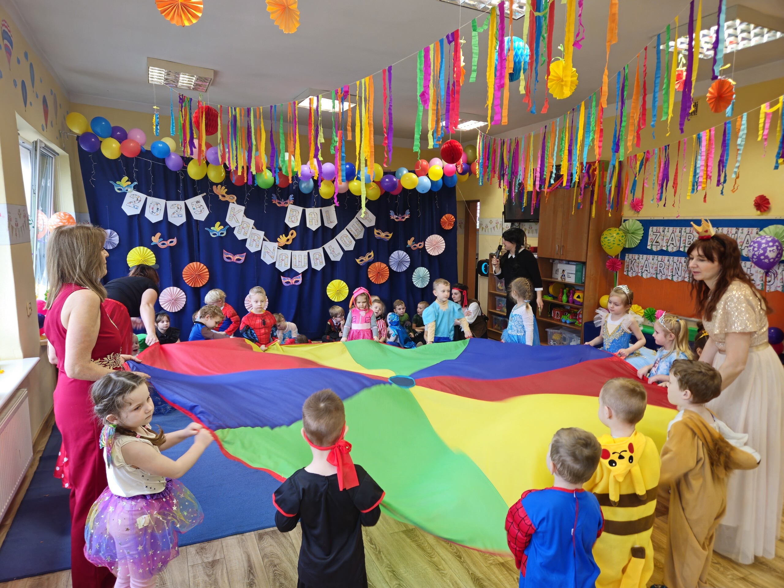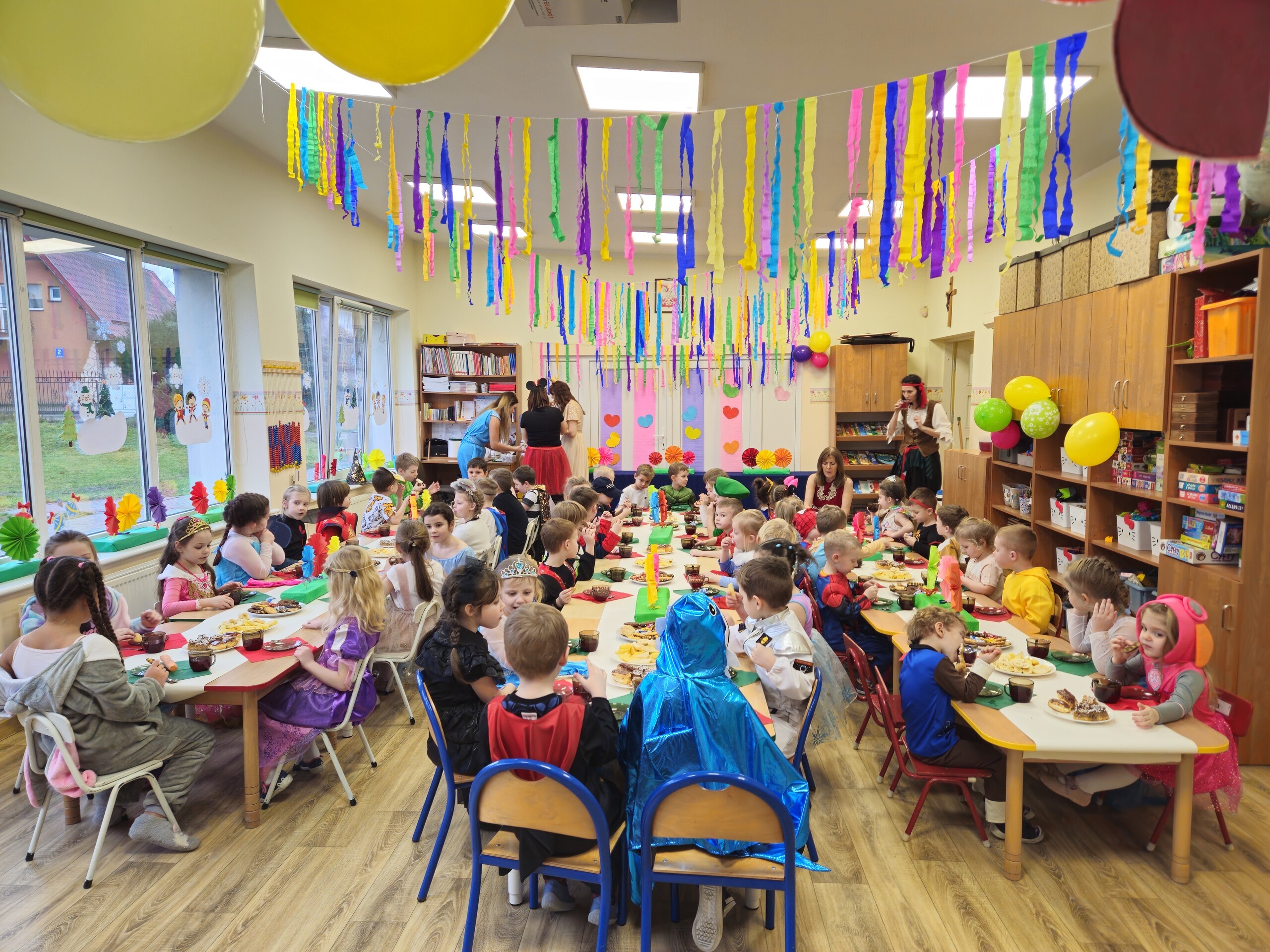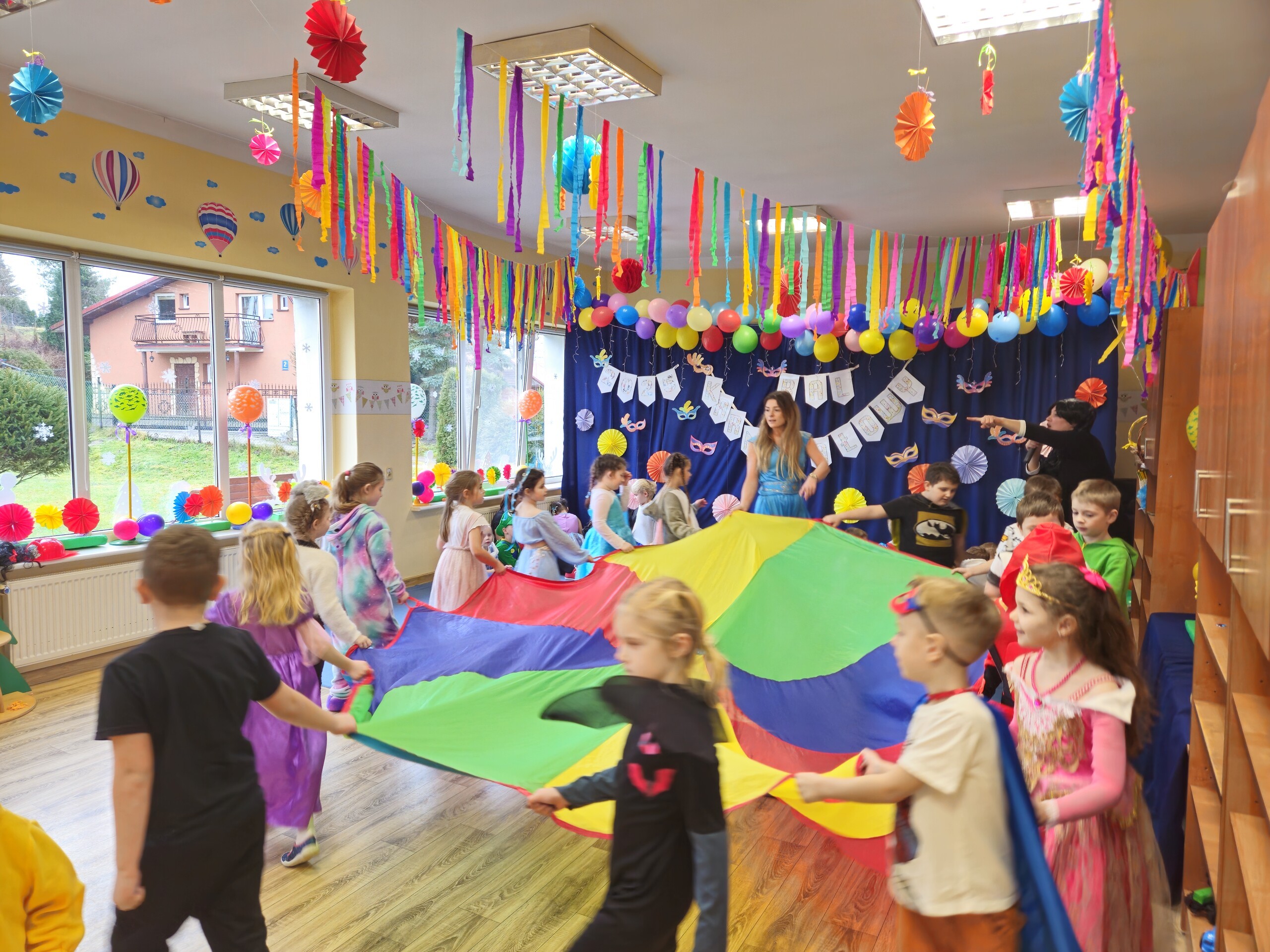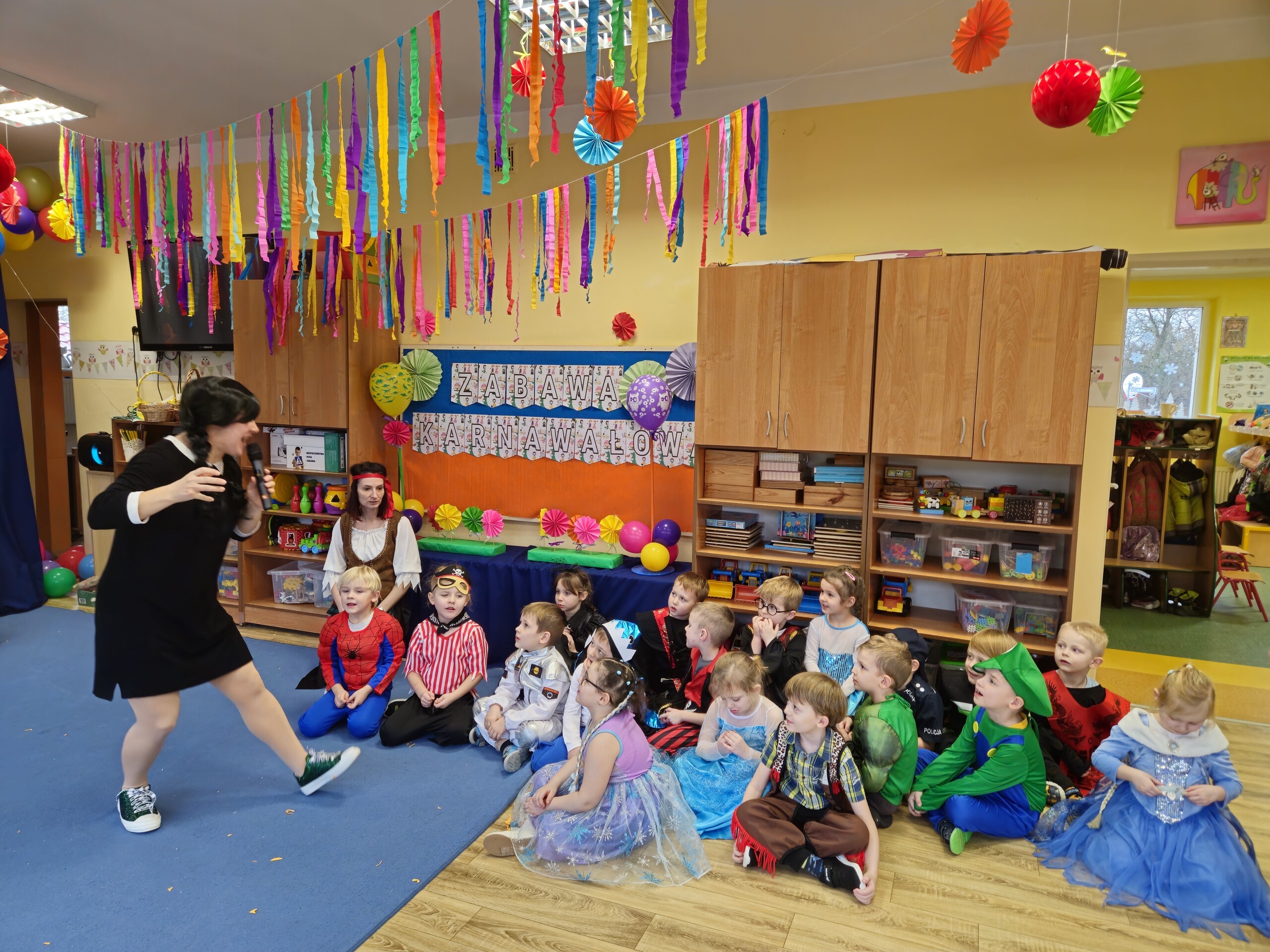 Dnia 31 stycznia 2025 roku w naszym przedszkolu odbył się niezwykły Bal Karnawałowy, który na długo pozostanie w pamięci wszystkich uczestników. Bal poprowadziła przebojowa animatorka, pani Daria, która zadbała o to, by każda chwila była pełna radości i uśmiechu.
