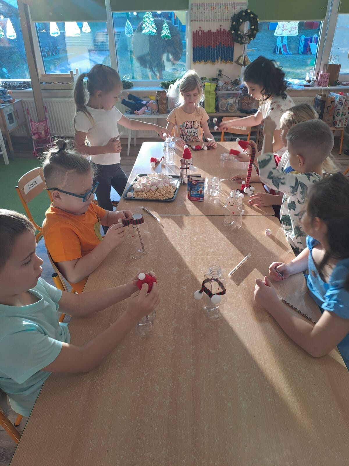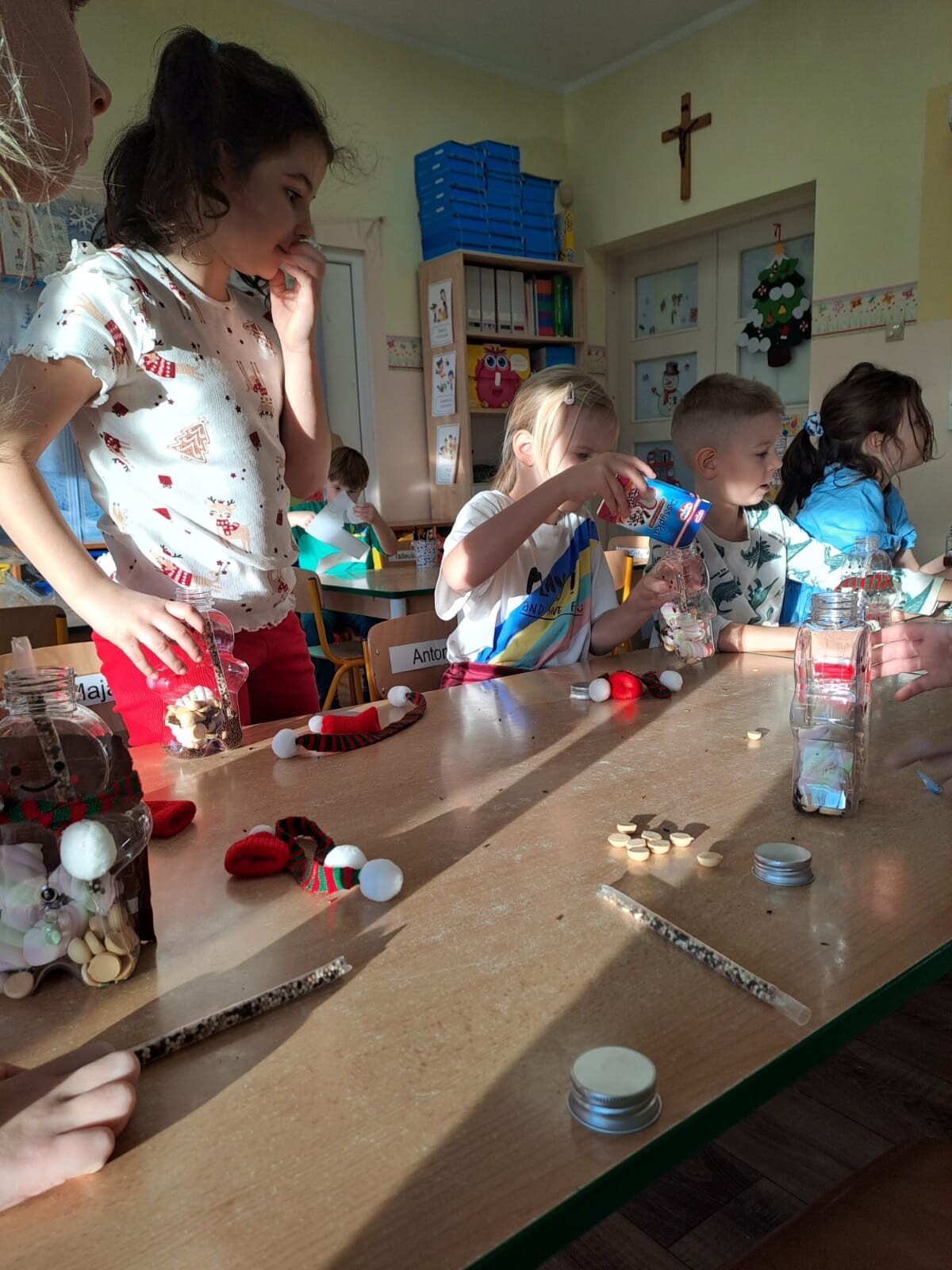 Z radością informujemy, że nasze starszaki brały udział w warsztatach kreatywnych, podczas których miały okazję stworzyć piękne, świąteczne kartki z życzeniami. Dzieci wykazały się niezwykłą pomysłowością i zaangażowaniem, co zaowocowało wspaniałymi dziełami, które będzie można podziwiać na nadchodzącym kiermaszu świątecznym.