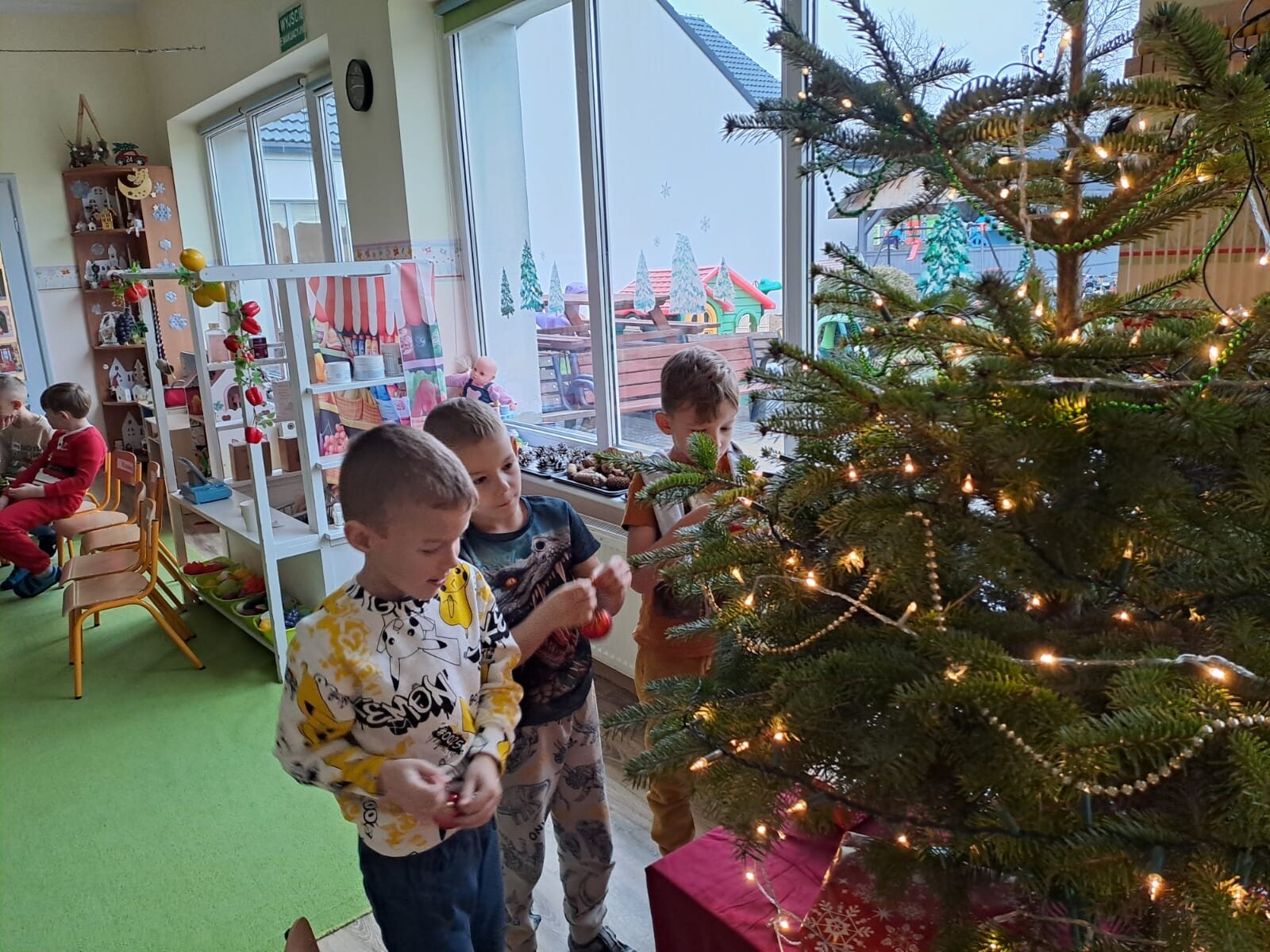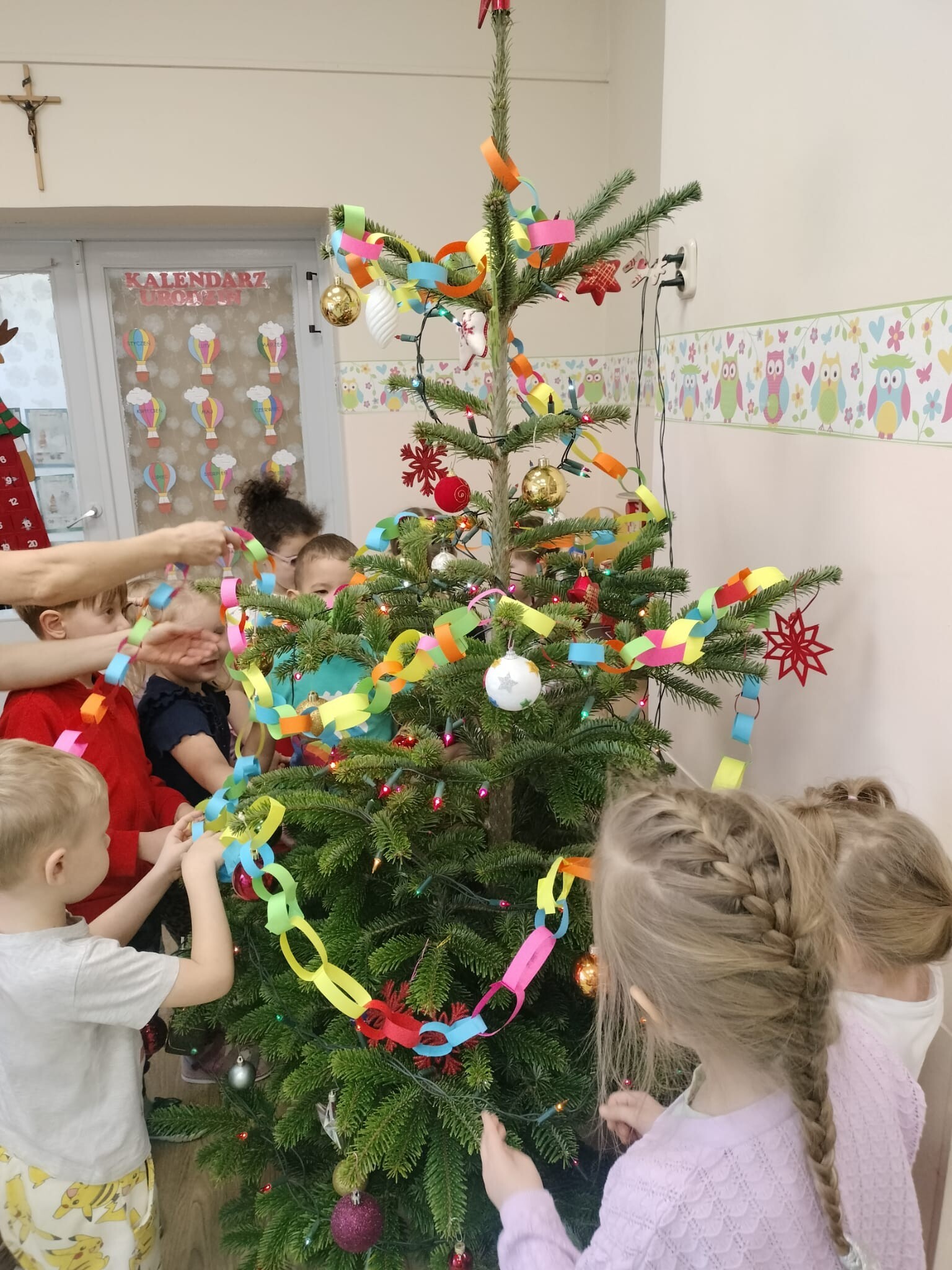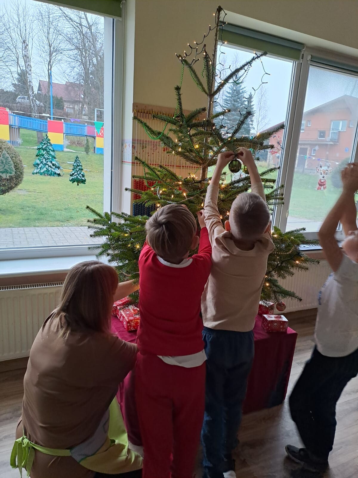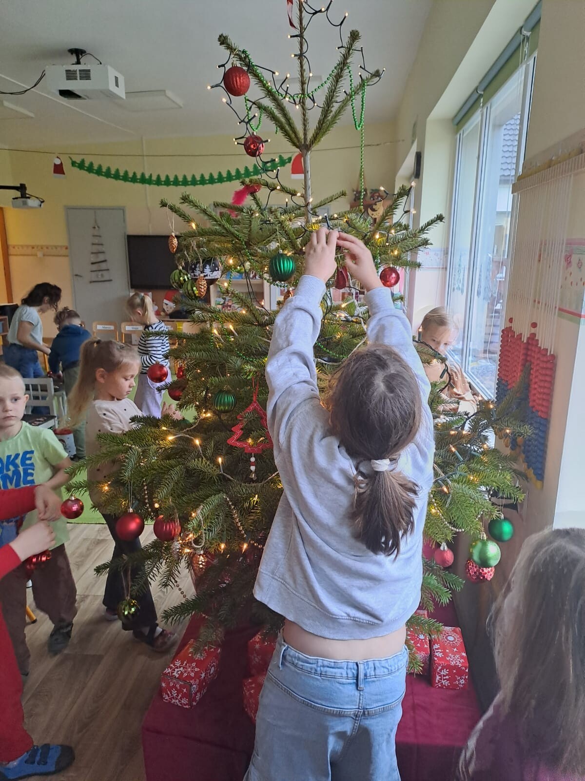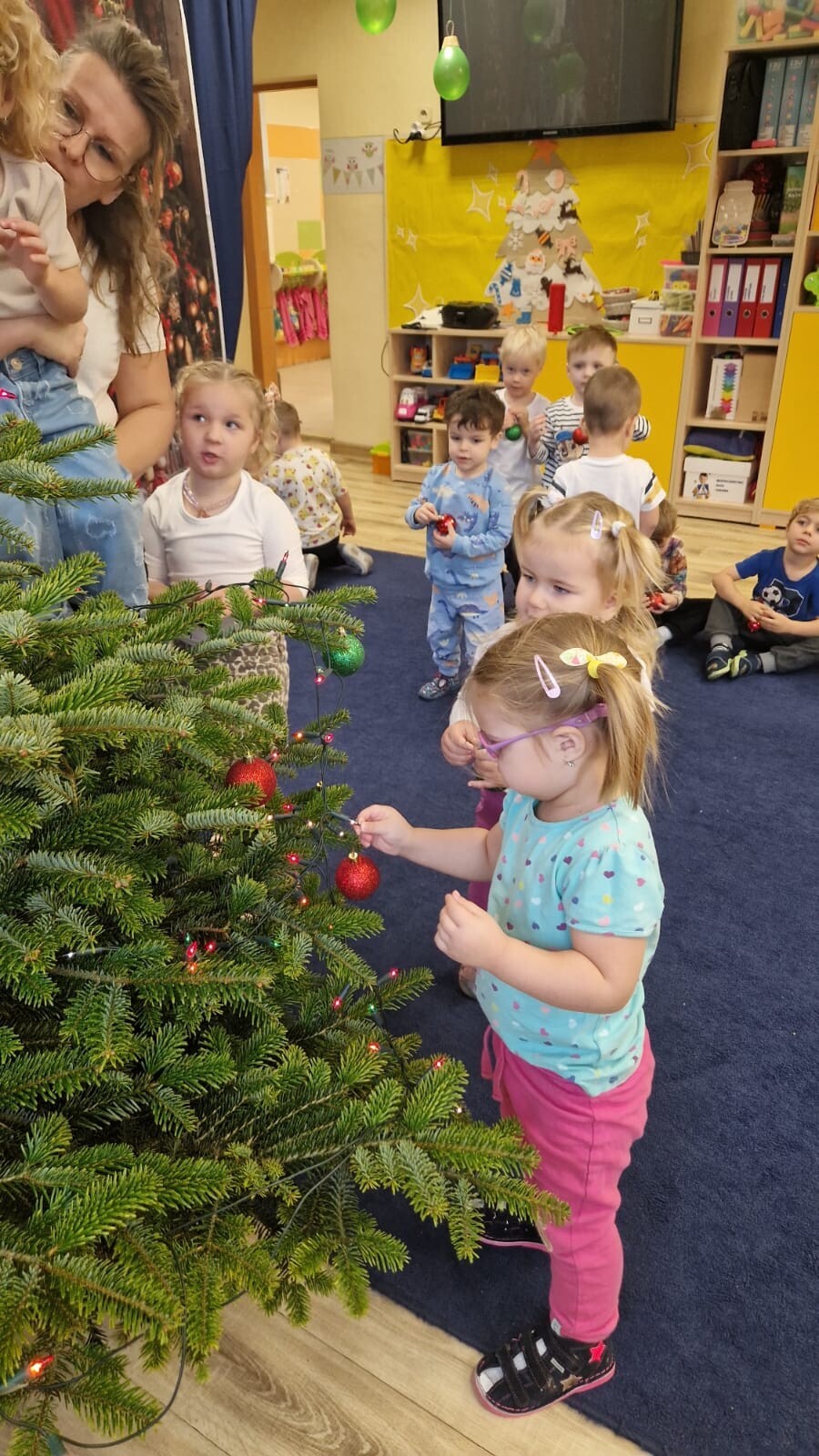 Wspólne dekorowanie było nie tylko świetną zabawą, ale także okazją do rozwijania kreatywności, współpracy i budowania świątecznej atmosfery. Teraz choinki pięknie zdobią nasze przedszkolne sale, a dzieci z dumą podziwiają efekty swojej pracy.