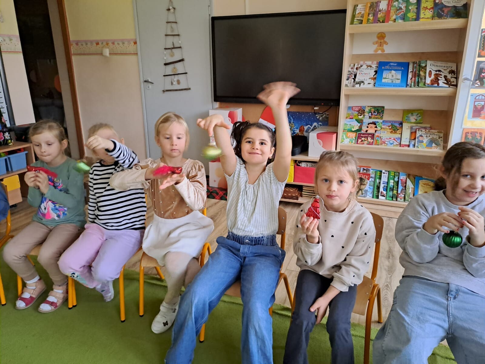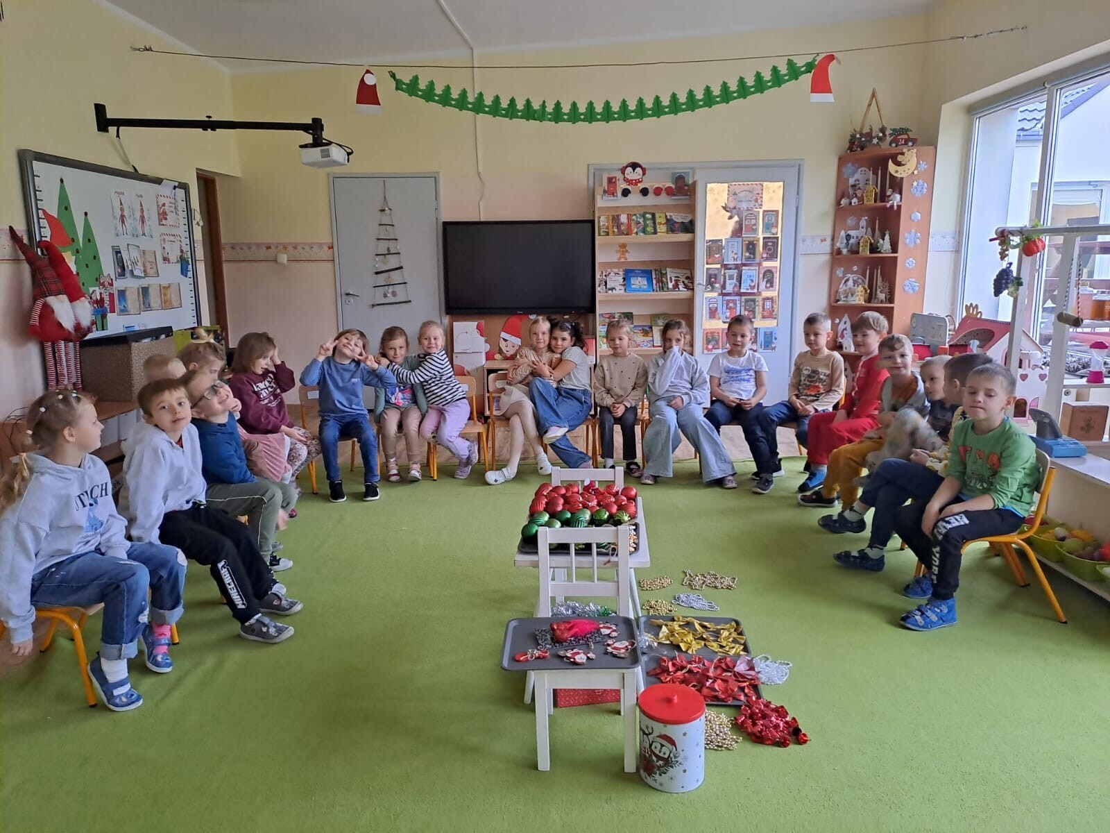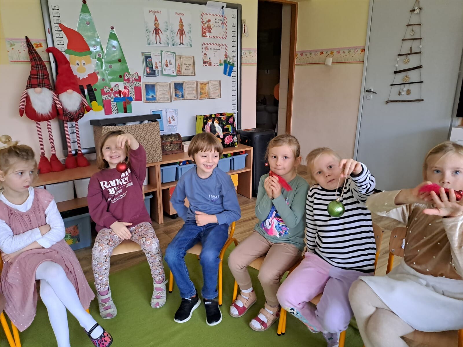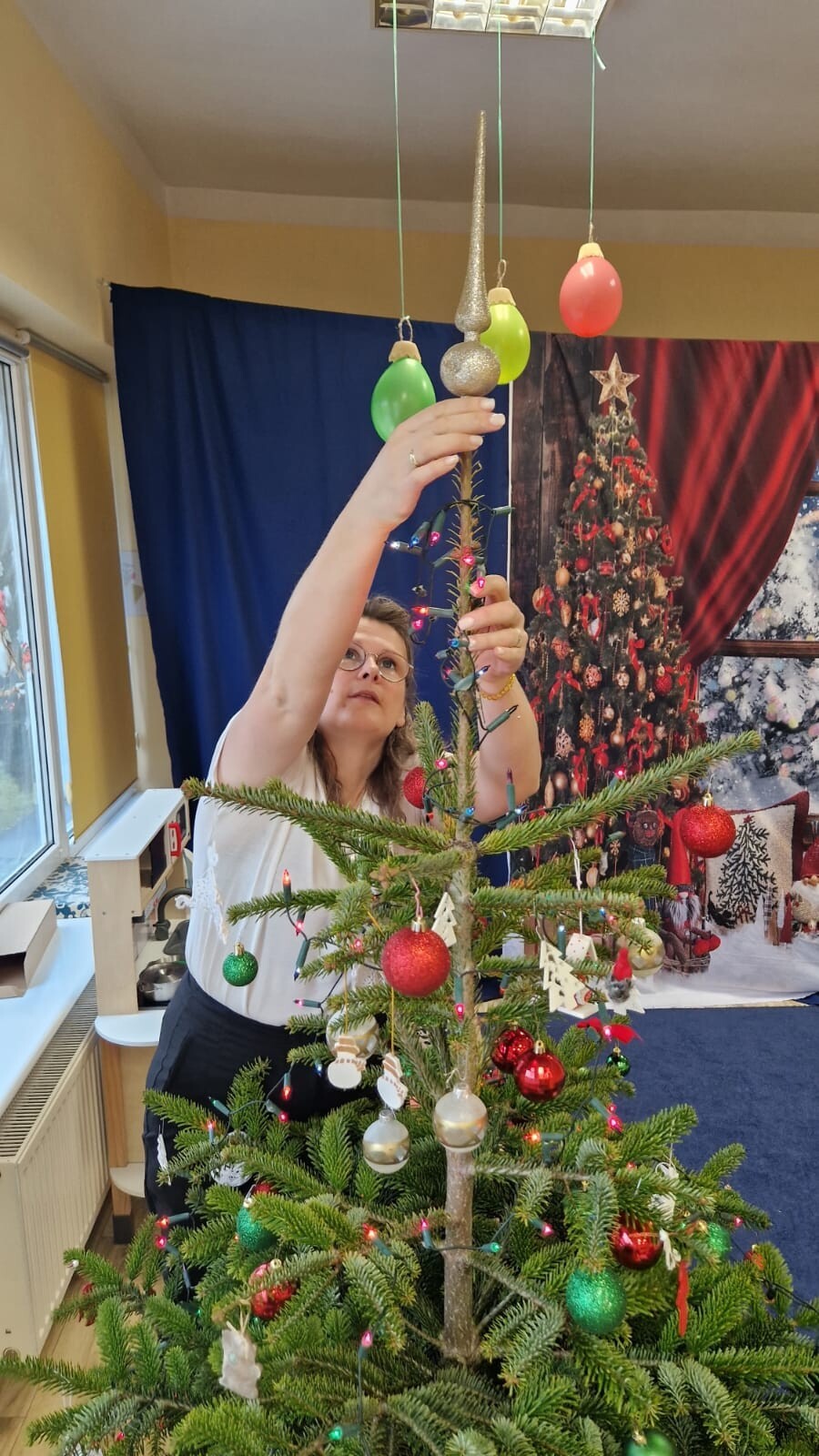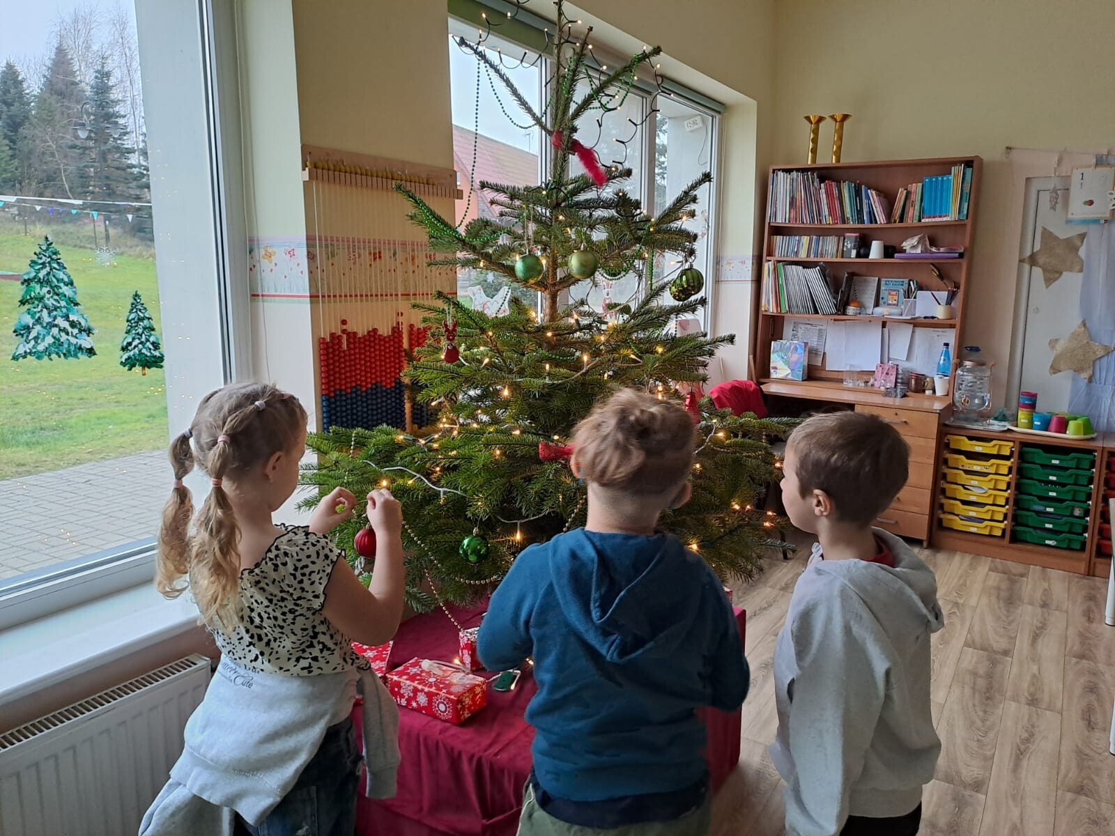 Wspólne dekorowanie było nie tylko świetną zabawą, ale także okazją do rozwijania kreatywności, współpracy i budowania świątecznej atmosfery. Teraz choinki pięknie zdobią nasze przedszkolne sale, a dzieci z dumą podziwiają efekty swojej pracy.