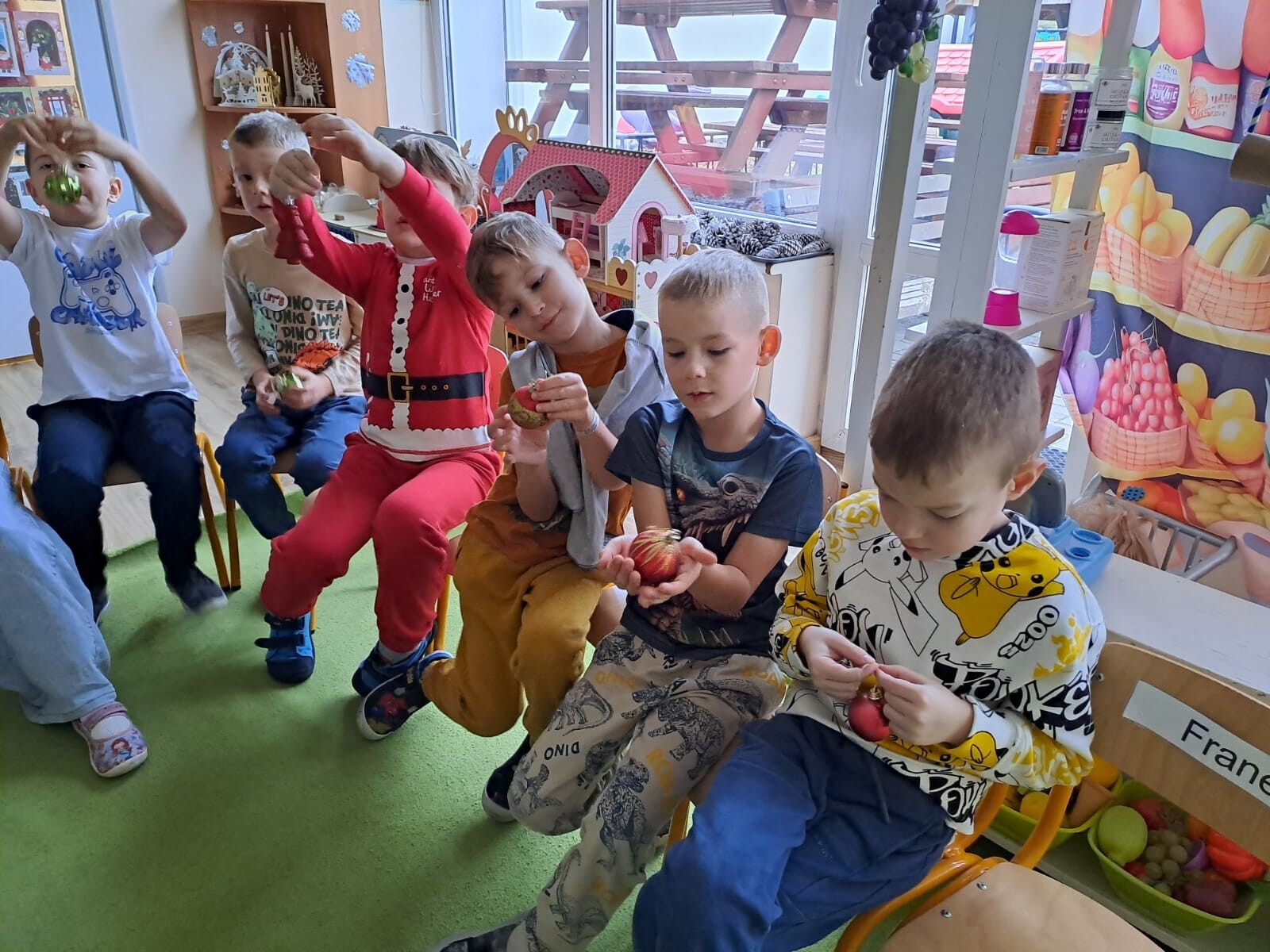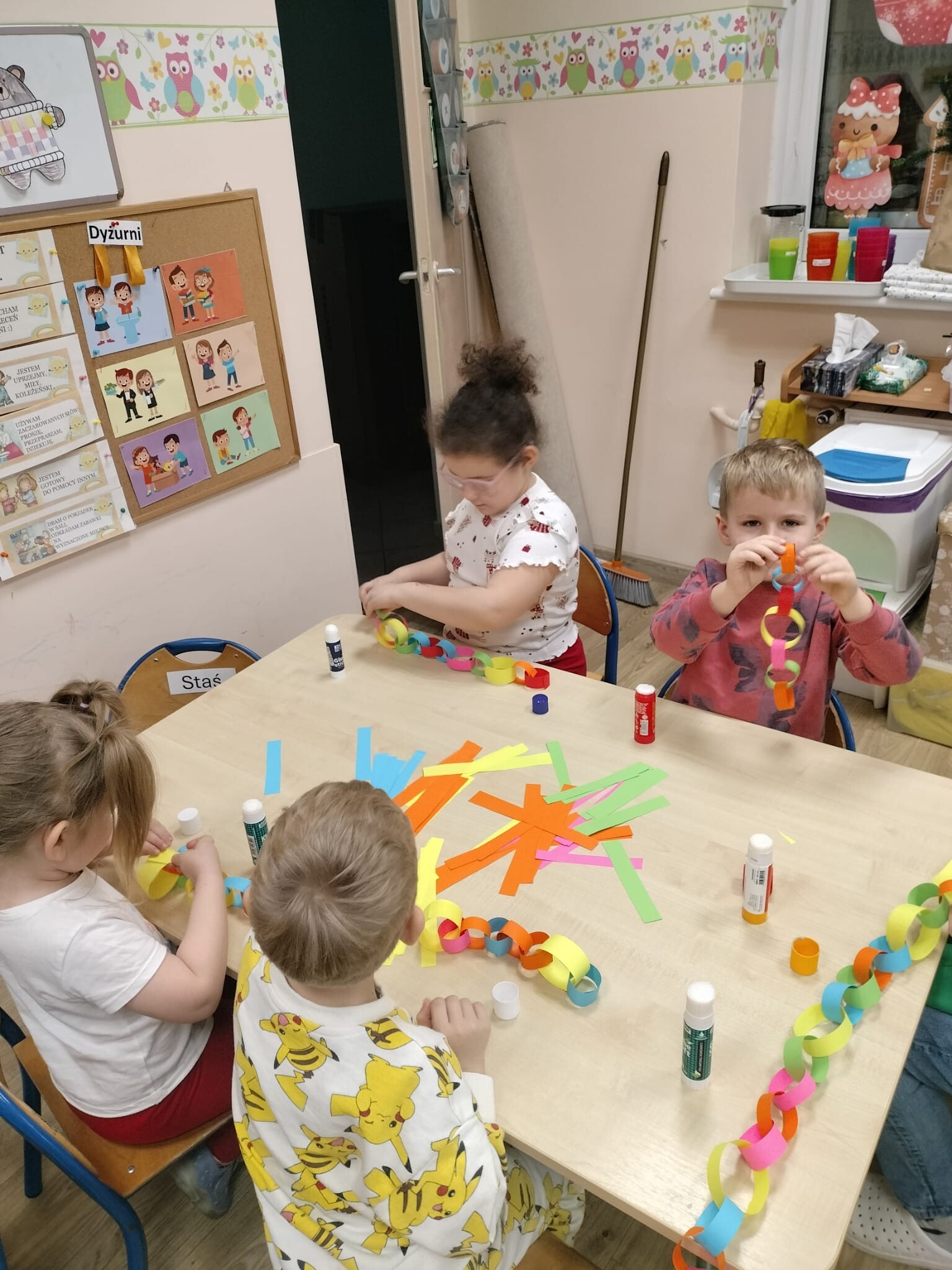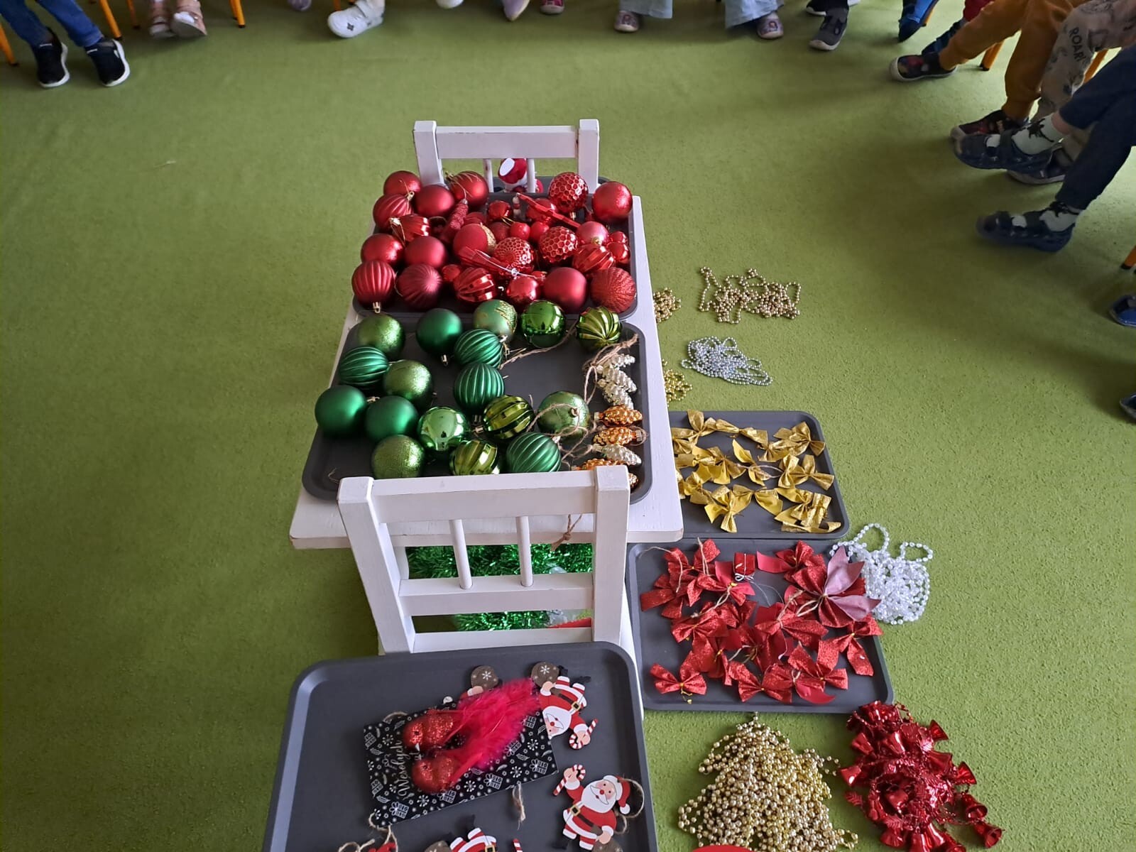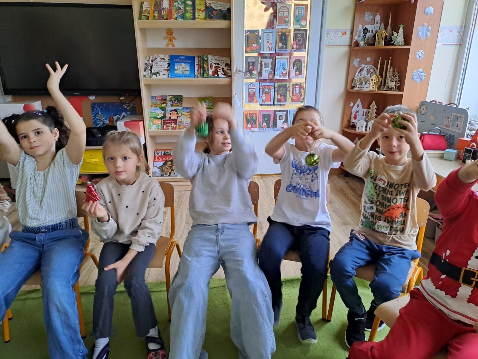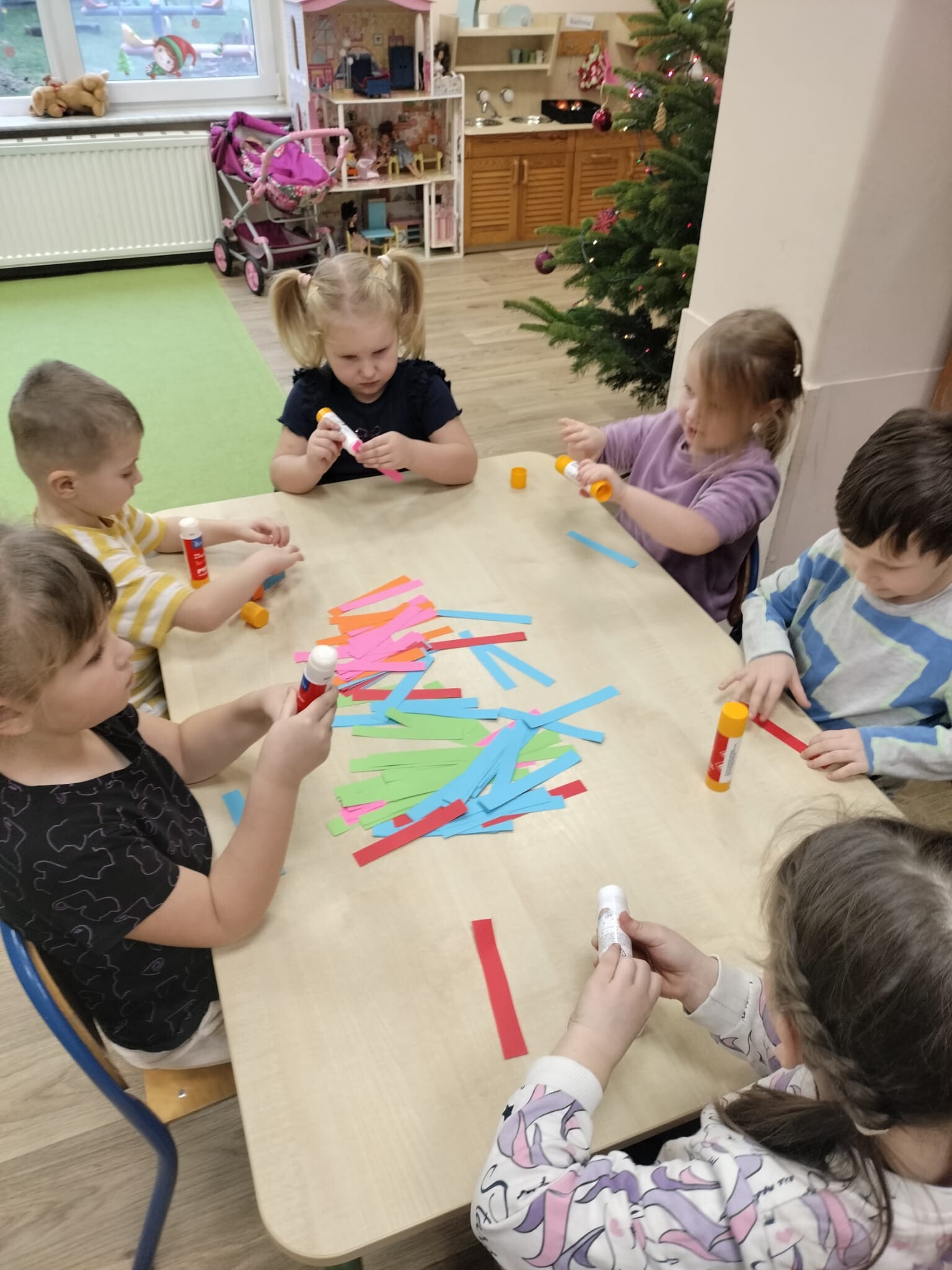 Wspólne dekorowanie było nie tylko świetną zabawą, ale także okazją do rozwijania kreatywności, współpracy i budowania świątecznej atmosfery. Teraz choinki pięknie zdobią nasze przedszkolne sale, a dzieci z dumą podziwiają efekty swojej pracy.