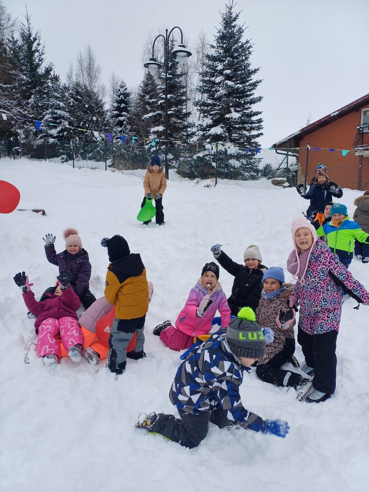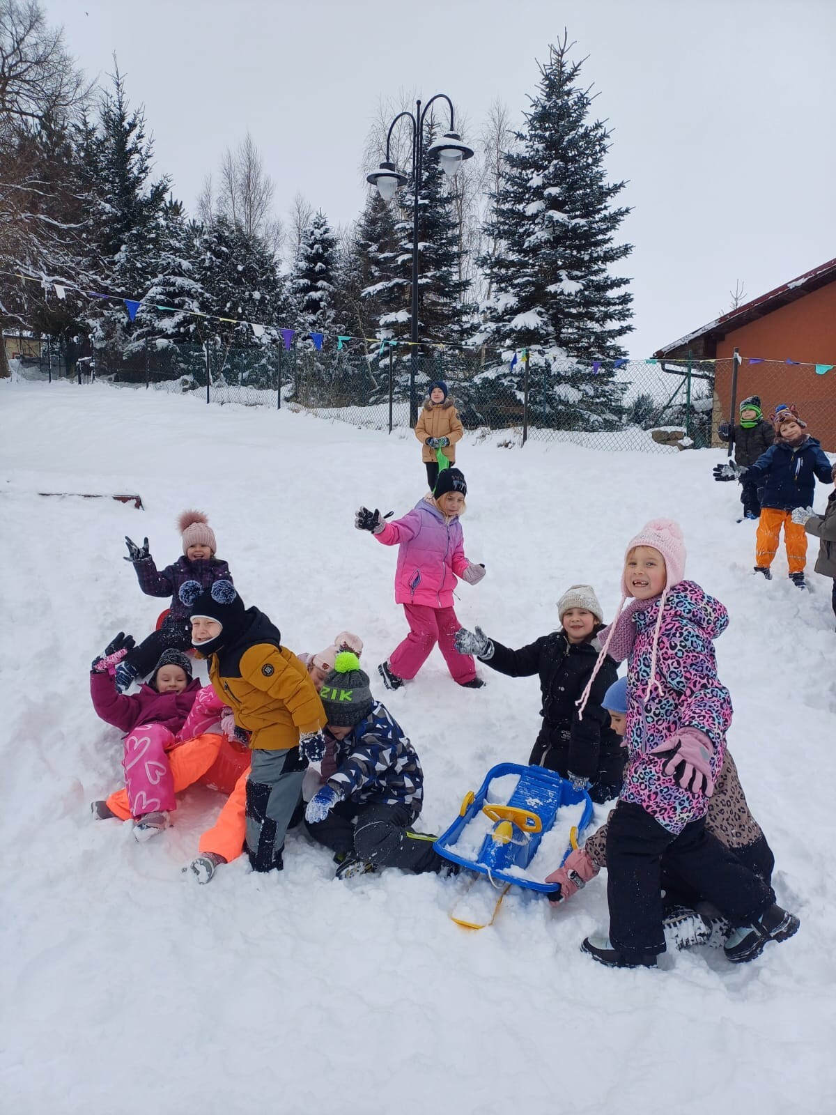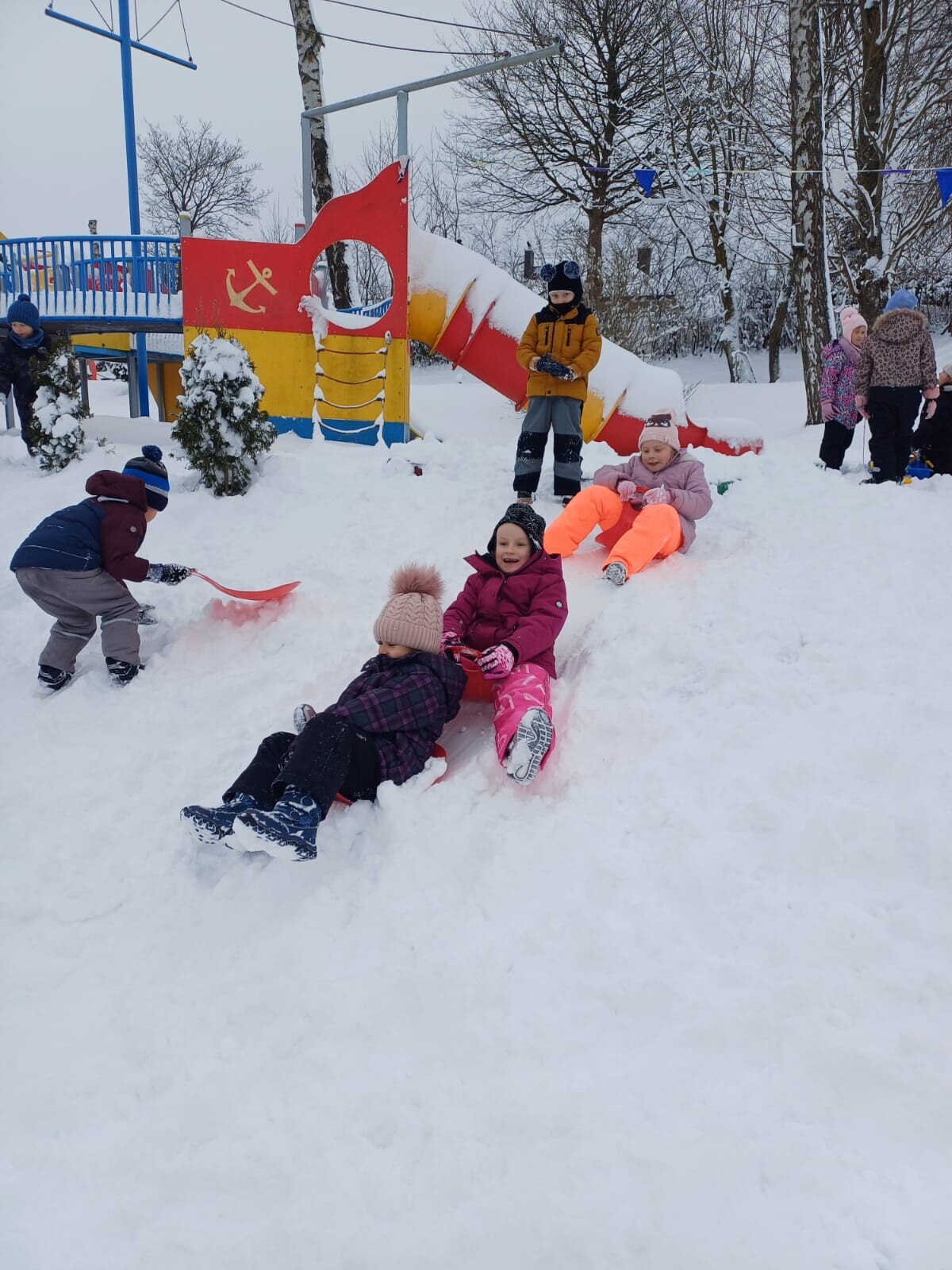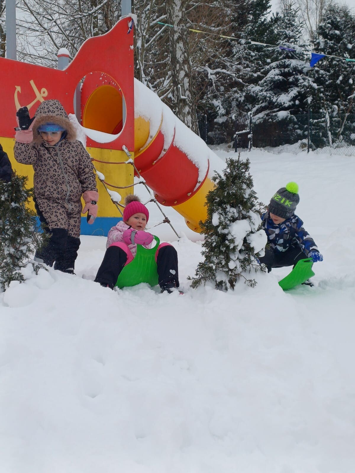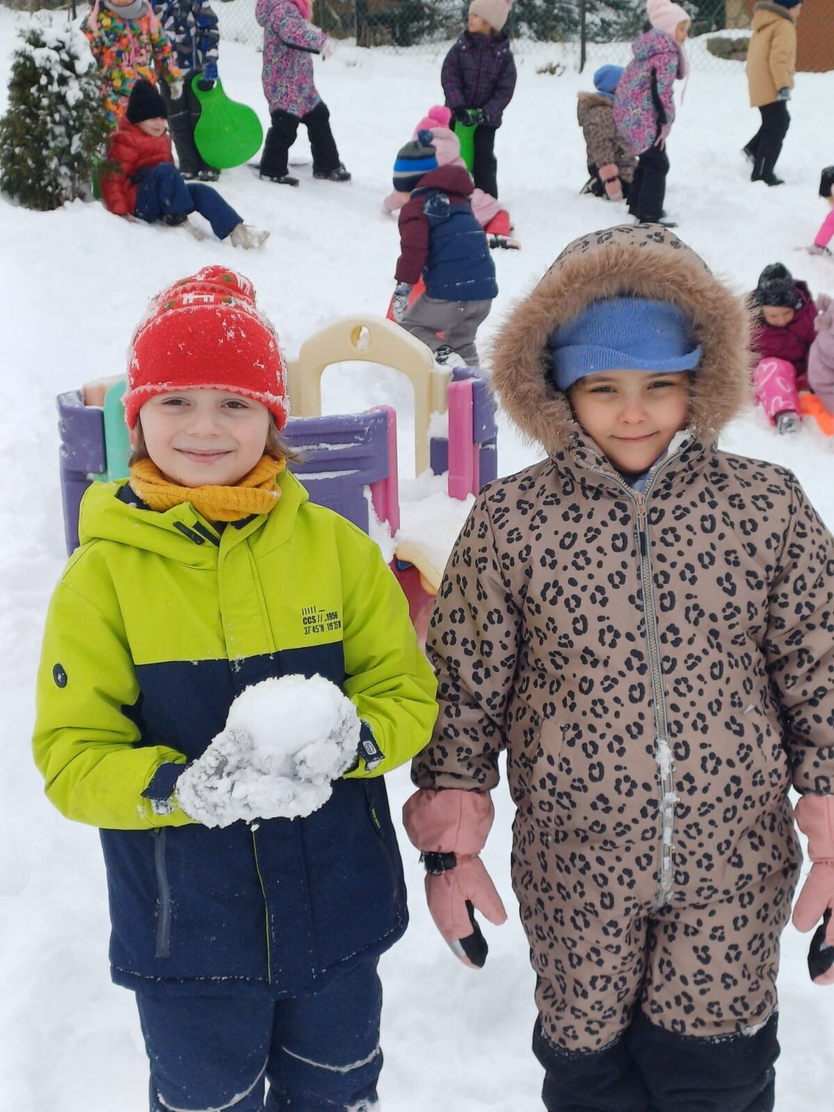 Dziś nasz przedszkolny ogród zamienił się w prawdziwą, zimową krainę radości. Dzieci z uśmiechami na twarzach korzystały z uroków zimy.