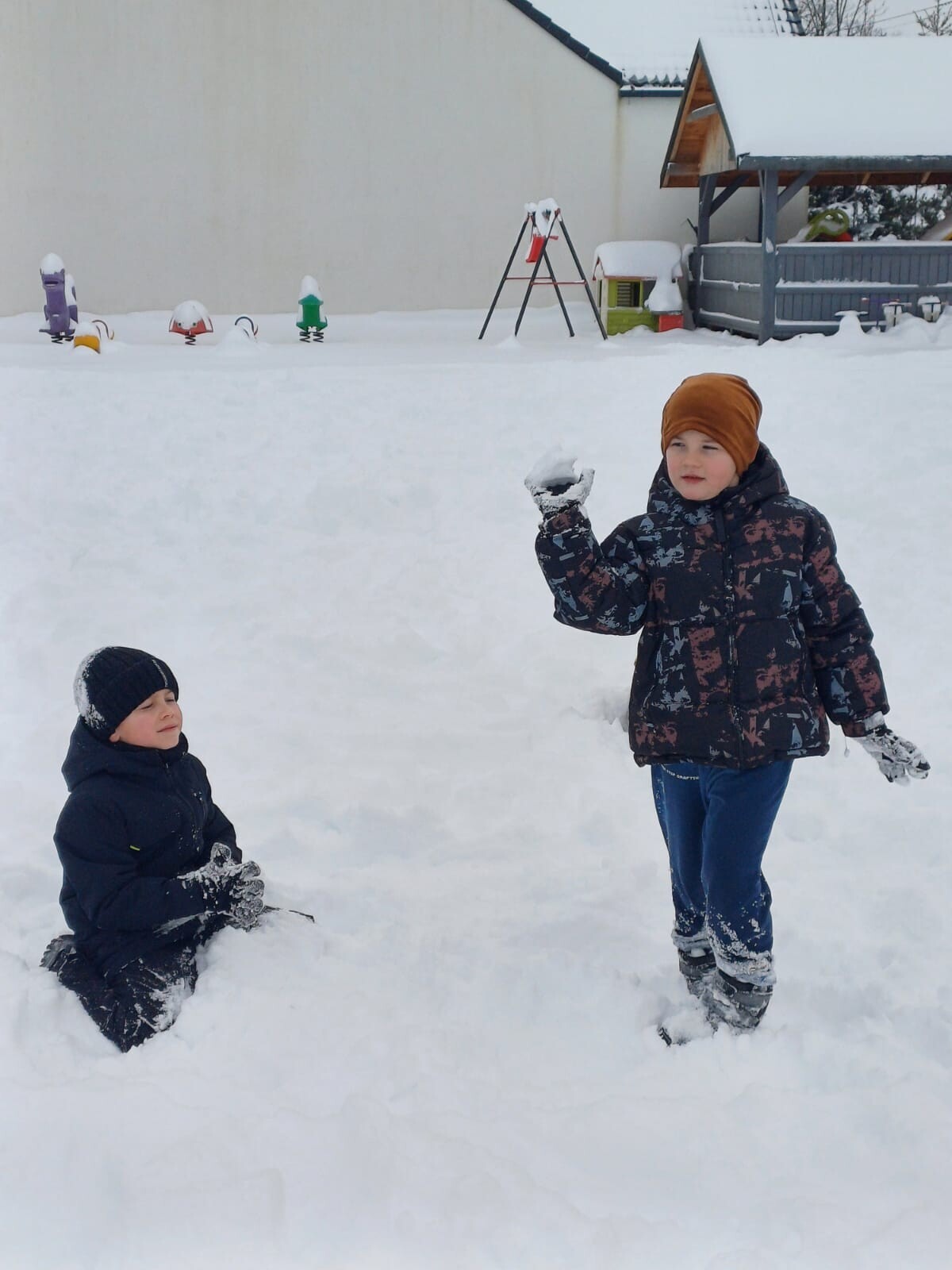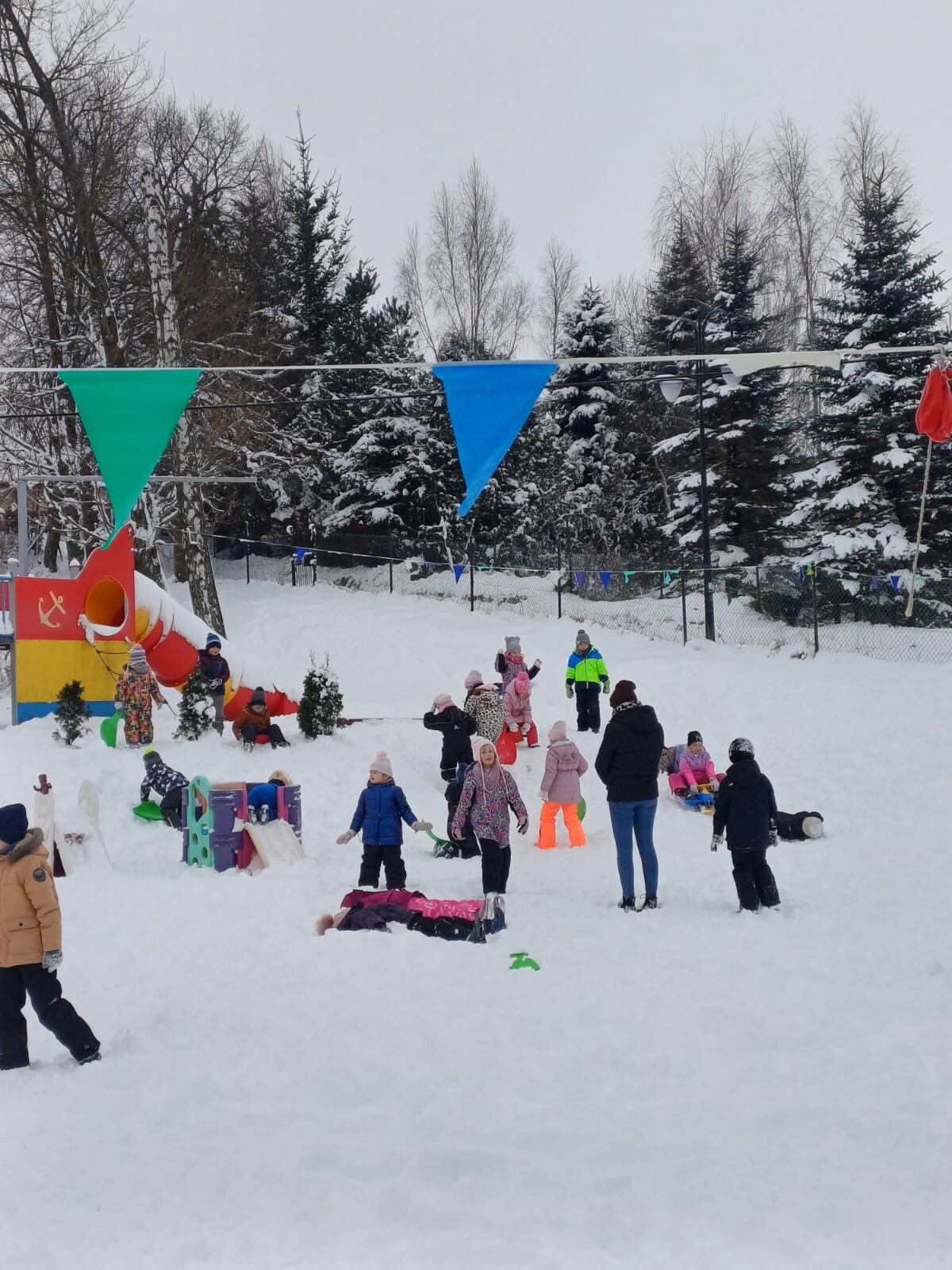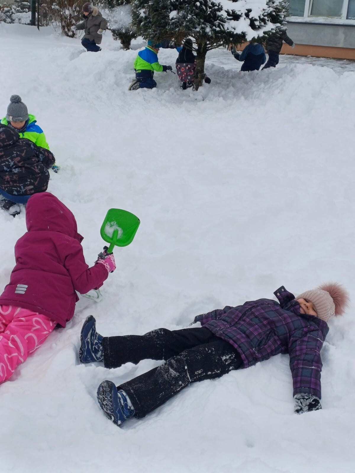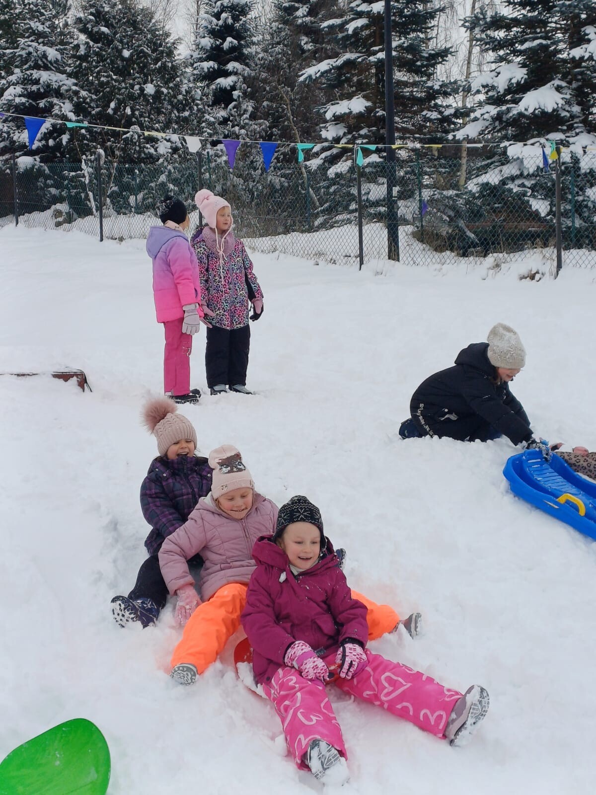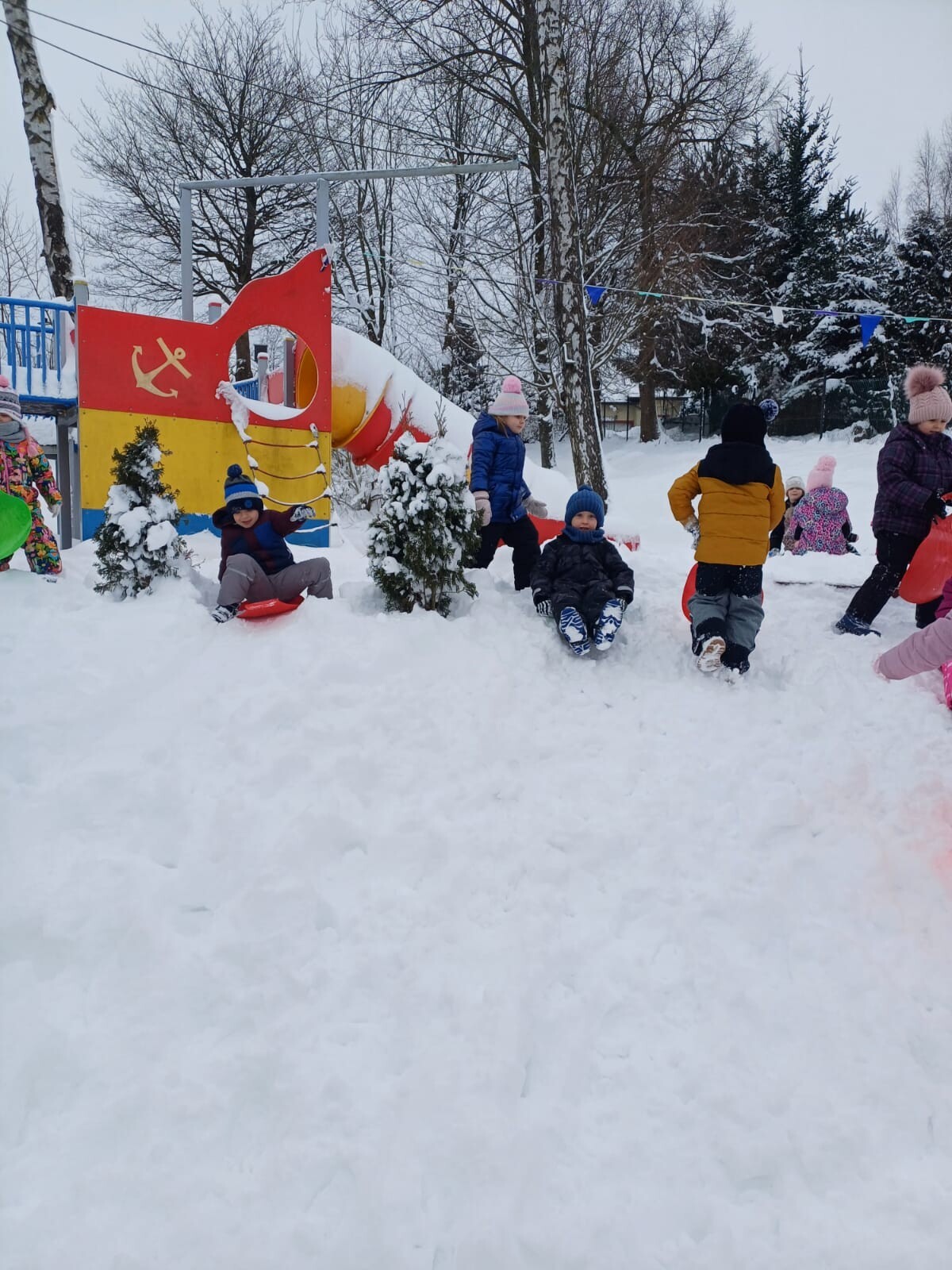 Dziś nasz przedszkolny ogród zamienił się w prawdziwą, zimową krainę radości. Dzieci z uśmiechami na twarzach korzystały z uroków zimy.