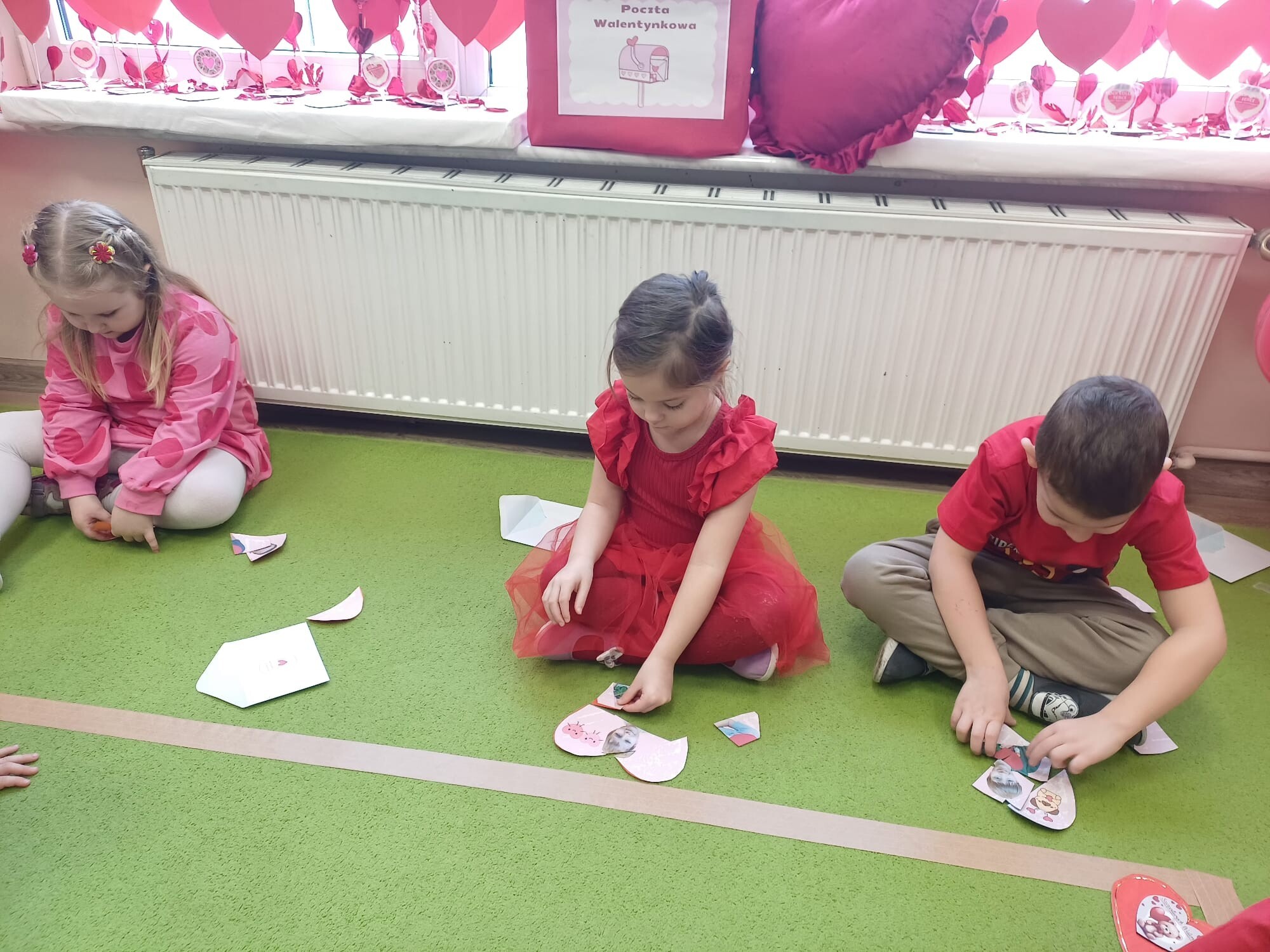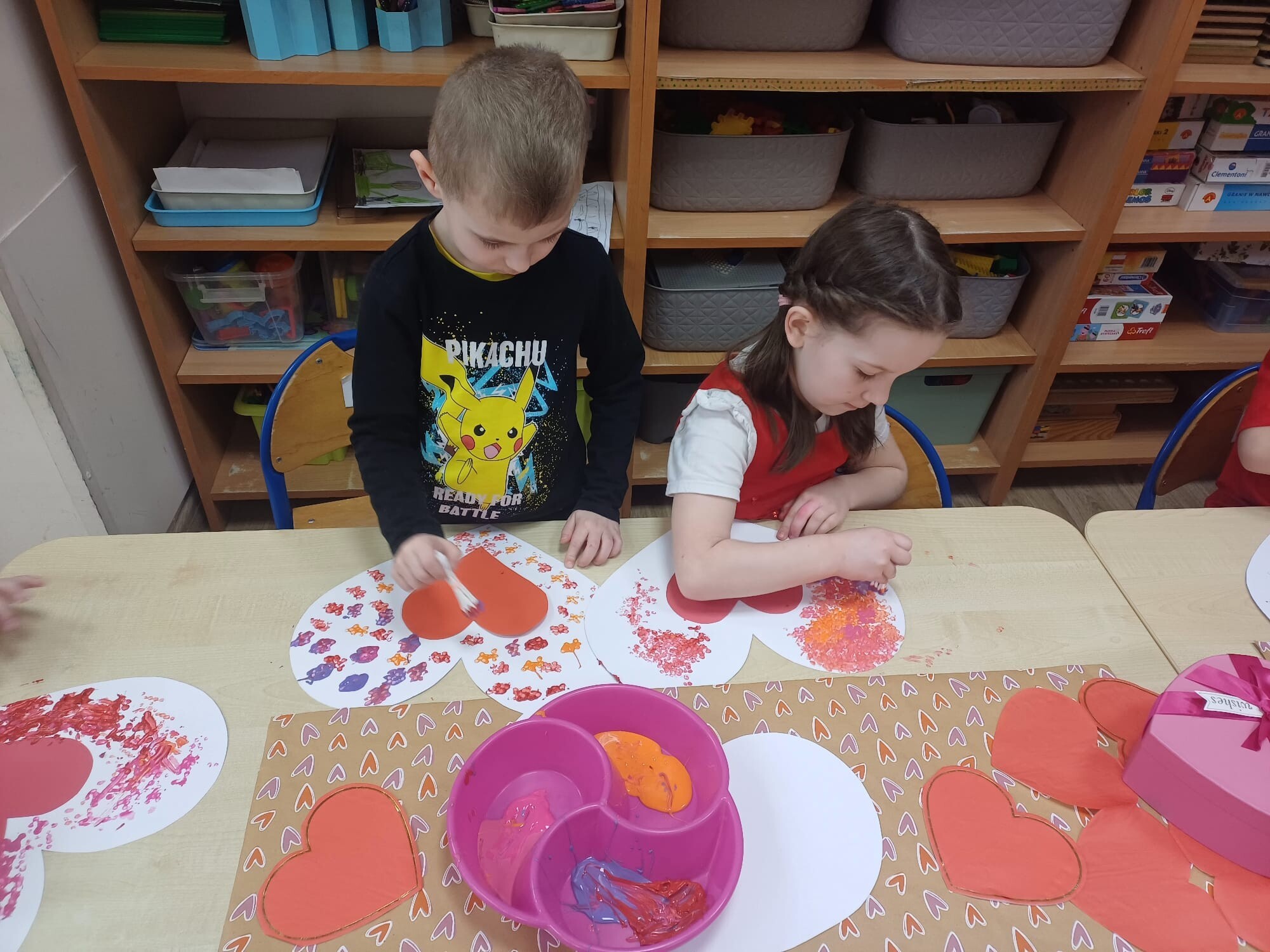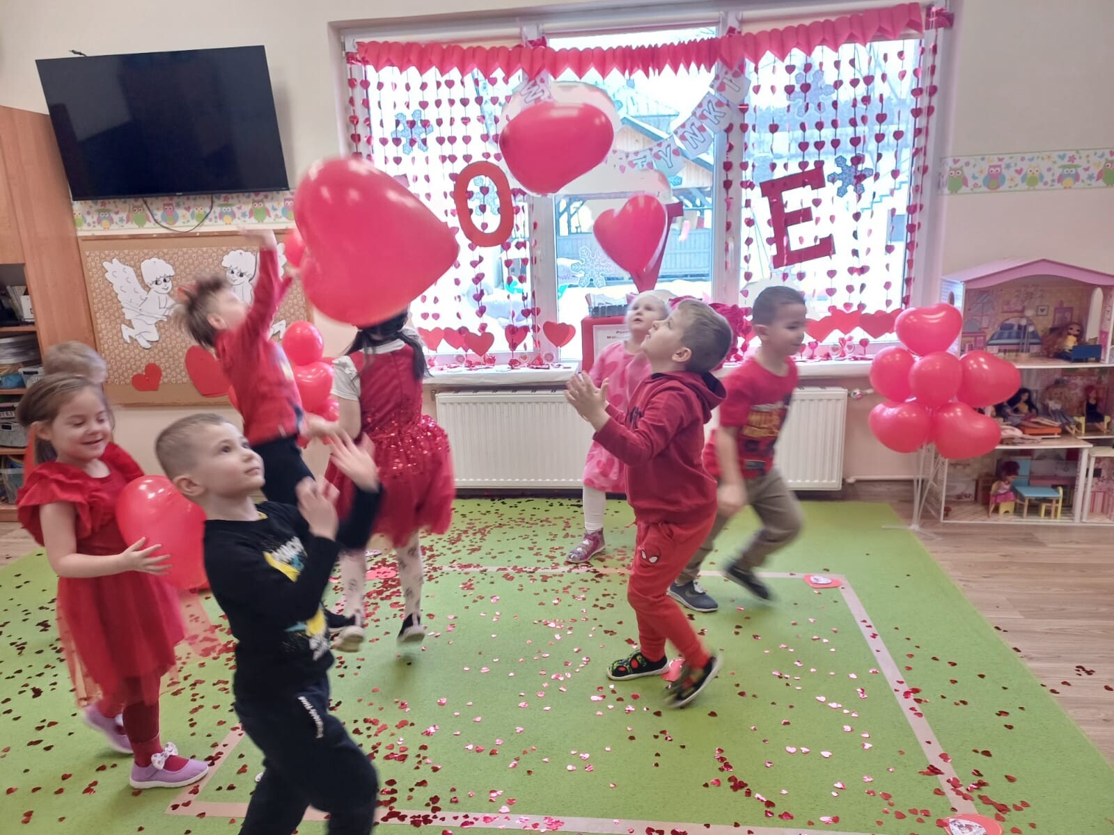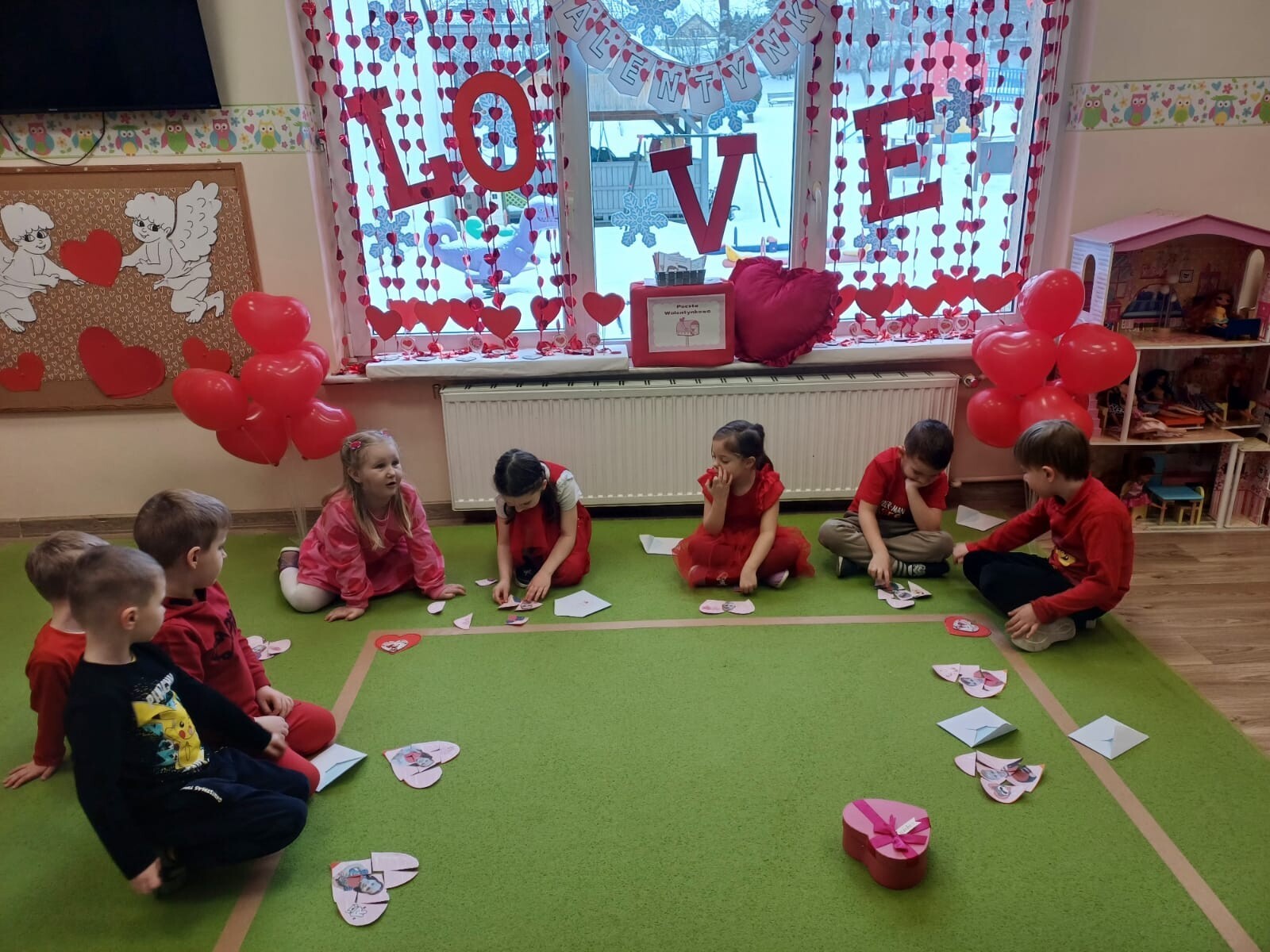 Dzisiaj obchodziliśmy Walentynki, co było dla dzieci świetną okazją do nauki i zabawy. Dzieci rozwiązywały zagadki matematyczne, co rozwijało ich logiczne myślenie. W trakcie zajęć plastycznych tworzyli swoje własne walentynki, a podczas lekcji muzycznych graliśmy na instrumentach, tańczyliśmy w parach, rozmawialiśmy także o emocjach i przyjaźni. Na koniec dnia dzieci mogły cieszyć się słodkim poczęstunkiem oraz bawić się w pocztę walentynkową, co dodało jeszcze więcej radości do tego wyjątkowego dnia.