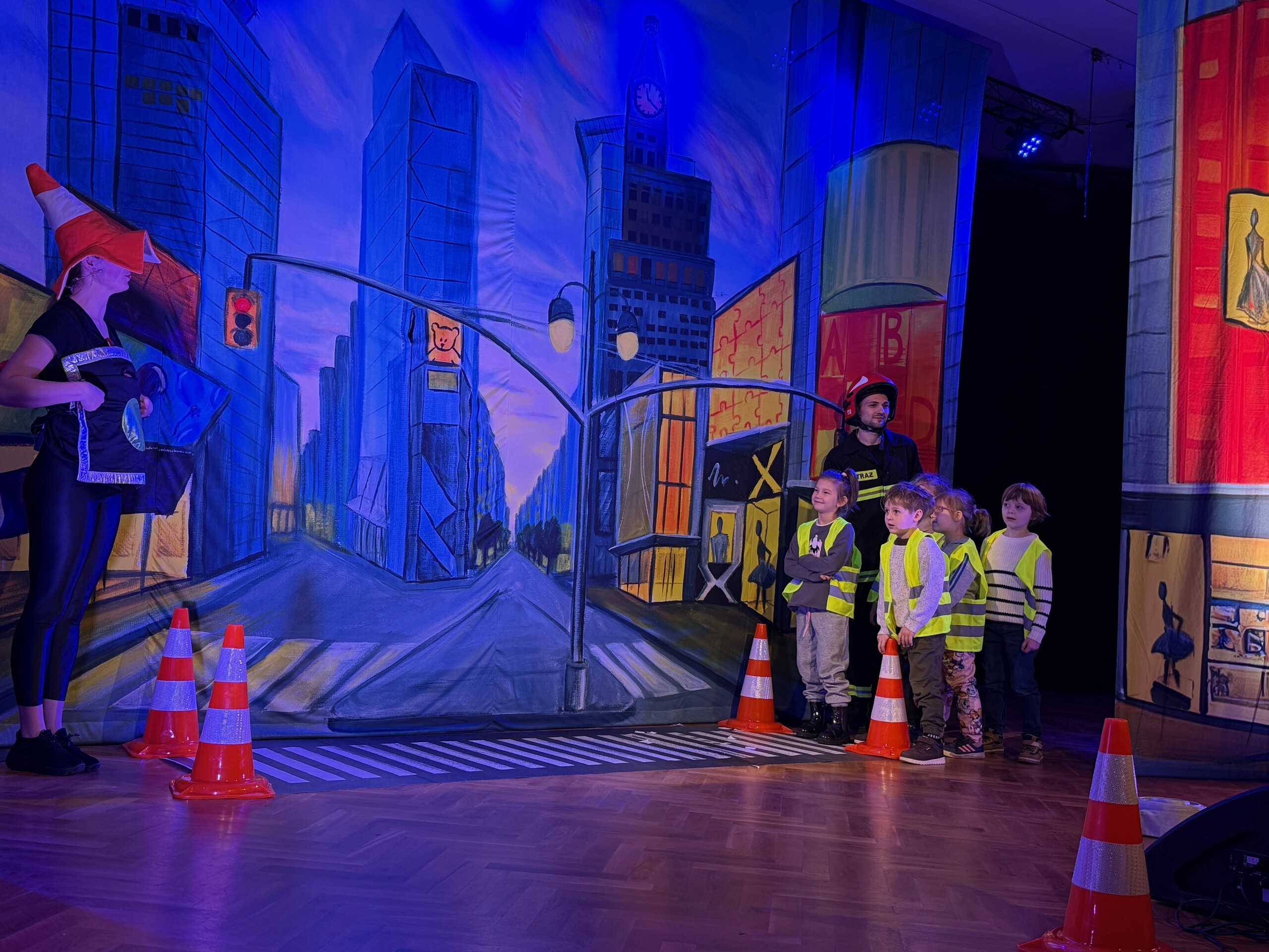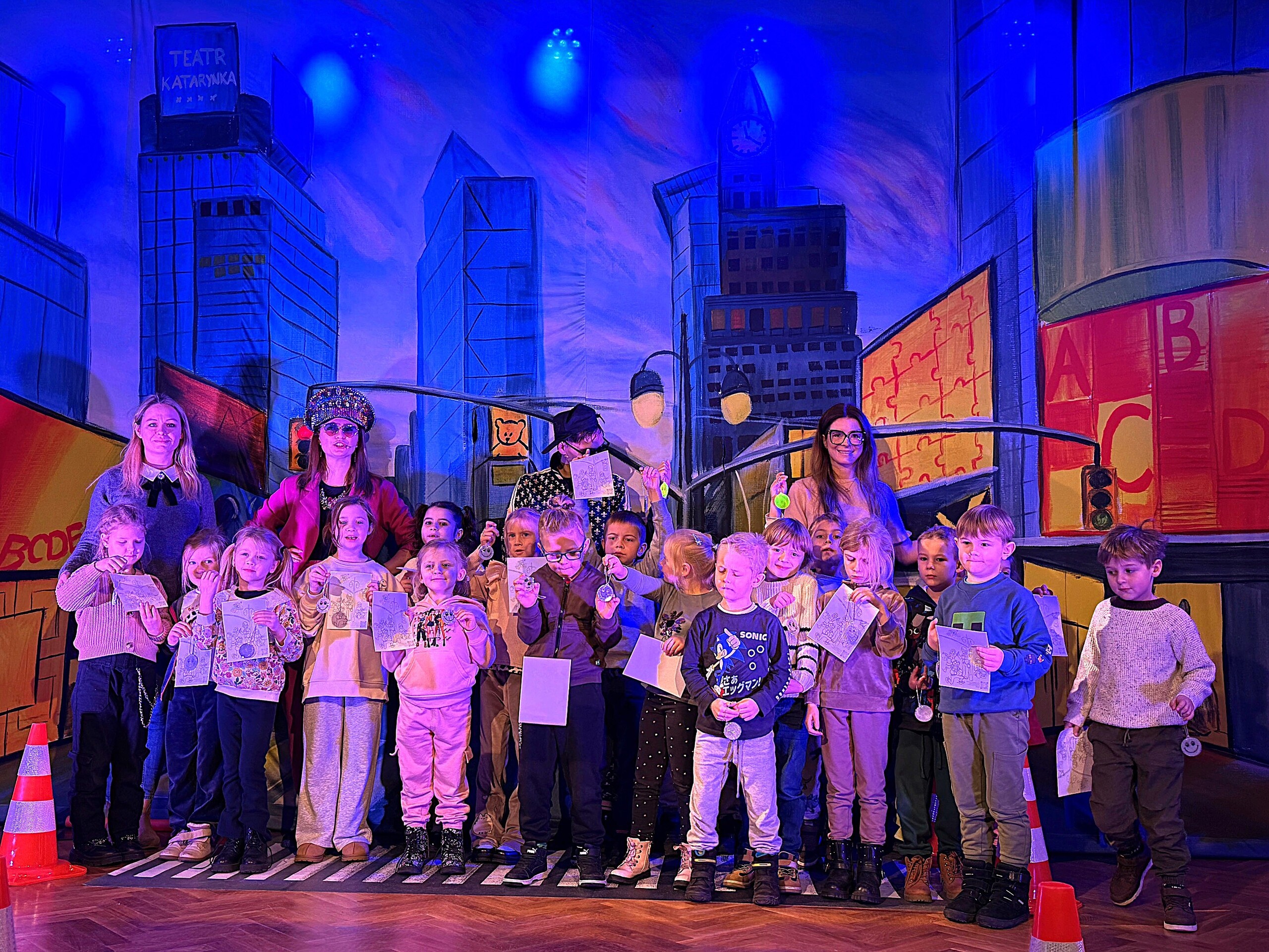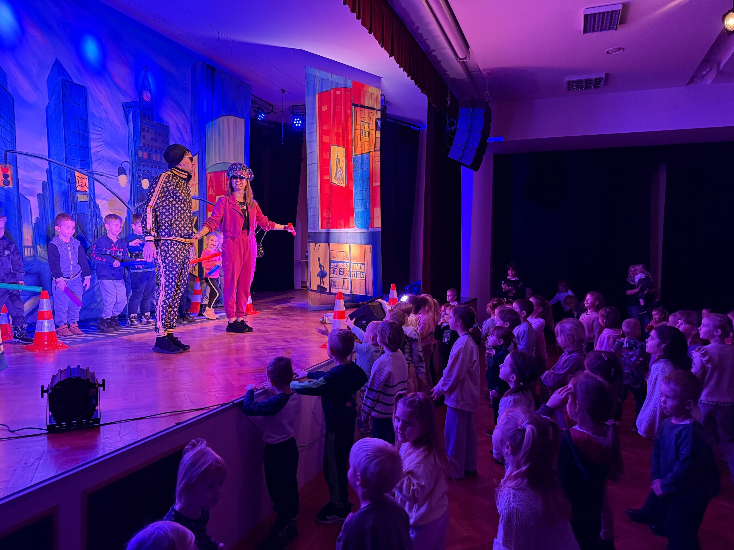 18 listopada nasze przedszkolaki wzięły udział w przedstawieniu pt. "Miejska dżungla" w ramach programu Drogowskaz, który odbył się w Gminnym Ośrodku Kultury i Sportu w Wicku. W świat bezpiecznych zachowań drogowych wprowadzili przedszkolaki aktorzy z teatru Katarynka.