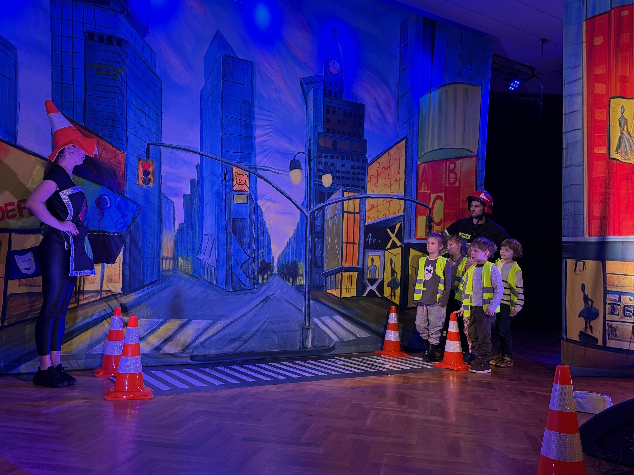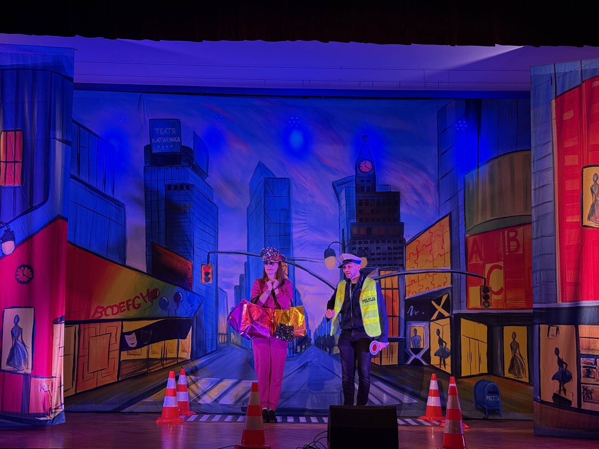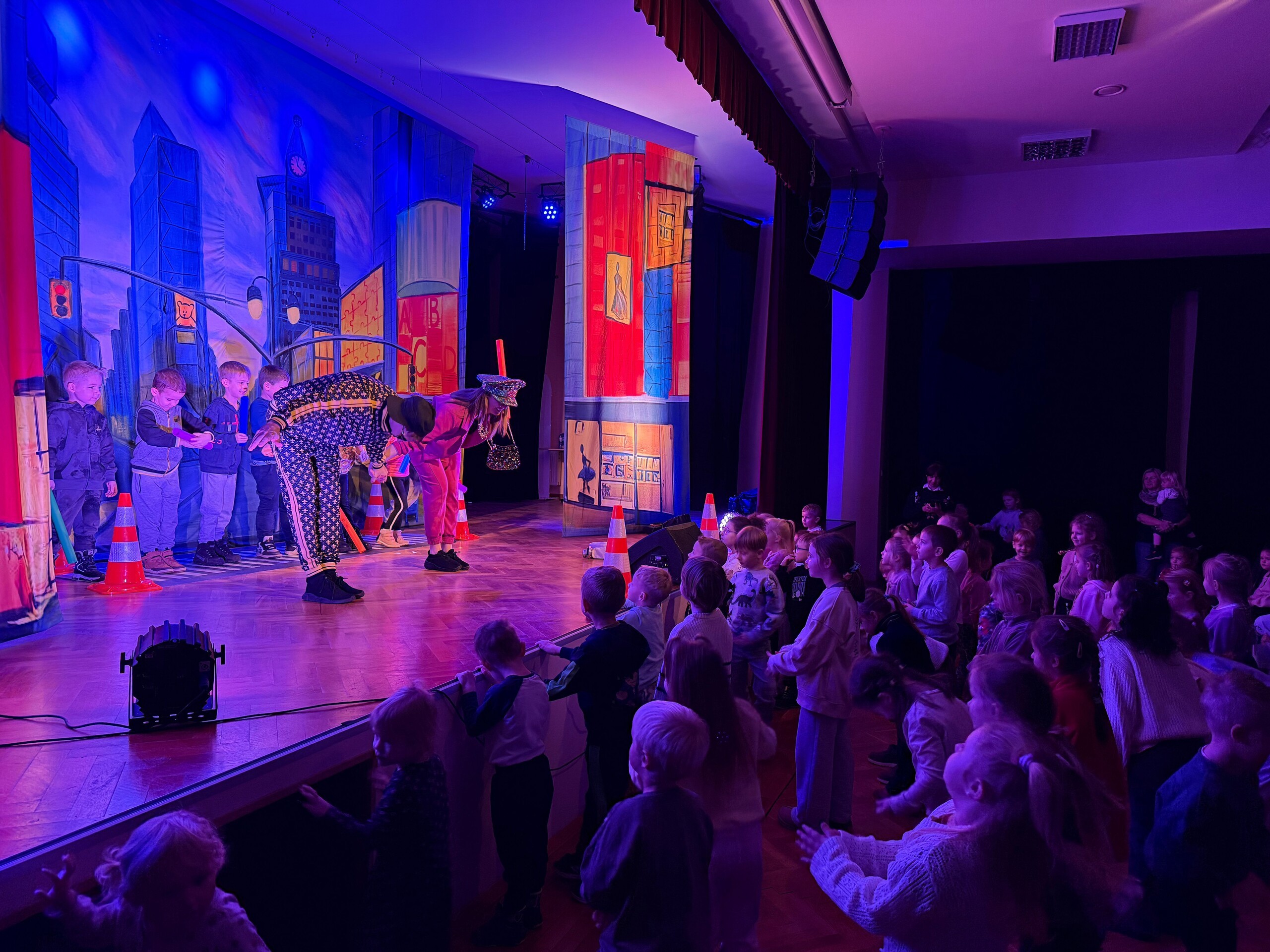 18 listopada nasze przedszkolaki wzięły udział w przedstawieniu pt. "Miejska dżungla" w ramach programu Drogowskaz, który odbył się w Gminnym Ośrodku Kultury i Sportu w Wicku. W świat bezpiecznych zachowań drogowych wprowadzili przedszkolaki aktorzy z teatru Katarynka.