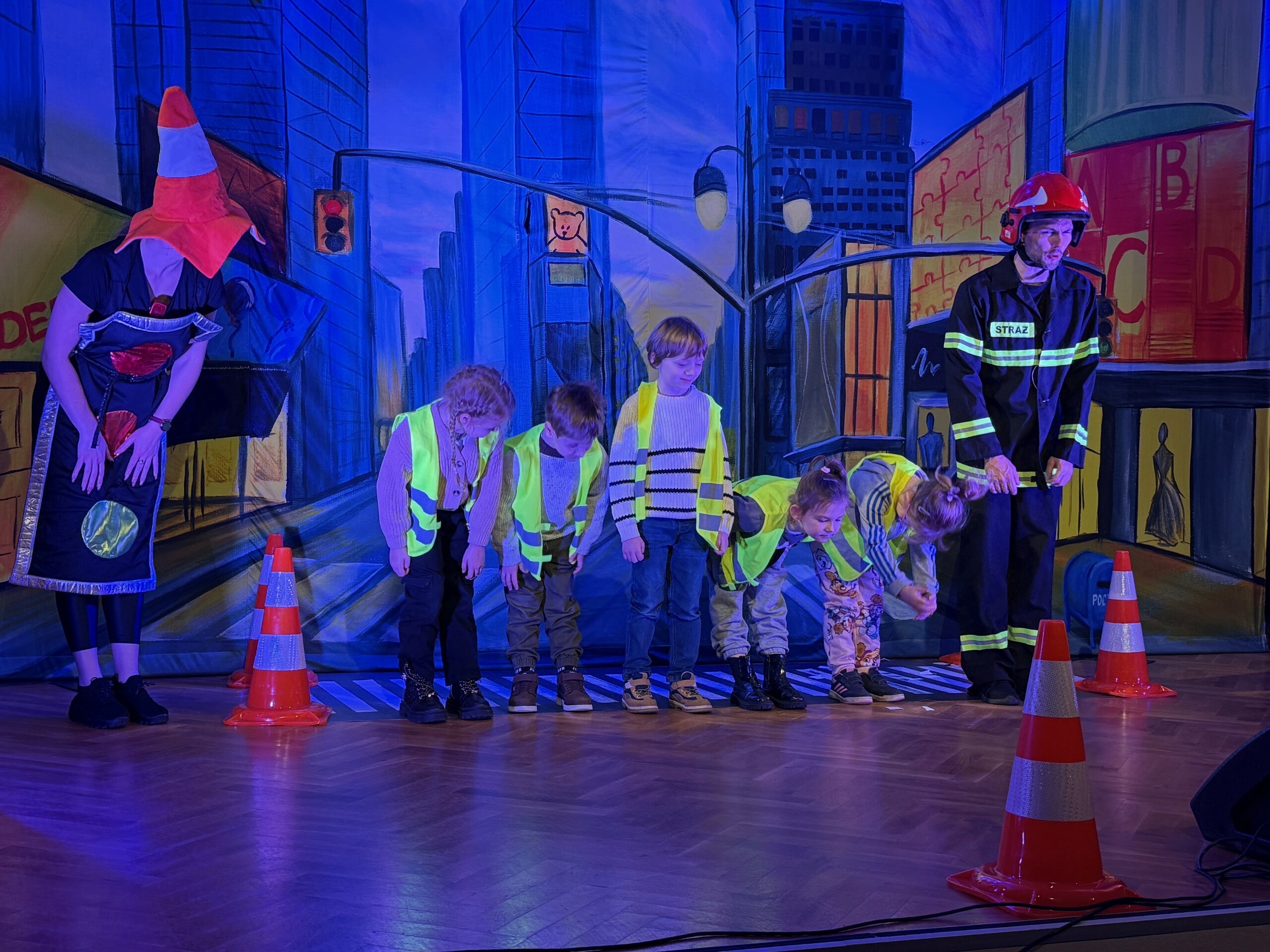 Czynny udział dzieci w przedstawieniu pozwolił na powtórzenie numerów alarmowych, odpowiednich zachowań na drodze, a także w czasie ewentualnego pożaru.