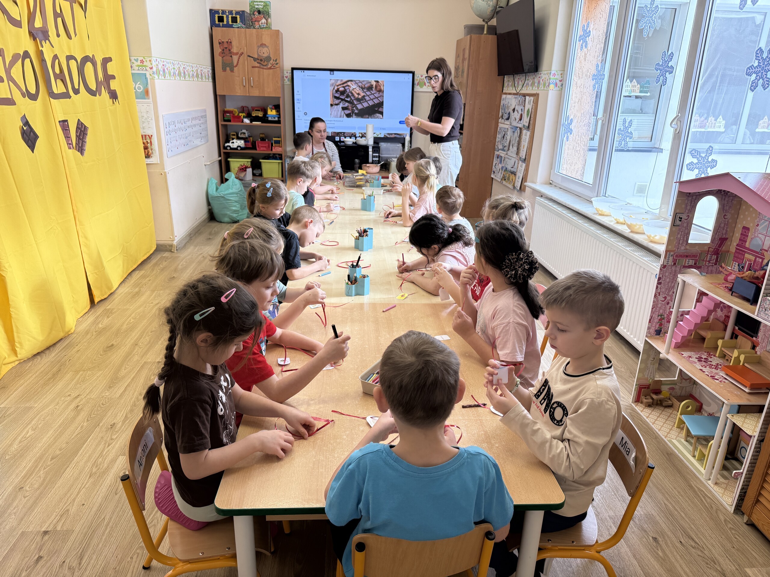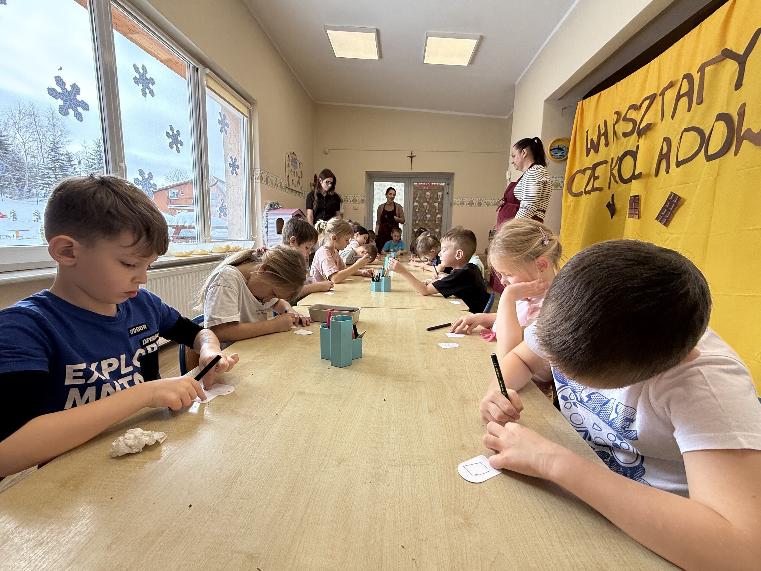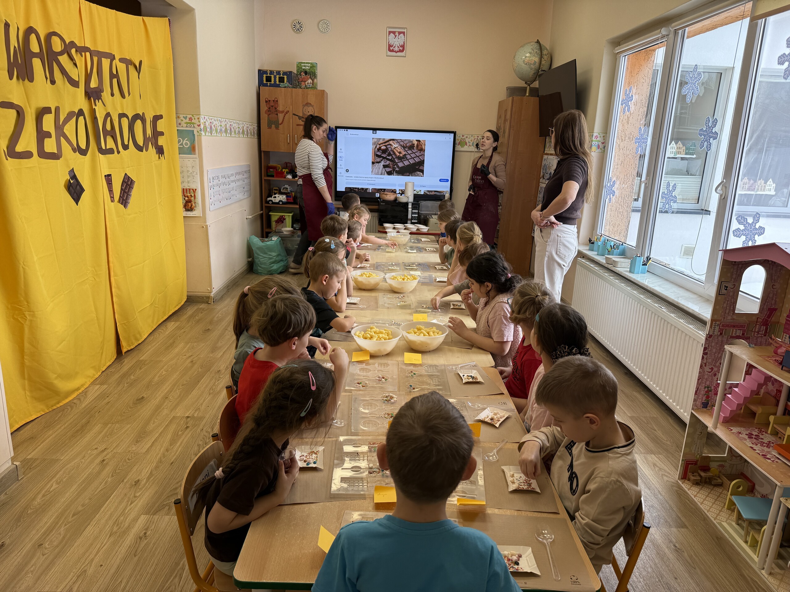 Dziś w naszym przedszkolu było wyjątkowo słodko! Podczas warsztatów czekoladowych dzieci poznały tajniki powstawania czekolady – dowiedziały się, skąd bierze się kakao i jakie etapy przechodzi, zanim trafi do naszych rąk w postaci pysznego przysmaku.