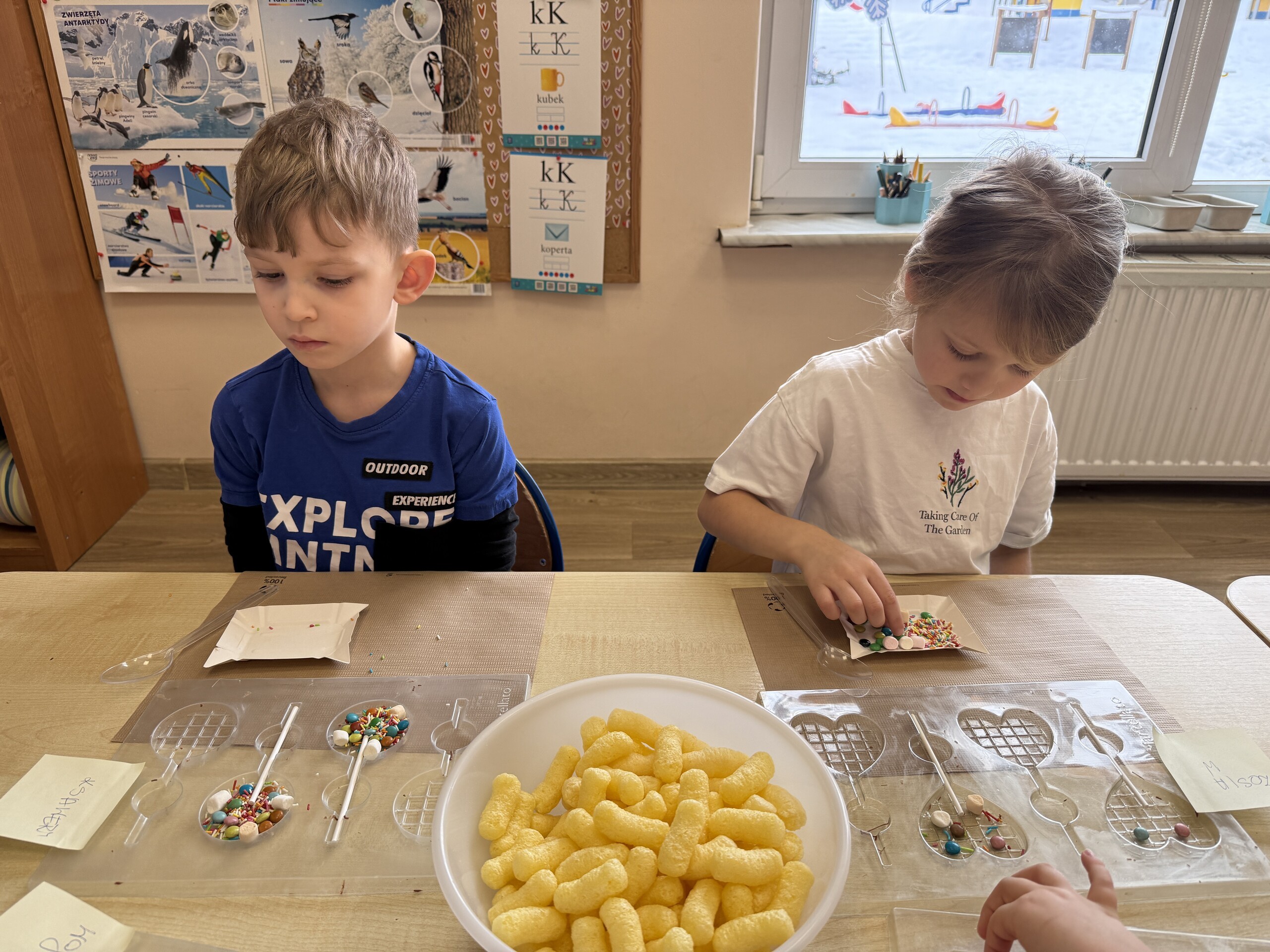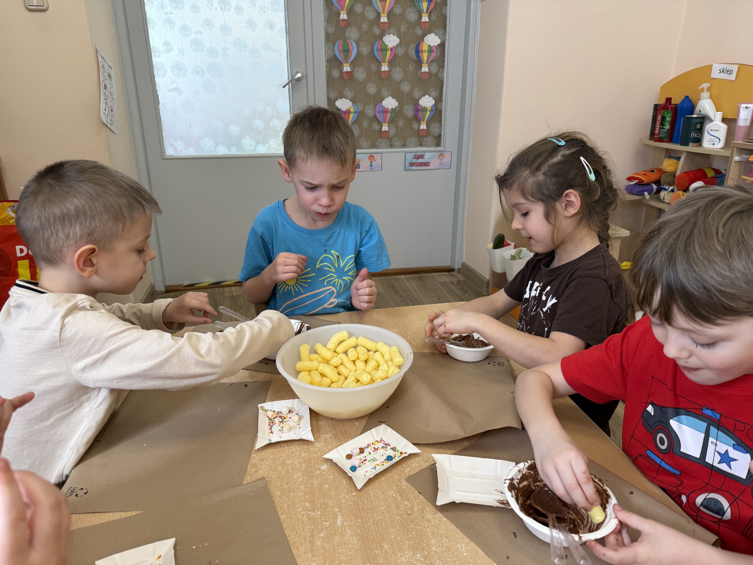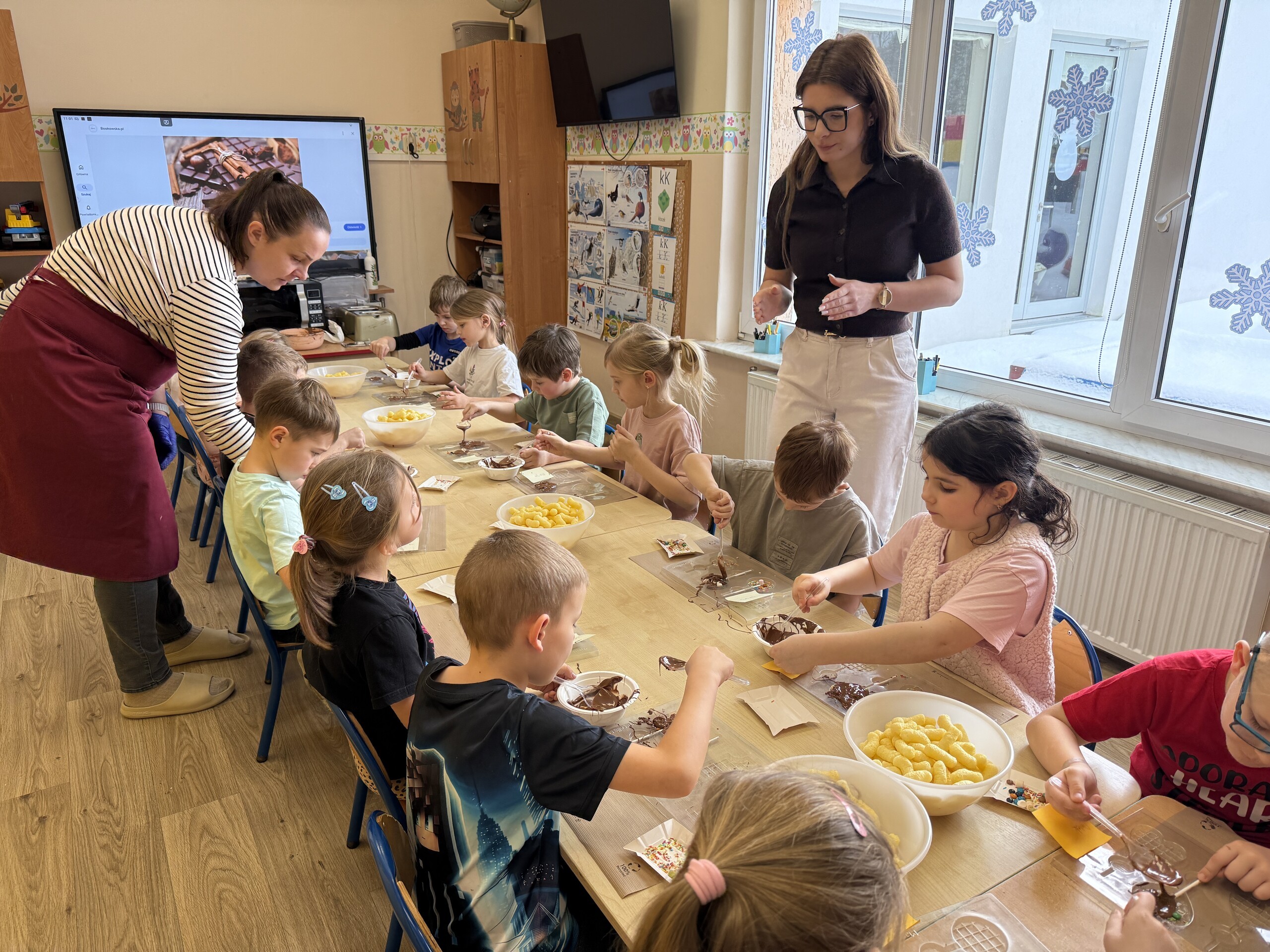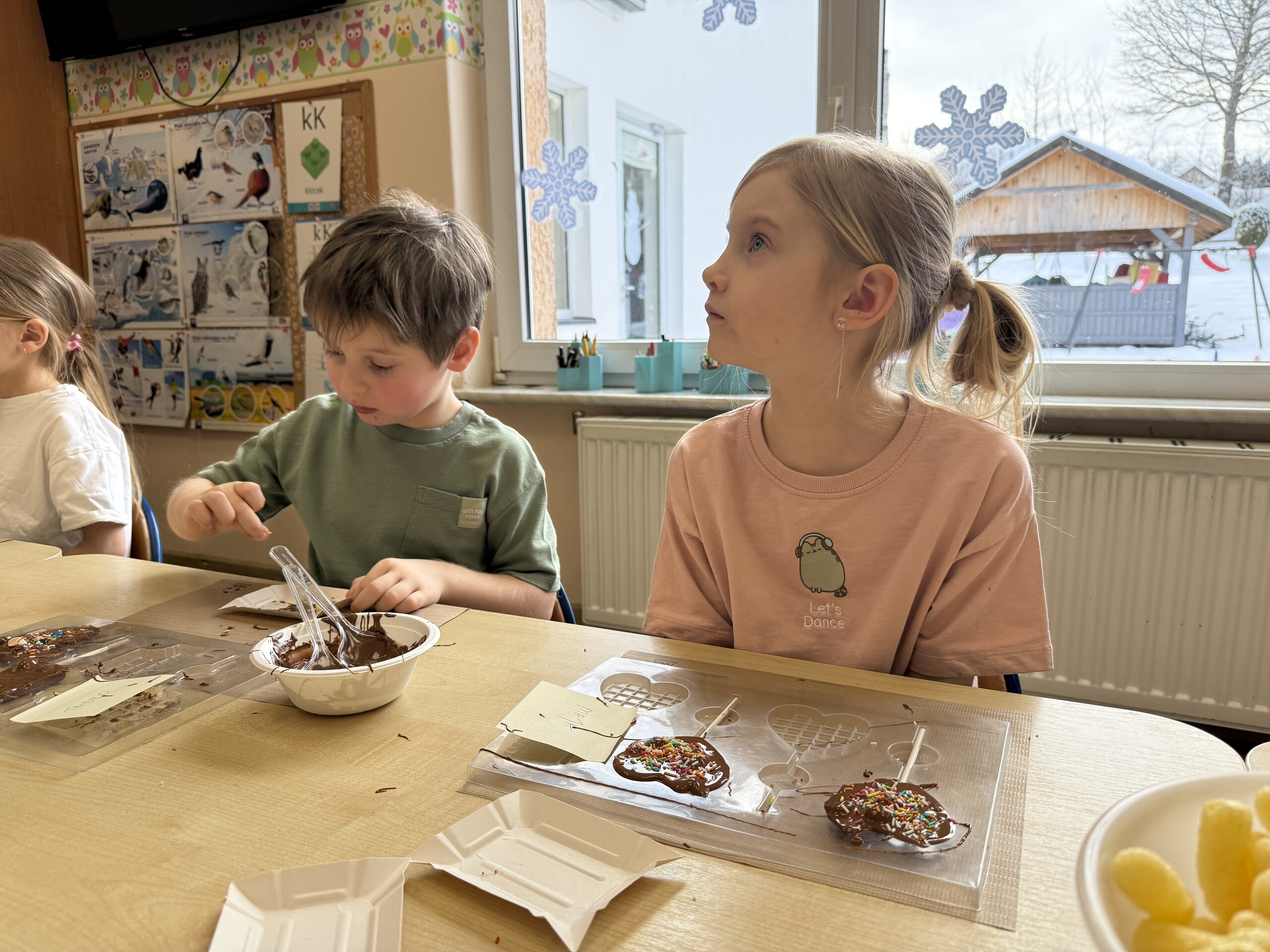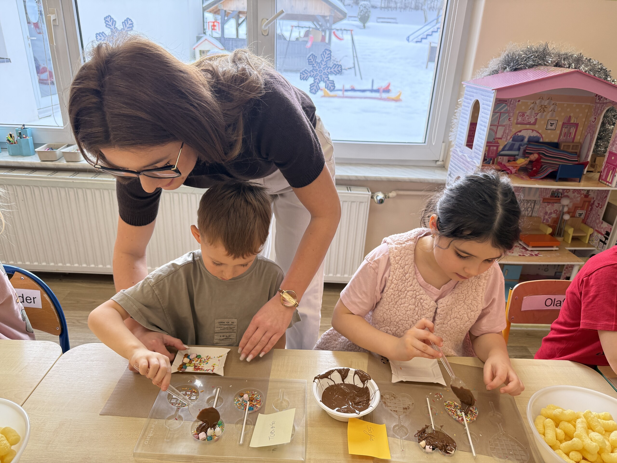 Przedszkolaki własnoręcznie wykonały czekoladowe lizaki, ozdabiały je kolorowymi dodatkami oraz przygotowały piękne, kreatywne etykietki. Każdy mógł poczuć się jak prawdziwy mistrz cukiernictwa!