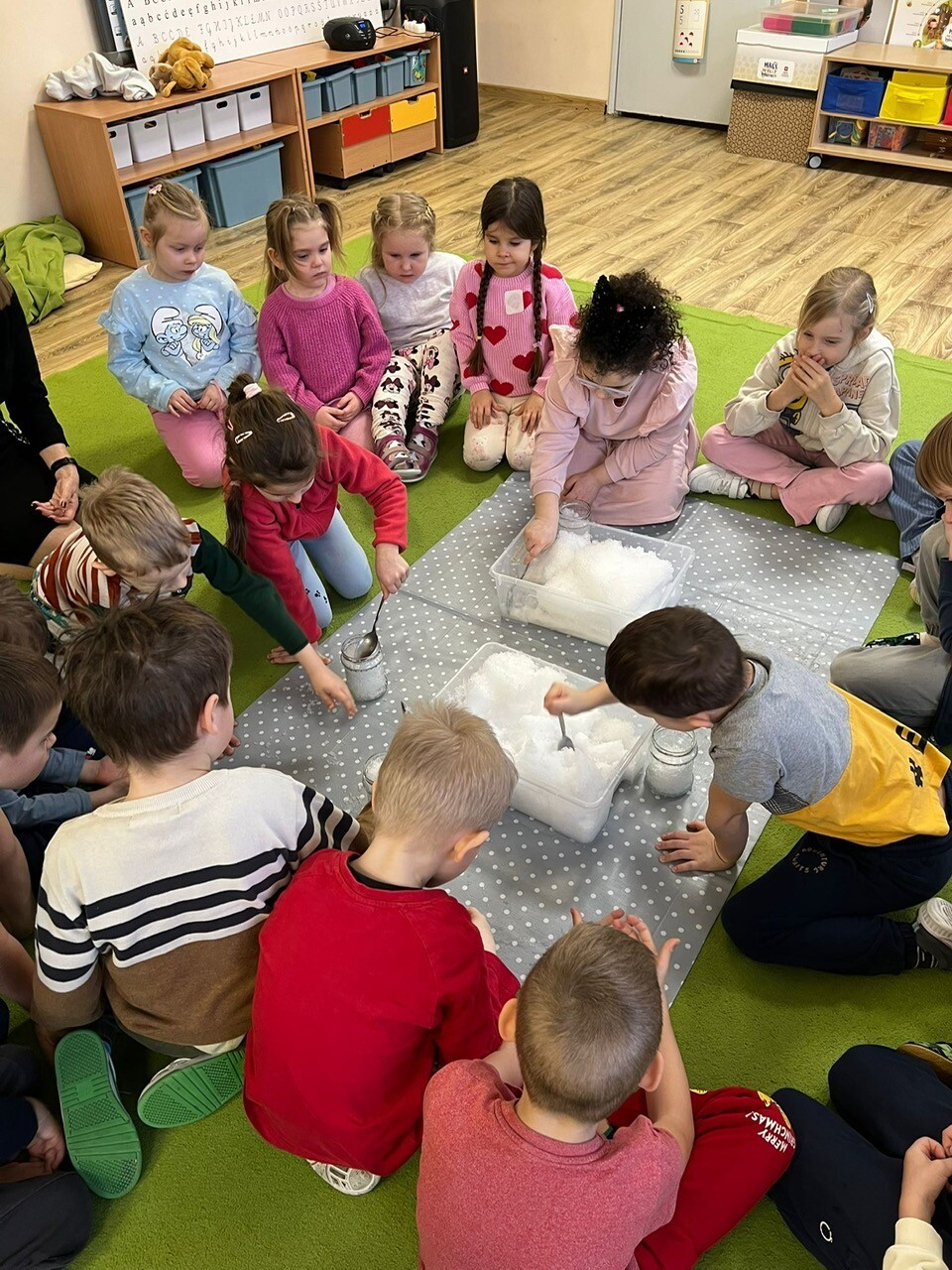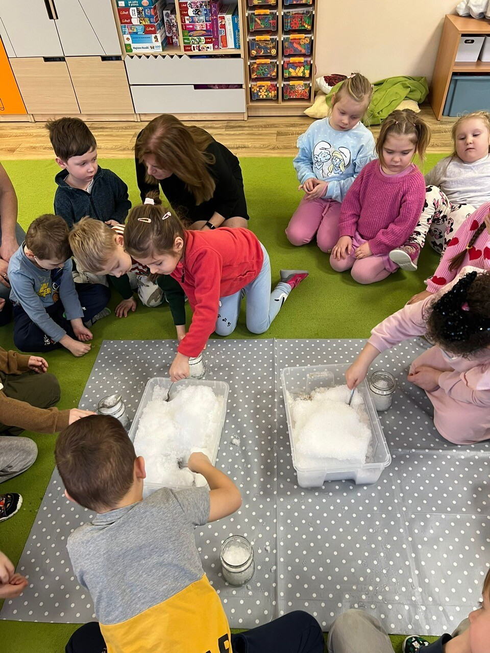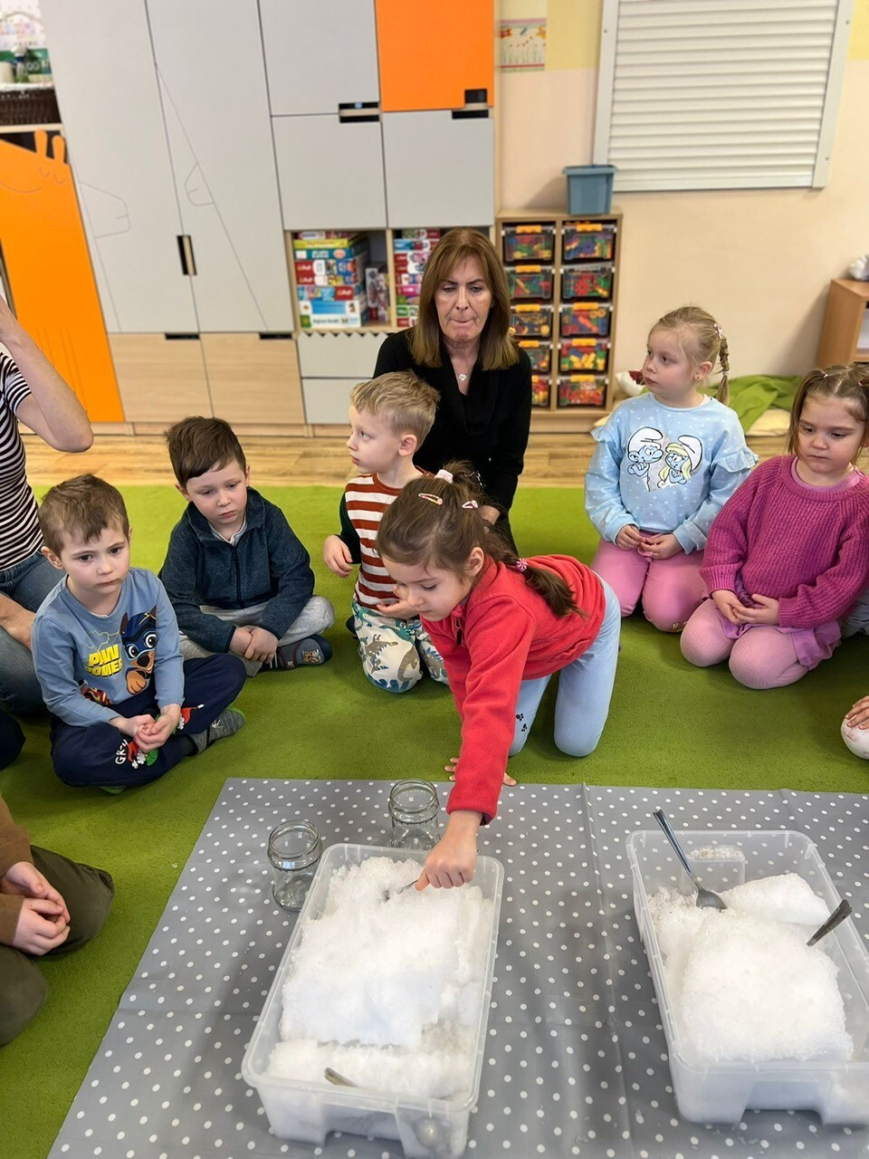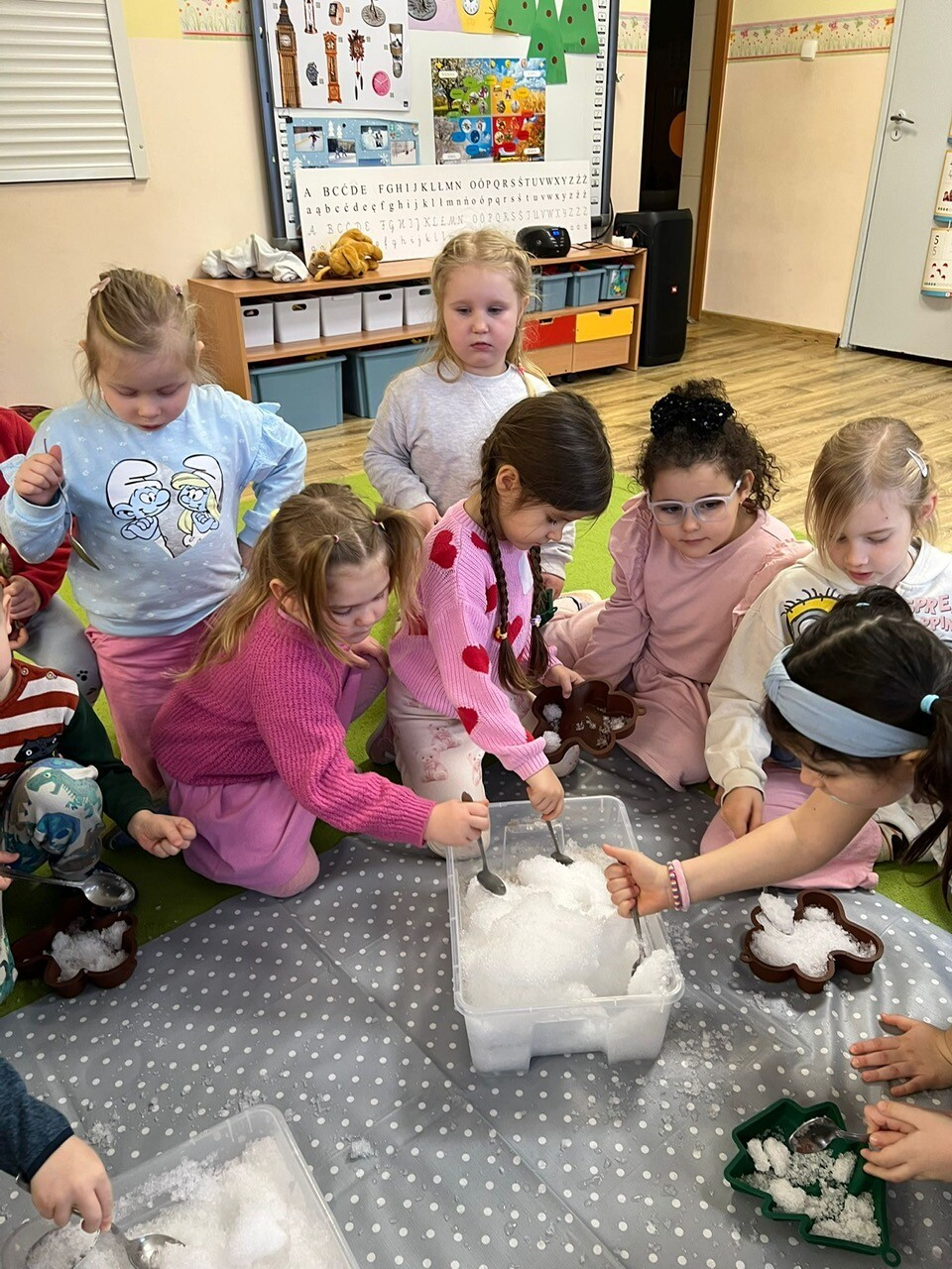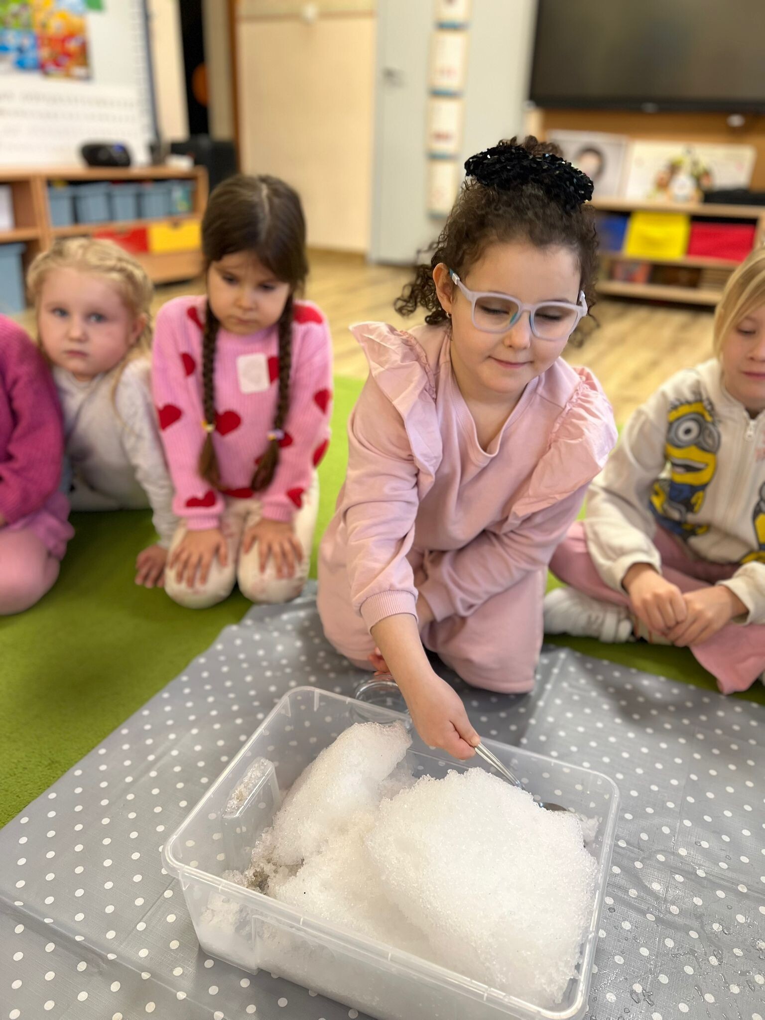 Dziś nasze przedszkole zamieniło się w małe laboratorium, a dzieci w prawdziwych badaczy świata. Z ogromnym zaangażowaniem i ciekawością odkrywaliśmy tajemnice śniegu.