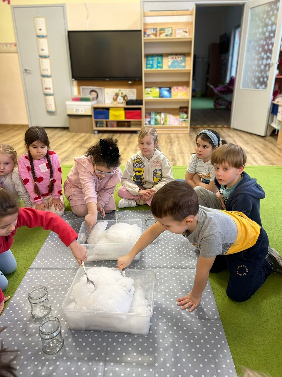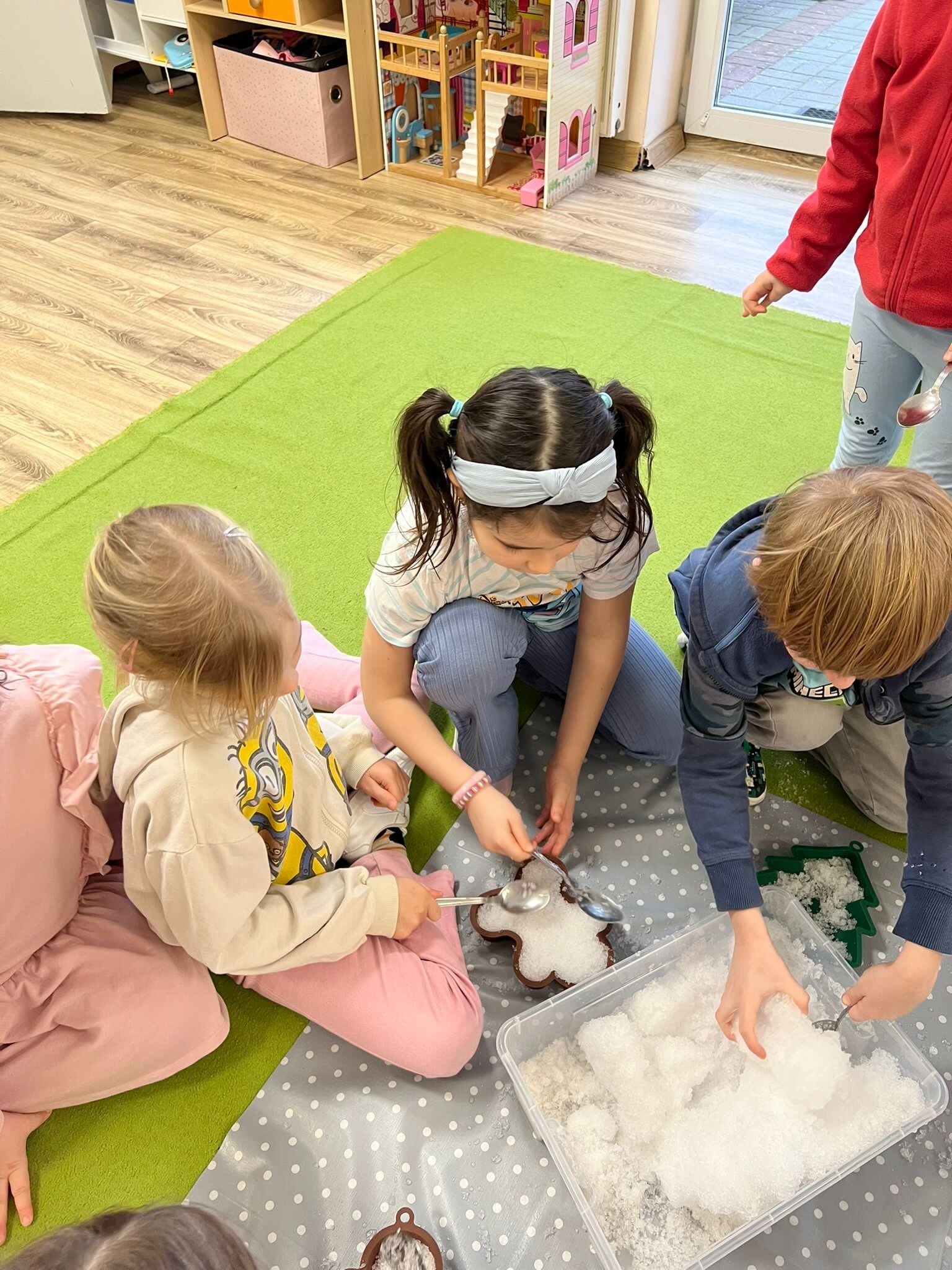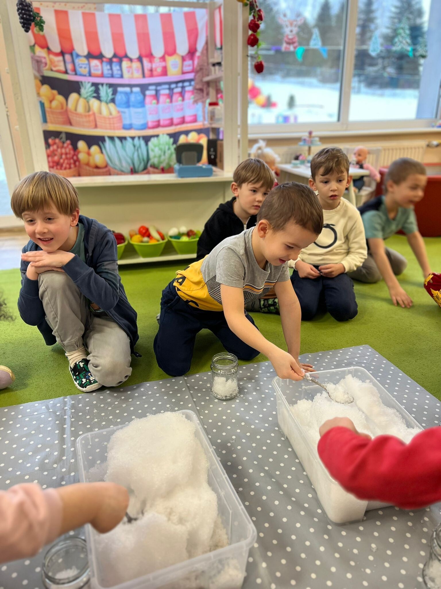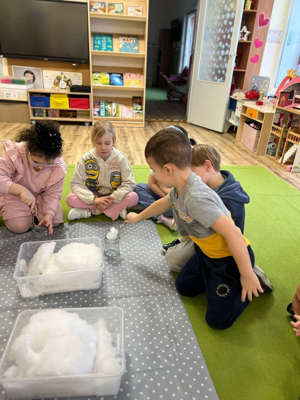 Dziś nasze przedszkole zamieniło się w małe laboratorium, a dzieci w prawdziwych badaczy świata. Z ogromnym zaangażowaniem i ciekawością odkrywaliśmy tajemnice śniegu.