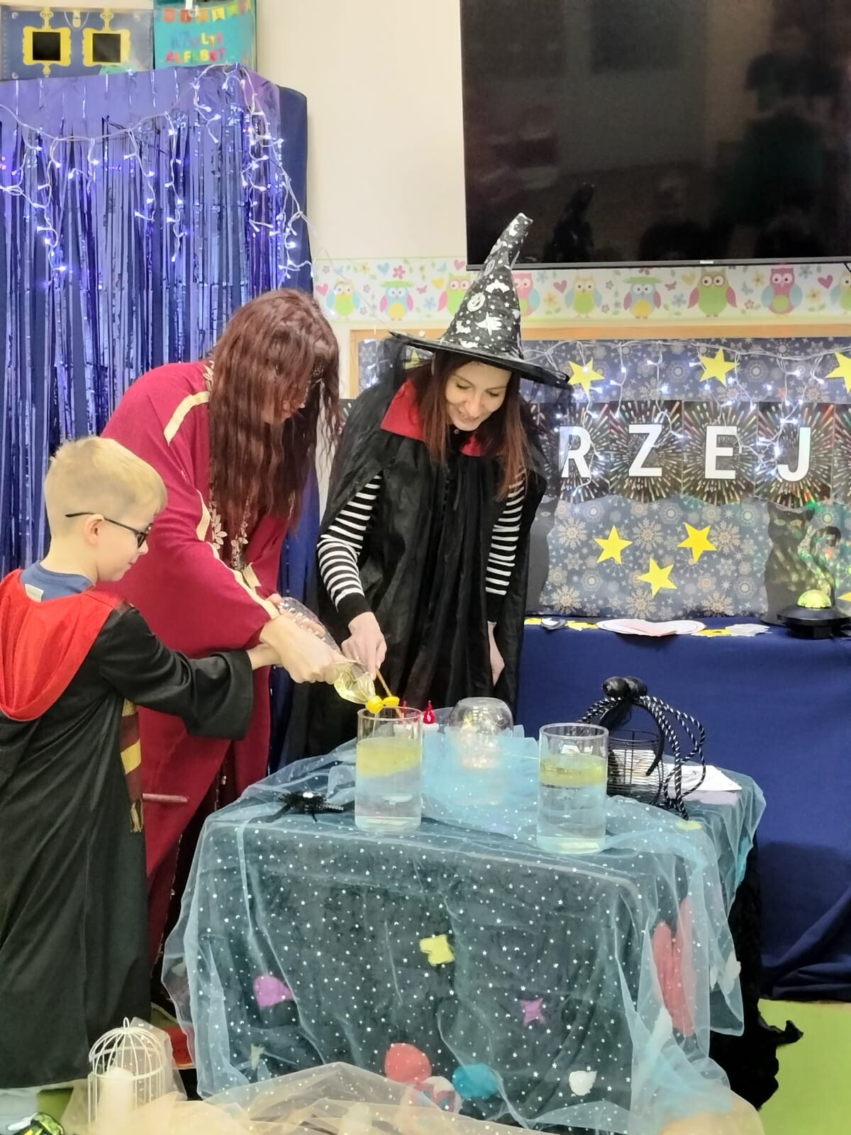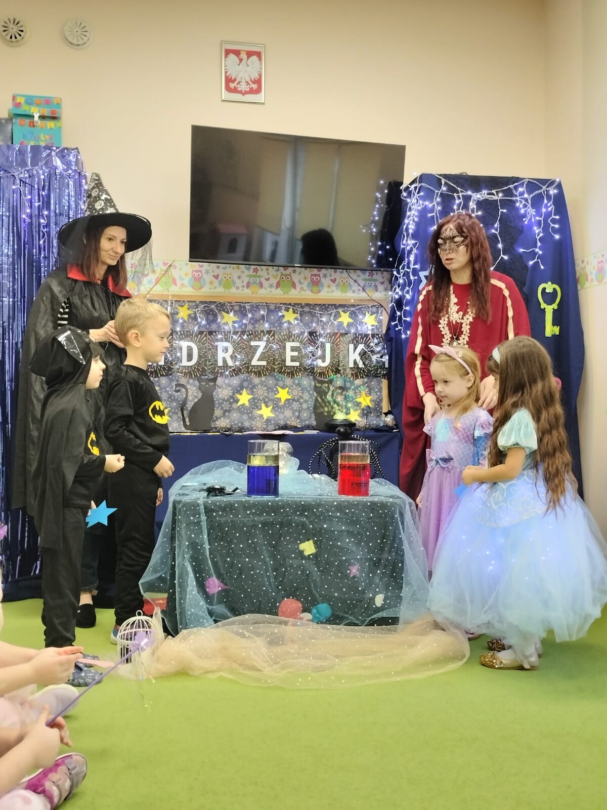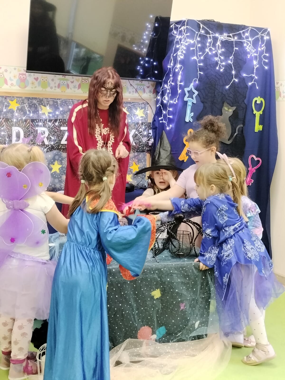 Pojawiły się niezwykli gościnie – dobra czarownica i czarodziejka, które zabrały dzieci do nastrojowej, andrzejkowej krainy magii.