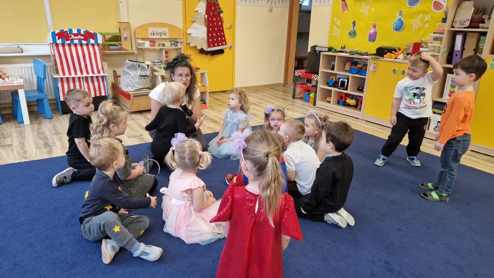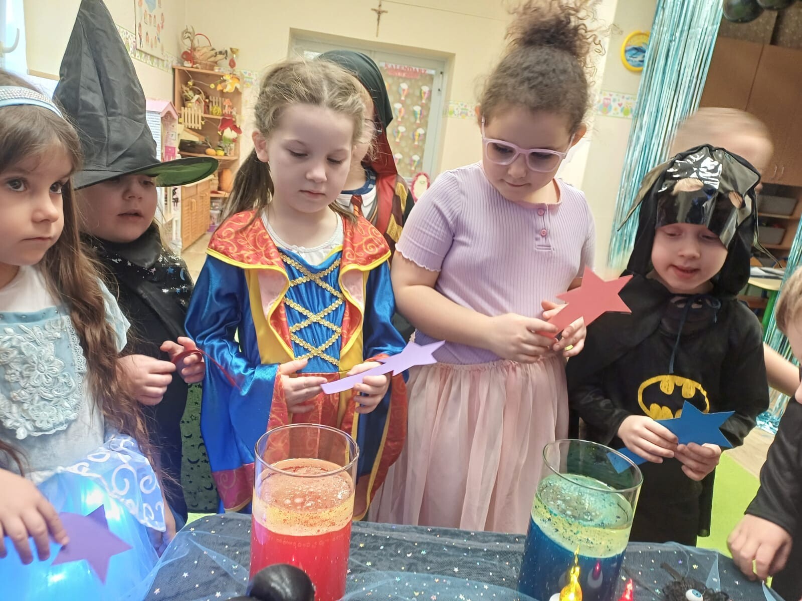 W naszym przedszkolu odbyły się radosne i pełne magii Andrzejki. Dzieci przyszły ubrane w piękne, kolorowe stroje wróżek, czarodziejów i bajkowych postaci, co od razu wprowadziło wszystkich w wyjątkowy, zaczarowany nastrój.