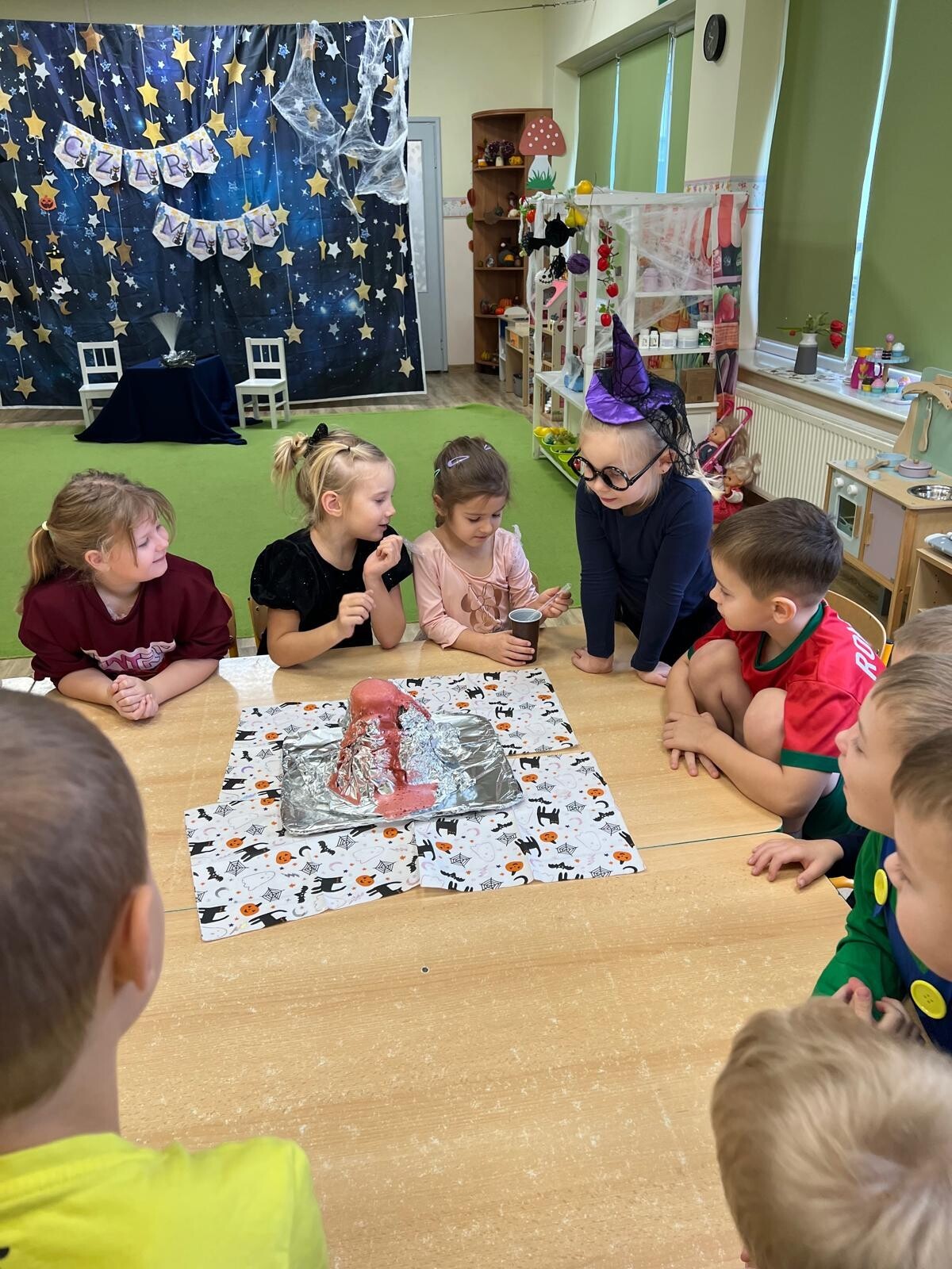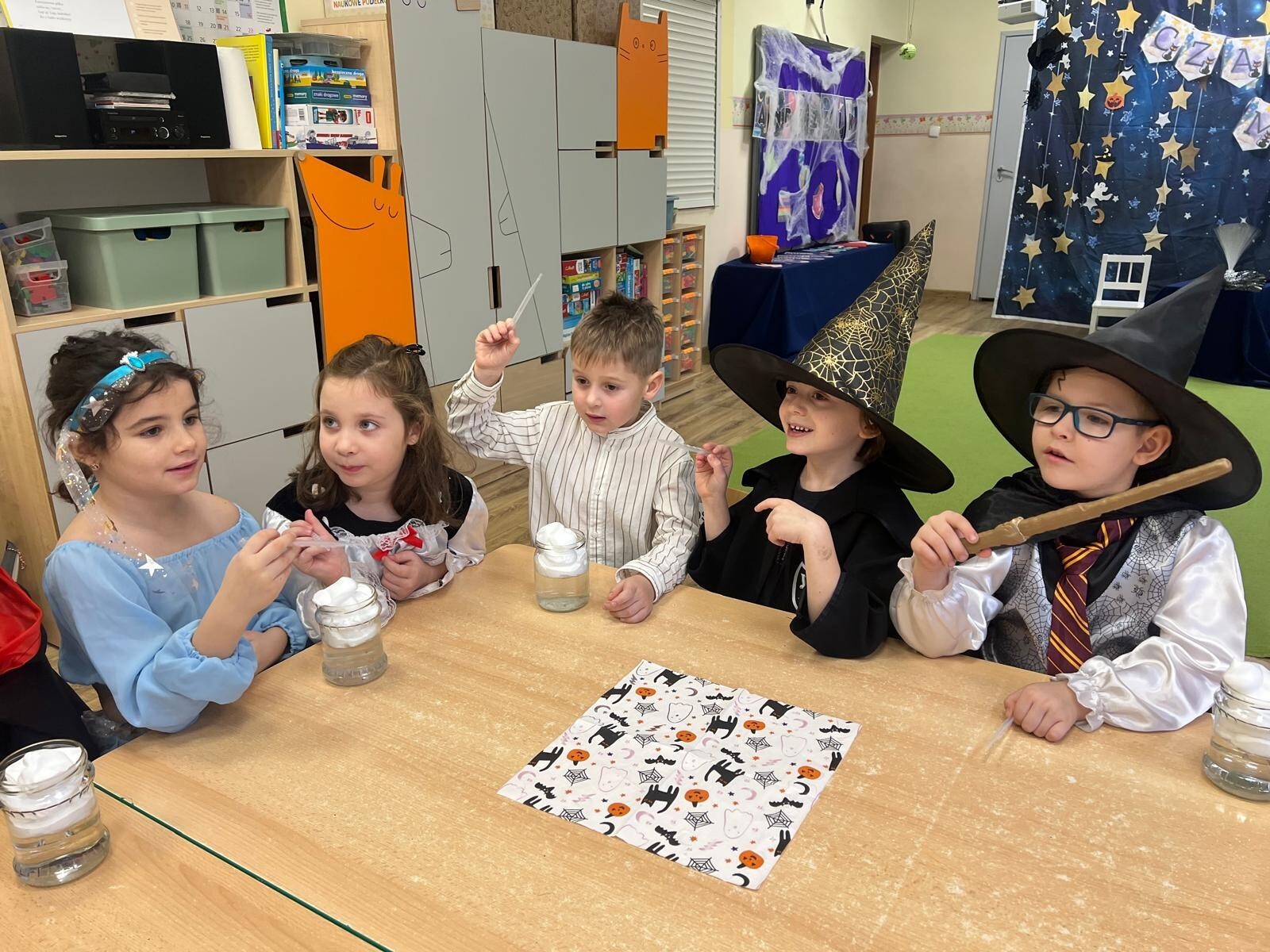 Po pełnych wrażeń zabawach dzieci zasiadły do wspólnego poczęstunku, przygotowanego specjalnie na tę okazję. Była to doskonała okazja do rozmów, śmiechu i dzielenia się wrażeniami z wróżb.