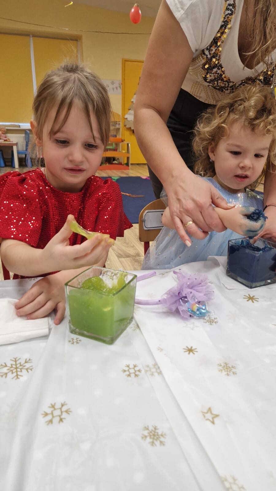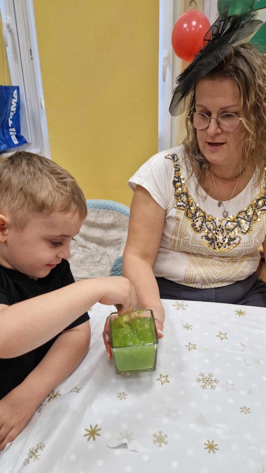 Podczas wspólnej zabawy nie zabrakło tradycyjnych andrzejkowych wróżb – lania wosku, losowania karteczek z przyszłością, magicznego koła życzeń czy układania bucików. Każda z atrakcji wywoływała mnóstwo emocji, uśmiechu i radosnych okrzyków.